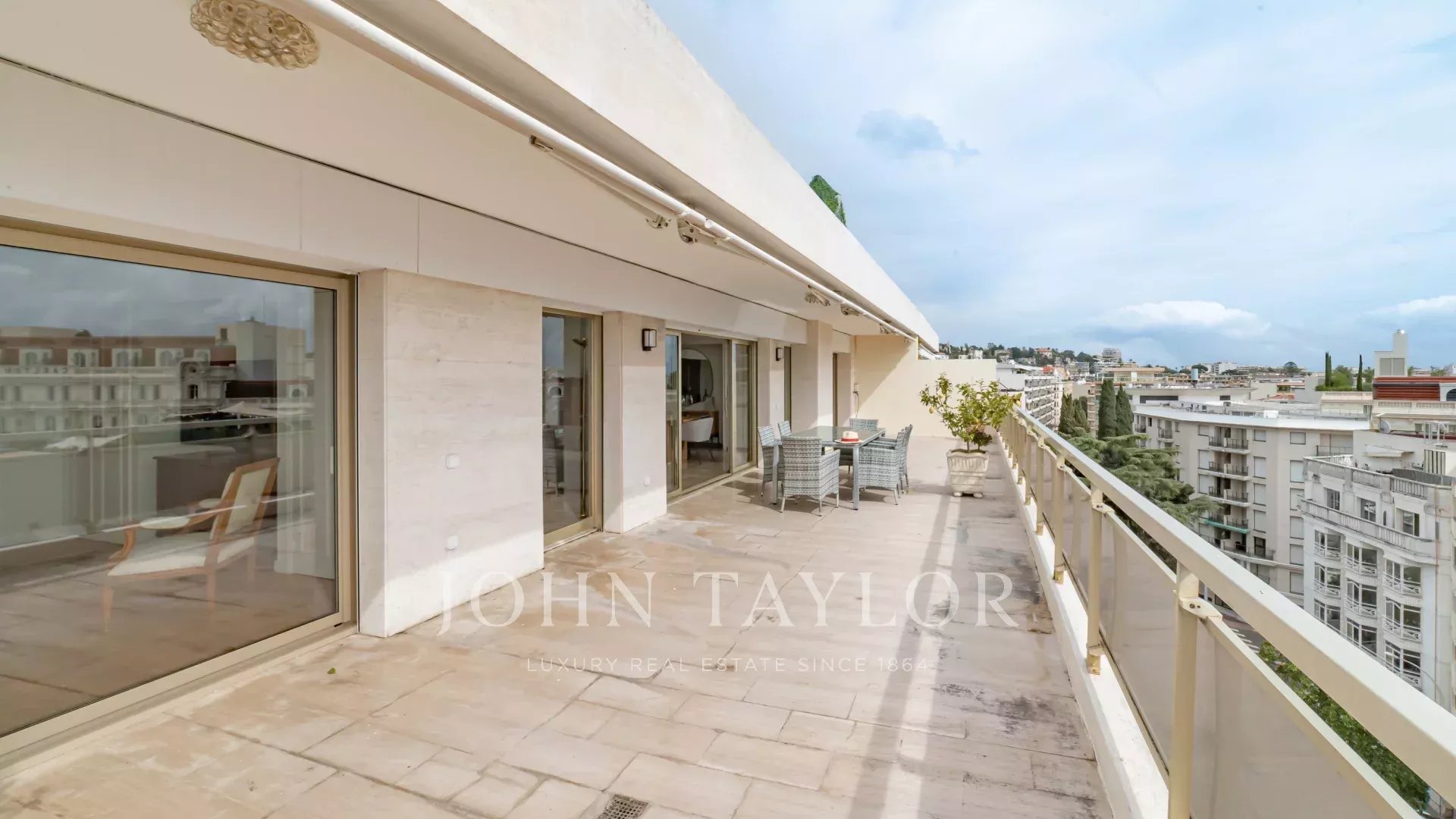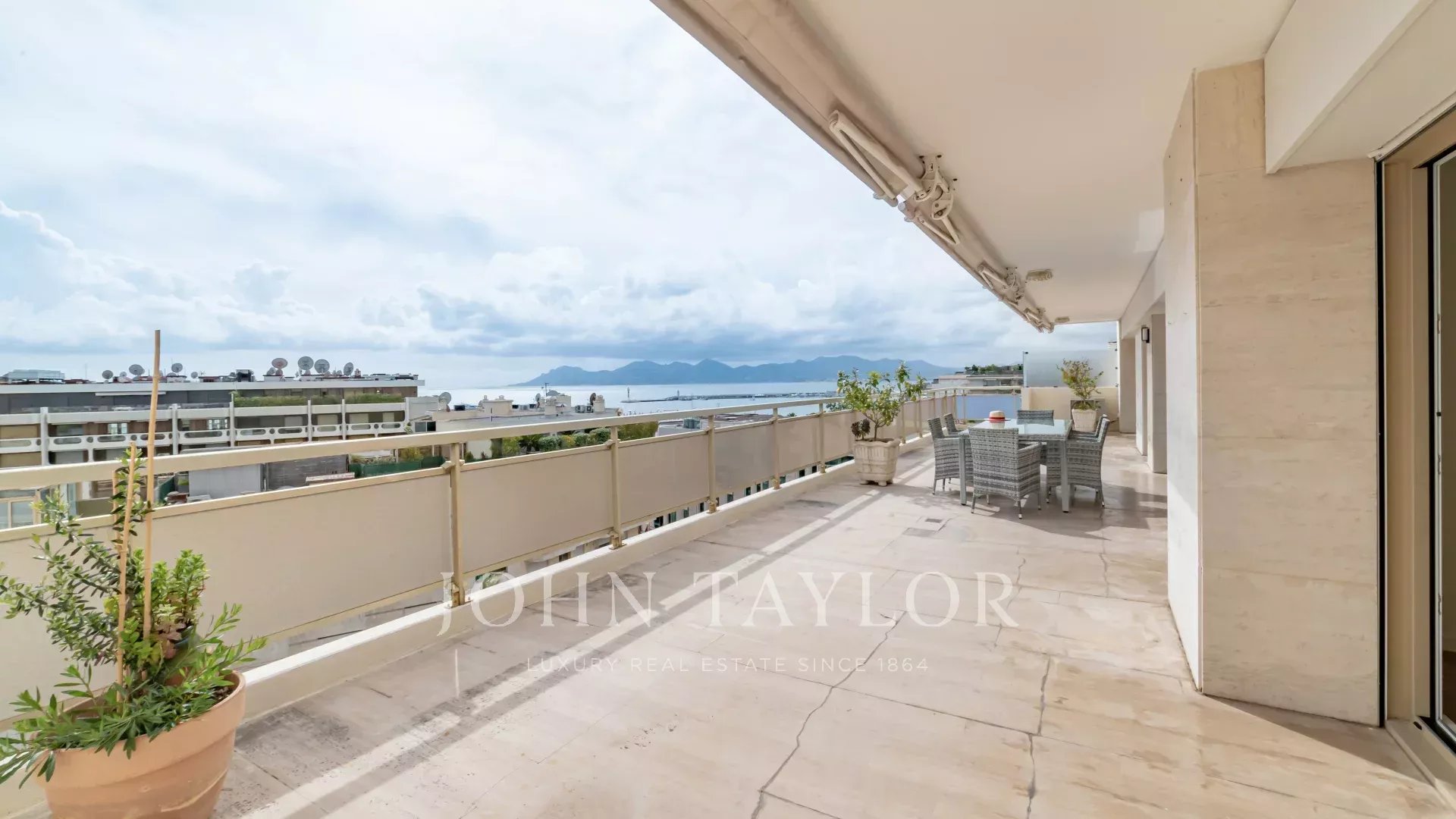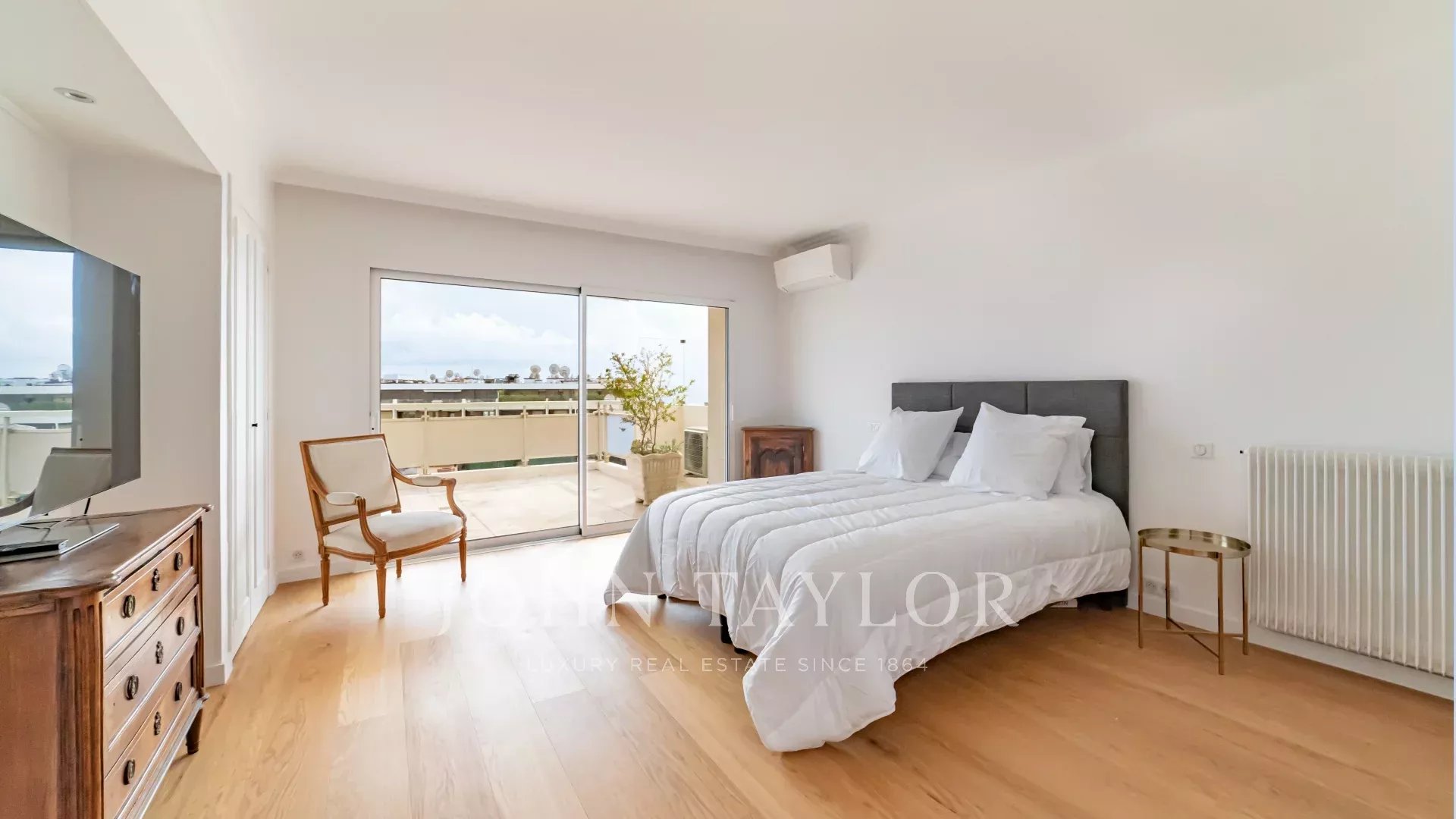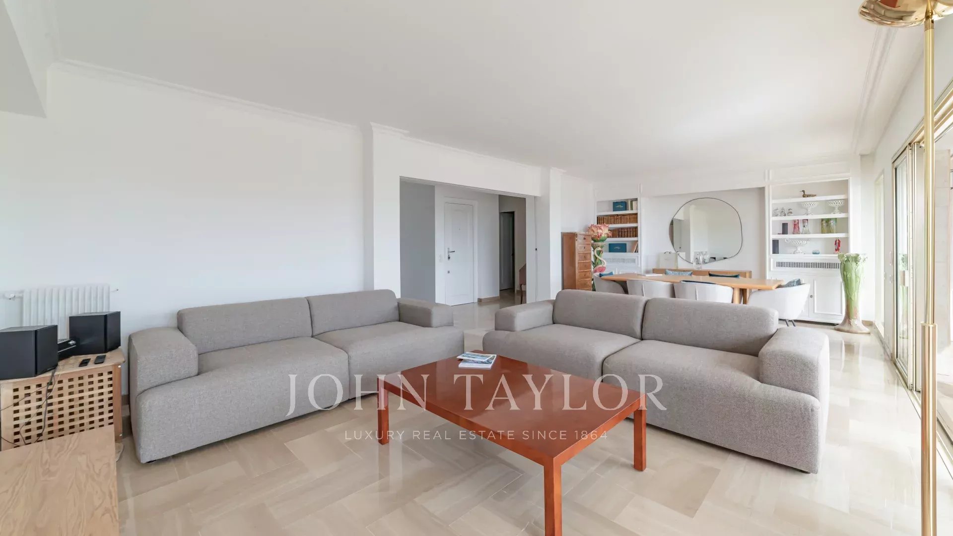 Эта выходящая на юг квартира площадью 140 м2 с кондиционером расположена на последнем этаже (8) резиденции в центре города, всего в нескольких минутах ходьбы от пляжей и Дворца фестивалей.