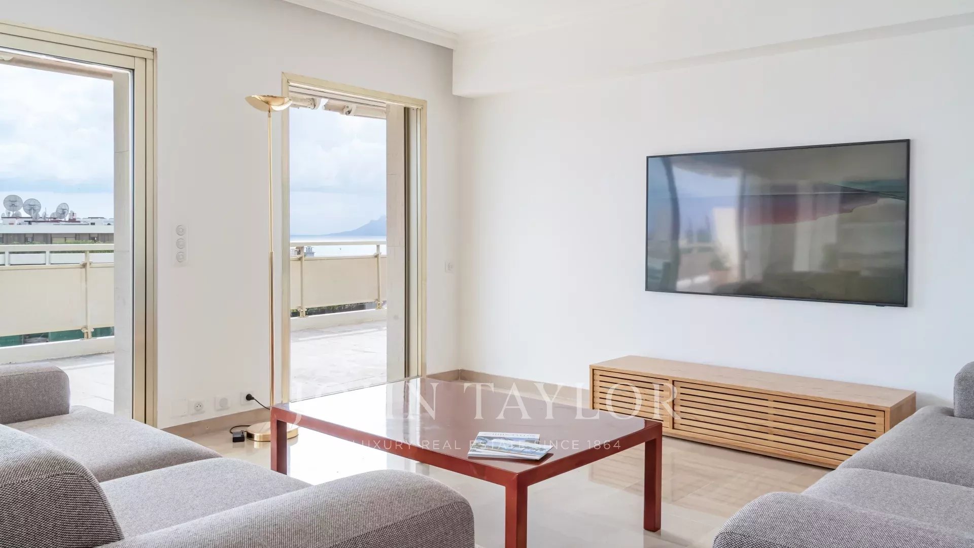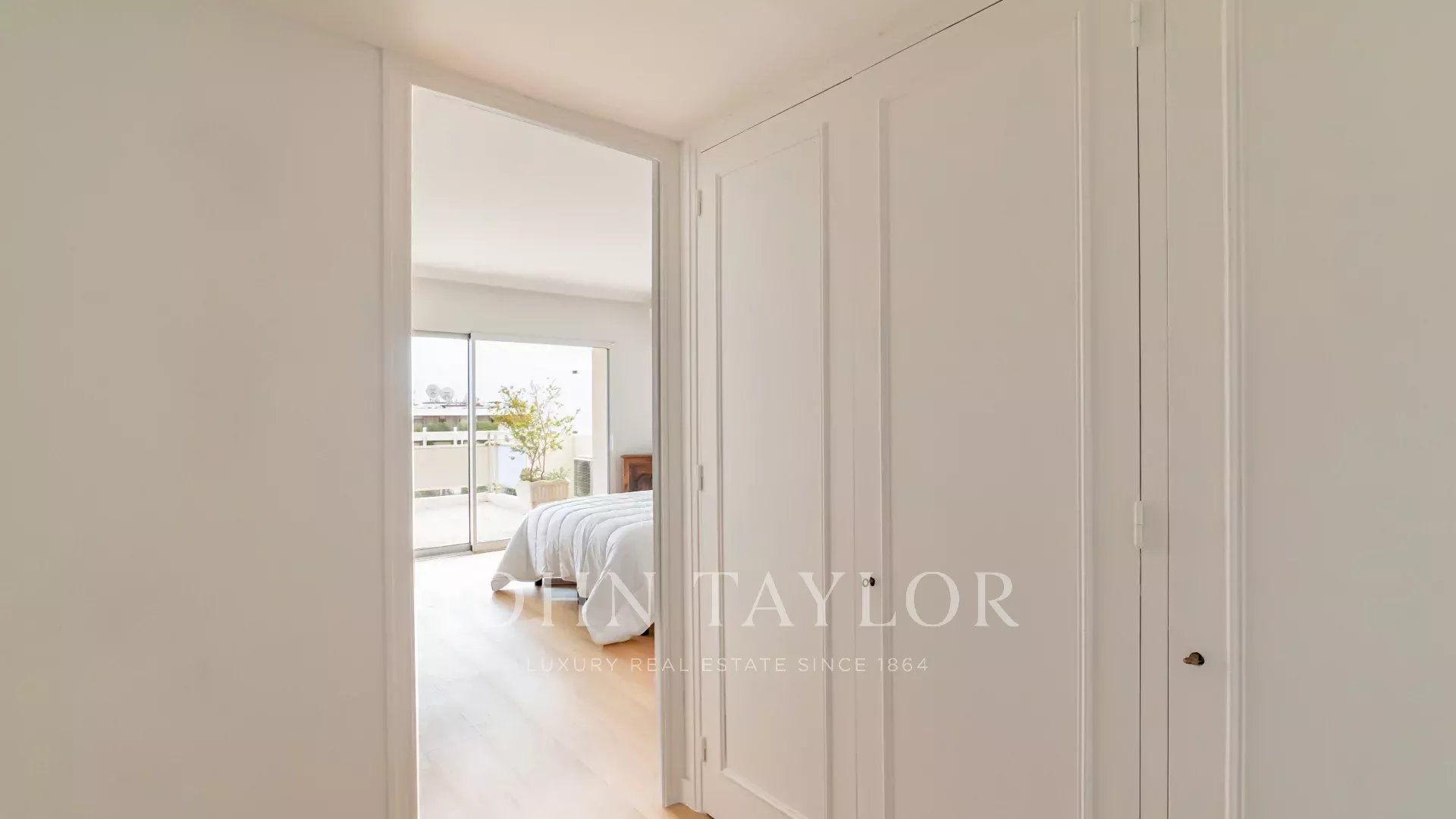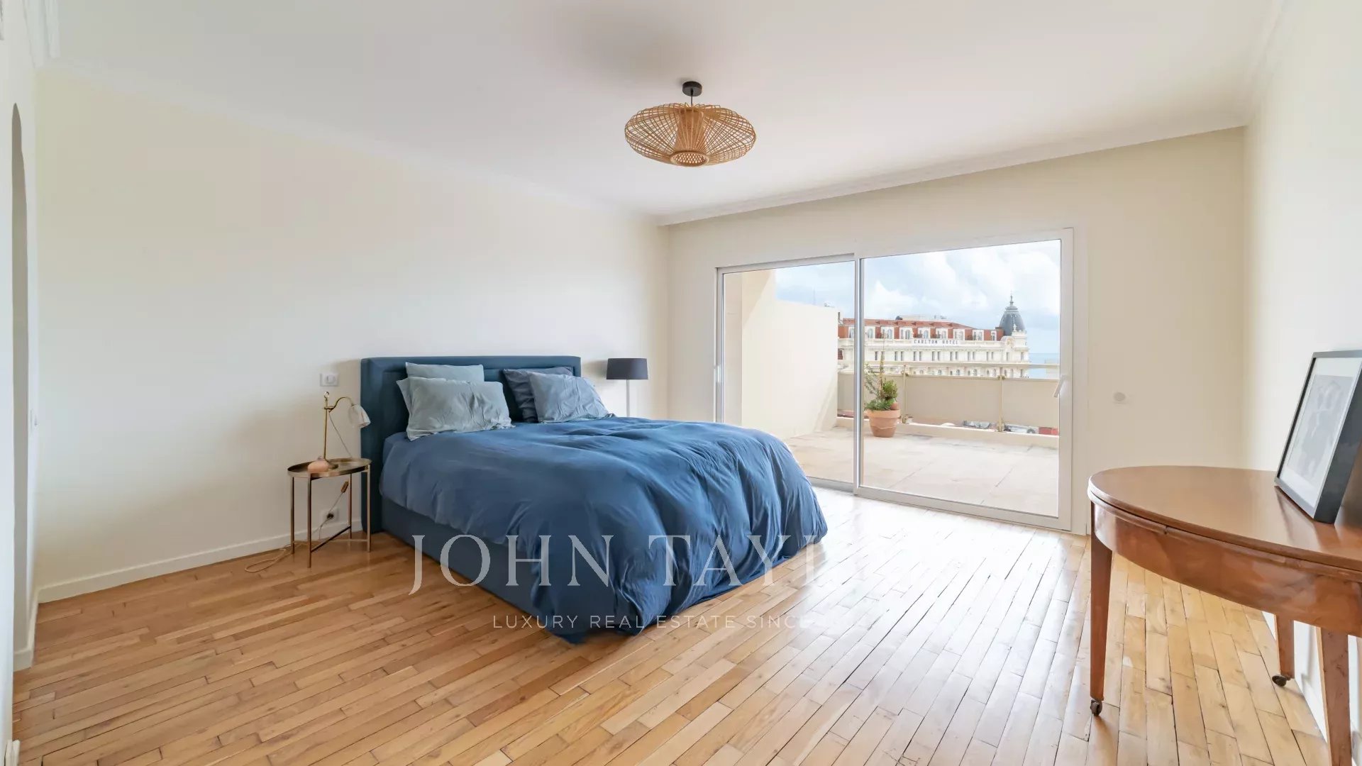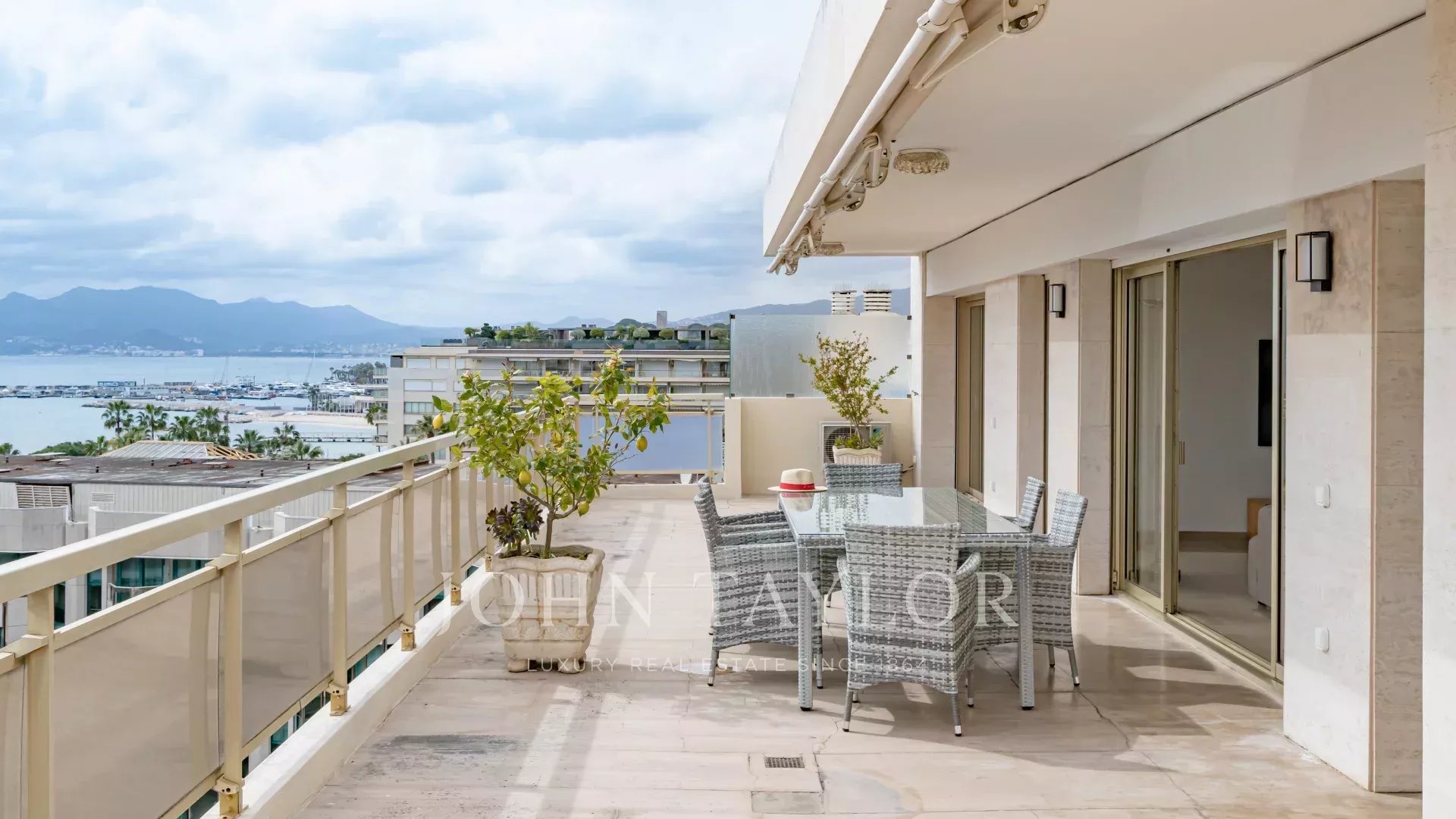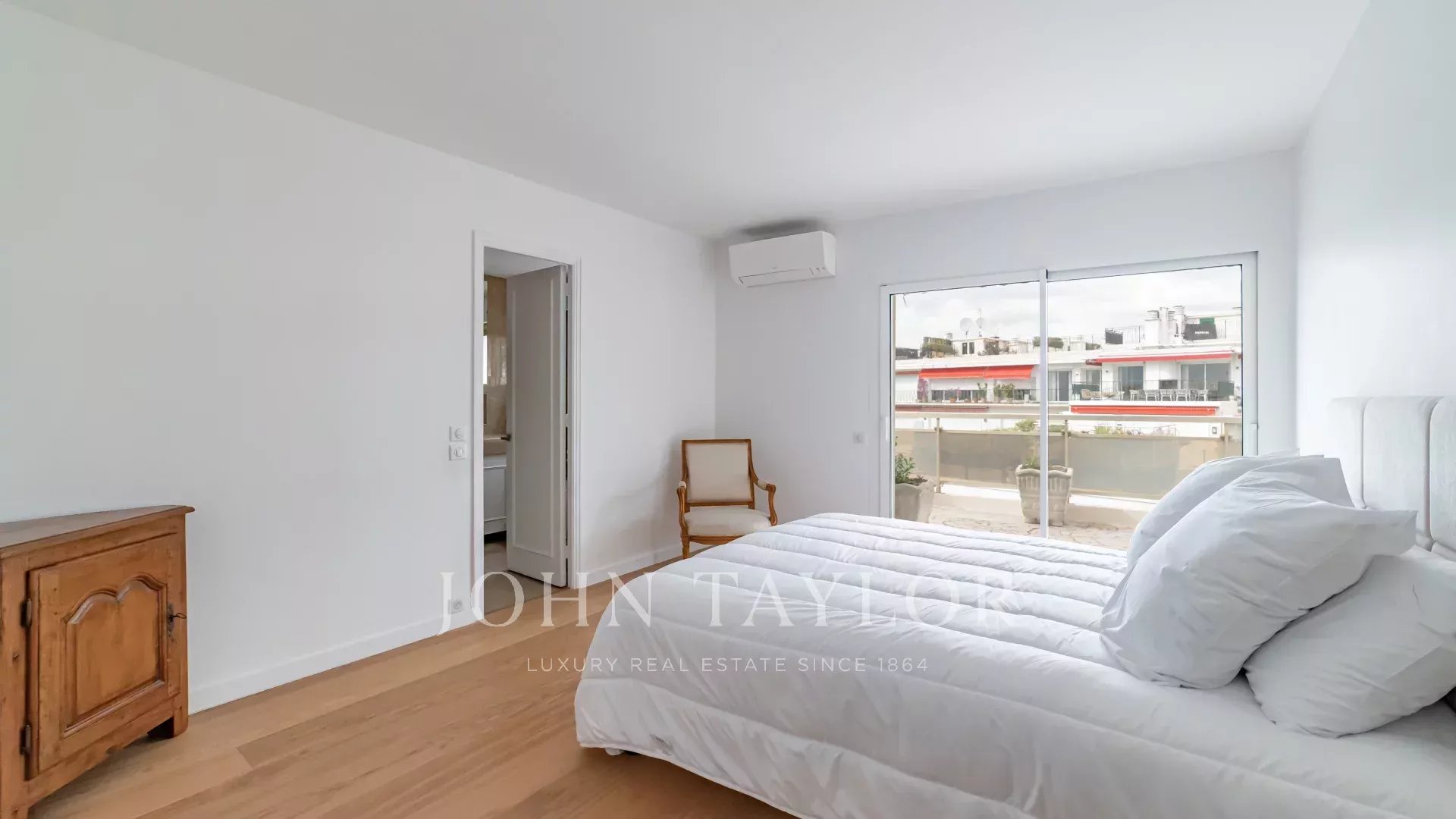 Эта выходящая на юг квартира площадью 140 м2 с кондиционером расположена на последнем этаже (8) резиденции в центре города, всего в нескольких минутах ходьбы от пляжей и Дворца фестивалей.