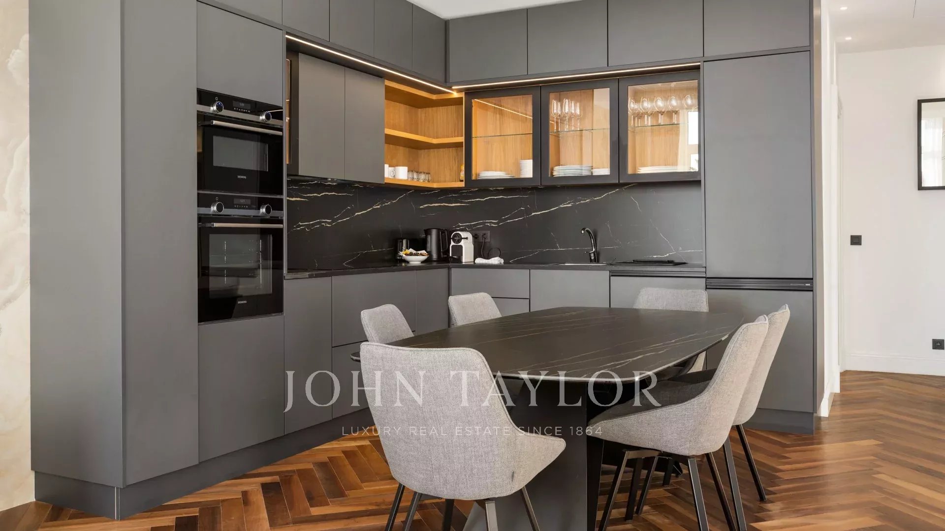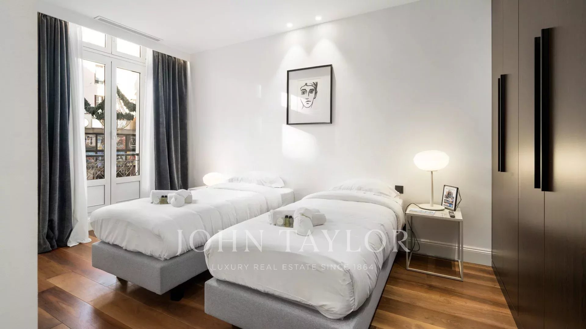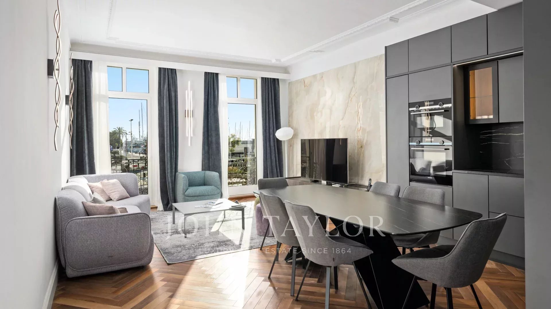 Идеально расположенная напротив Дворца фестивалей с беспрепятственным видом на площадь Шарля де Голля, старый порт Канн и Ле Сюке, эта современная квартира площадью 120 м² была полностью отремонтирована и оснащена кондиционером.