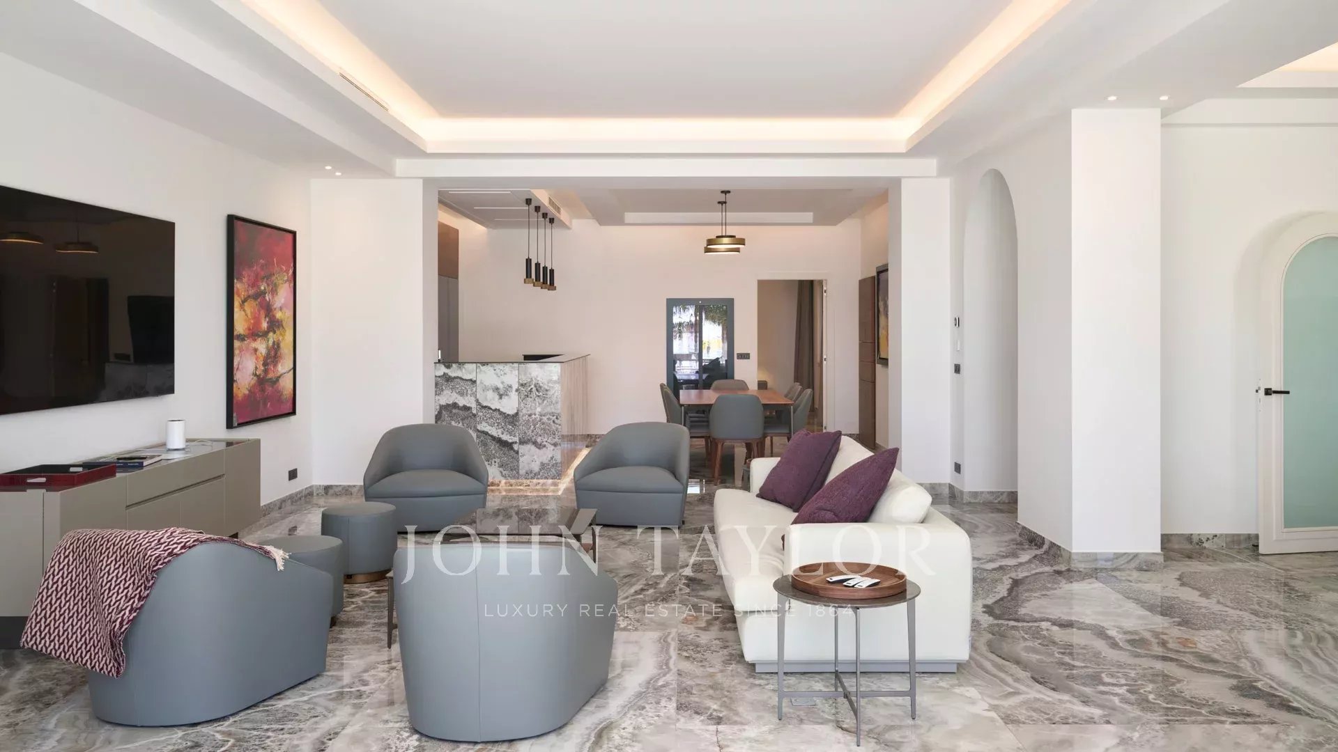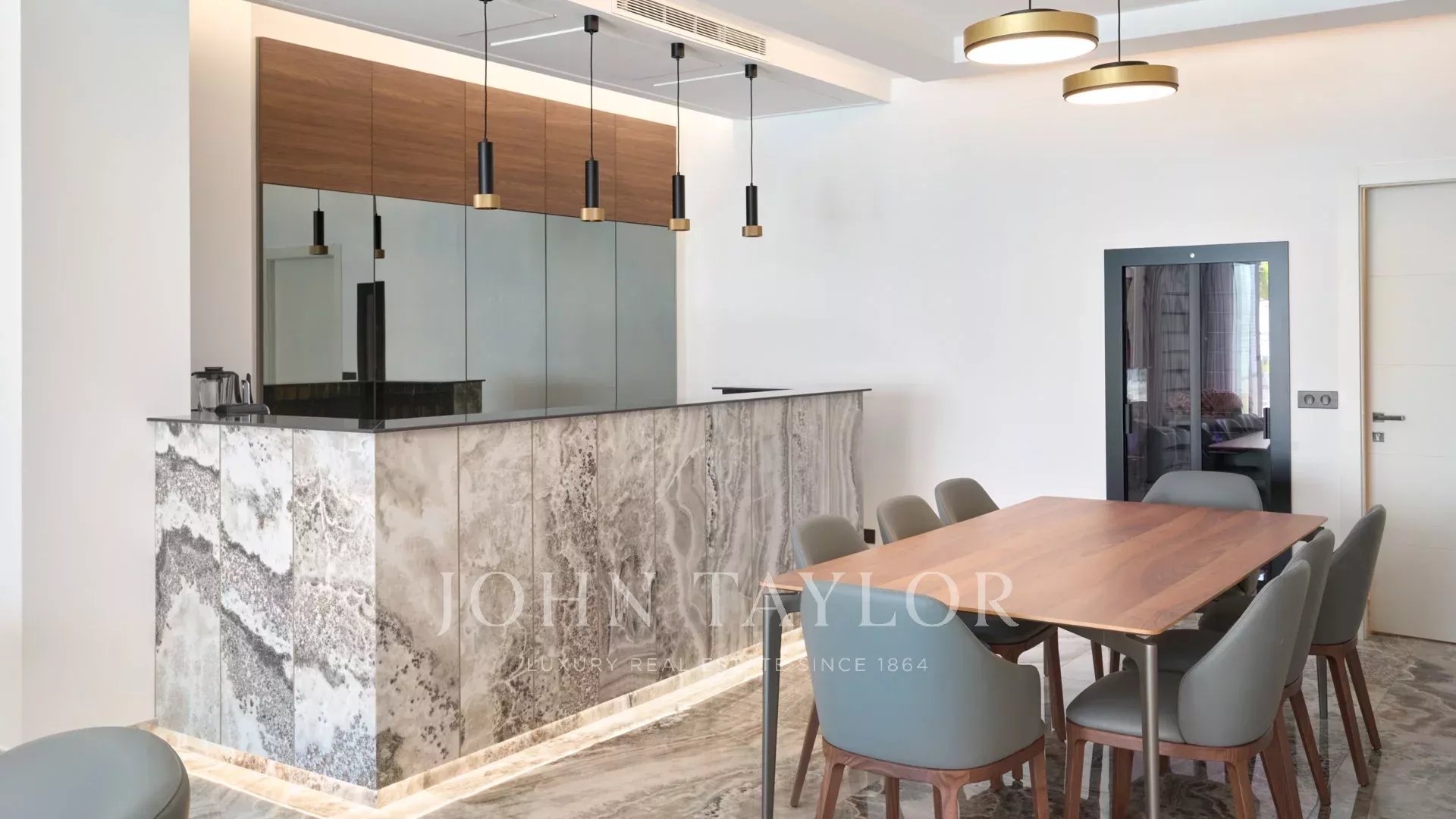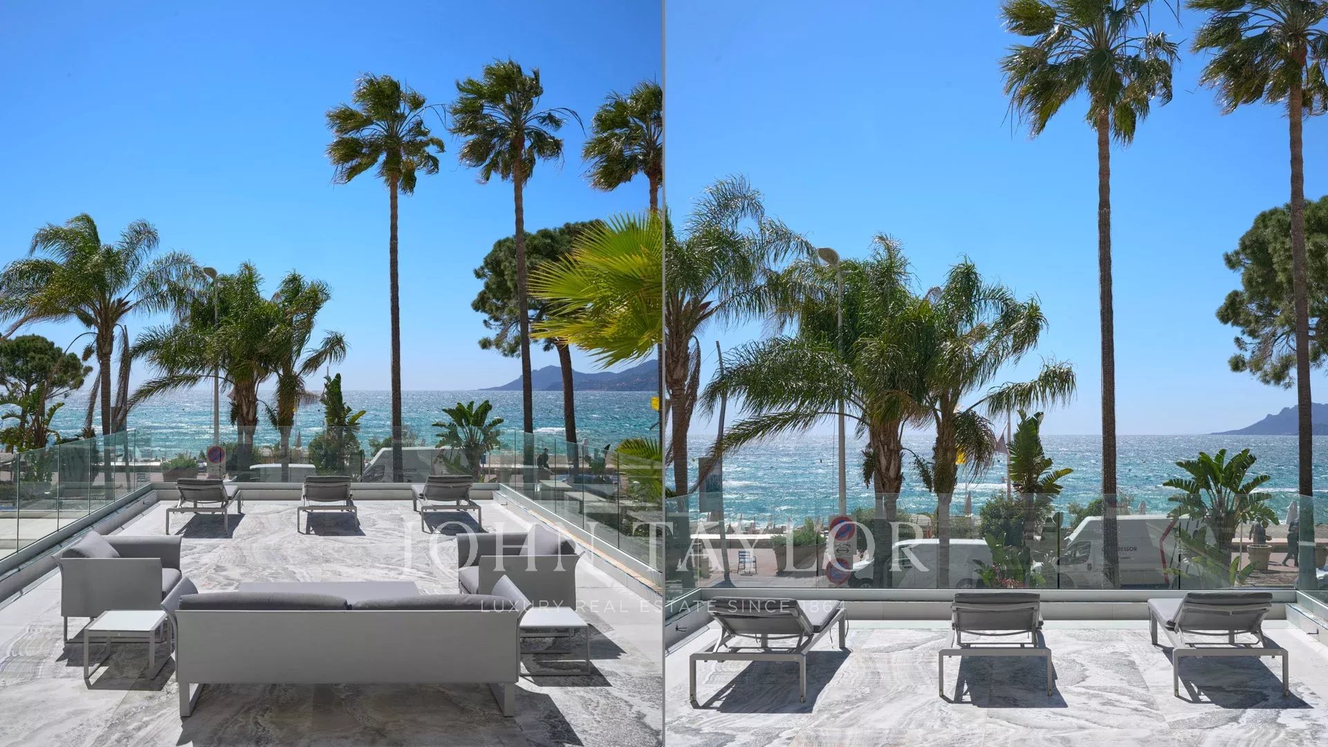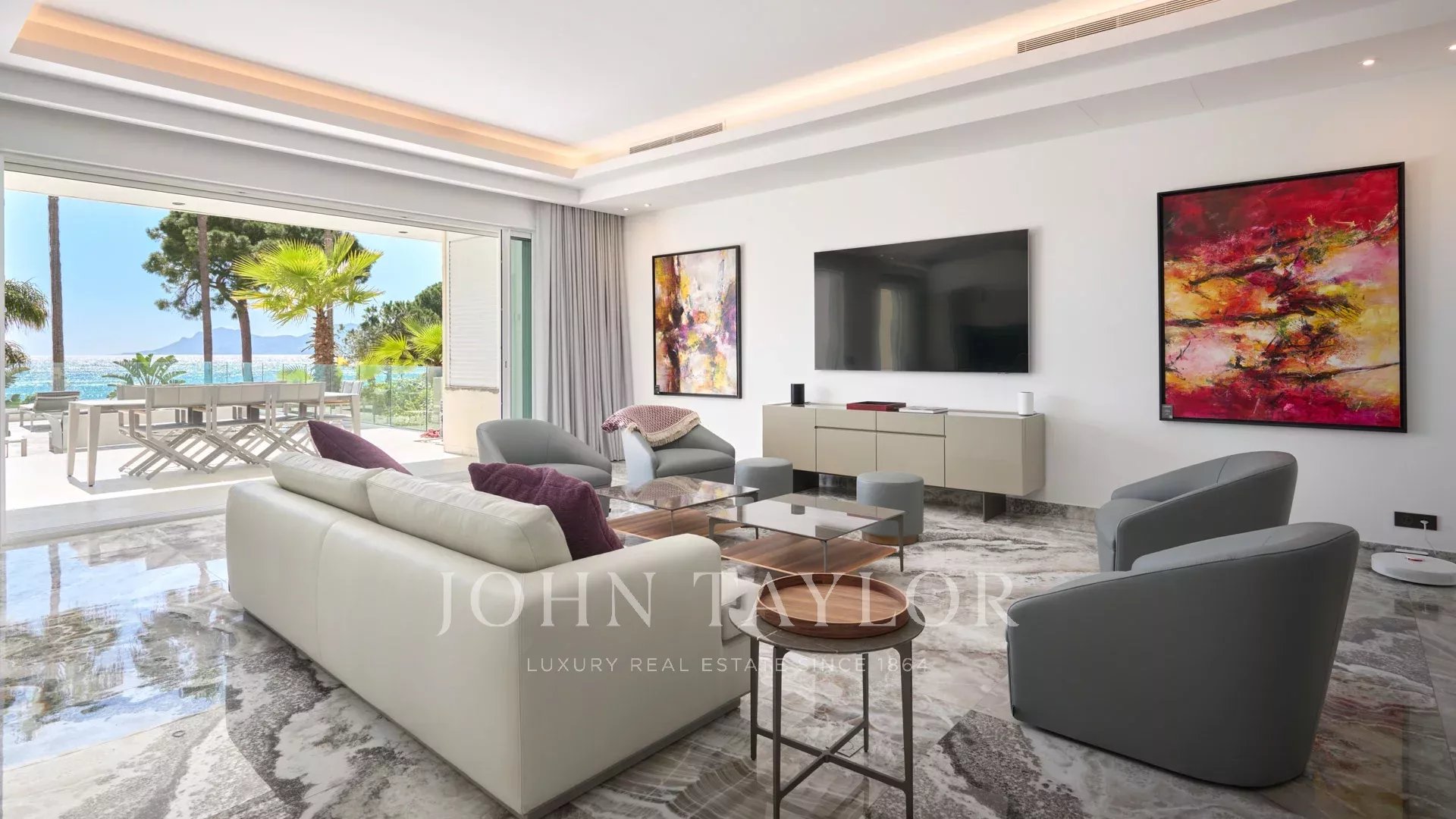 В самом сердце набережной Круазетт, между отелем Carlton и дворцом Мирамар, на 1-м этаже резиденции, находится эта великолепная современная квартира площадью 220 м2.