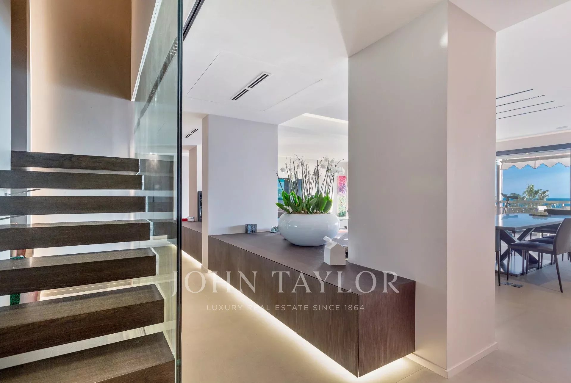 Эта великолепная современная двухуровневая квартира площадью около 250 м2 расположена на 5 и 6 этажах в одном из роскошных особняков на набережной Круазетт с великолепным видом на Каннский залив. Полностью отремонтированная, квартира отличается привлекательным декором и высококлассным оборудованием.