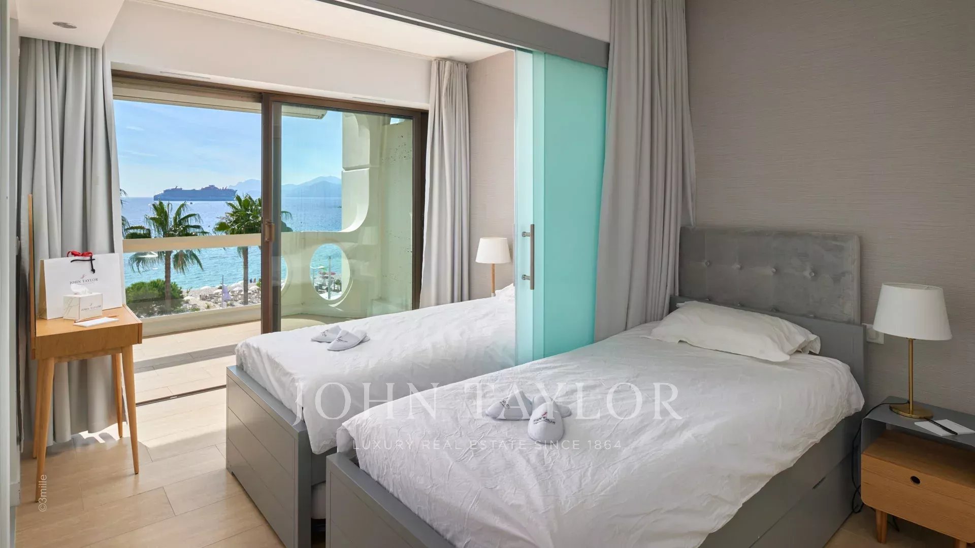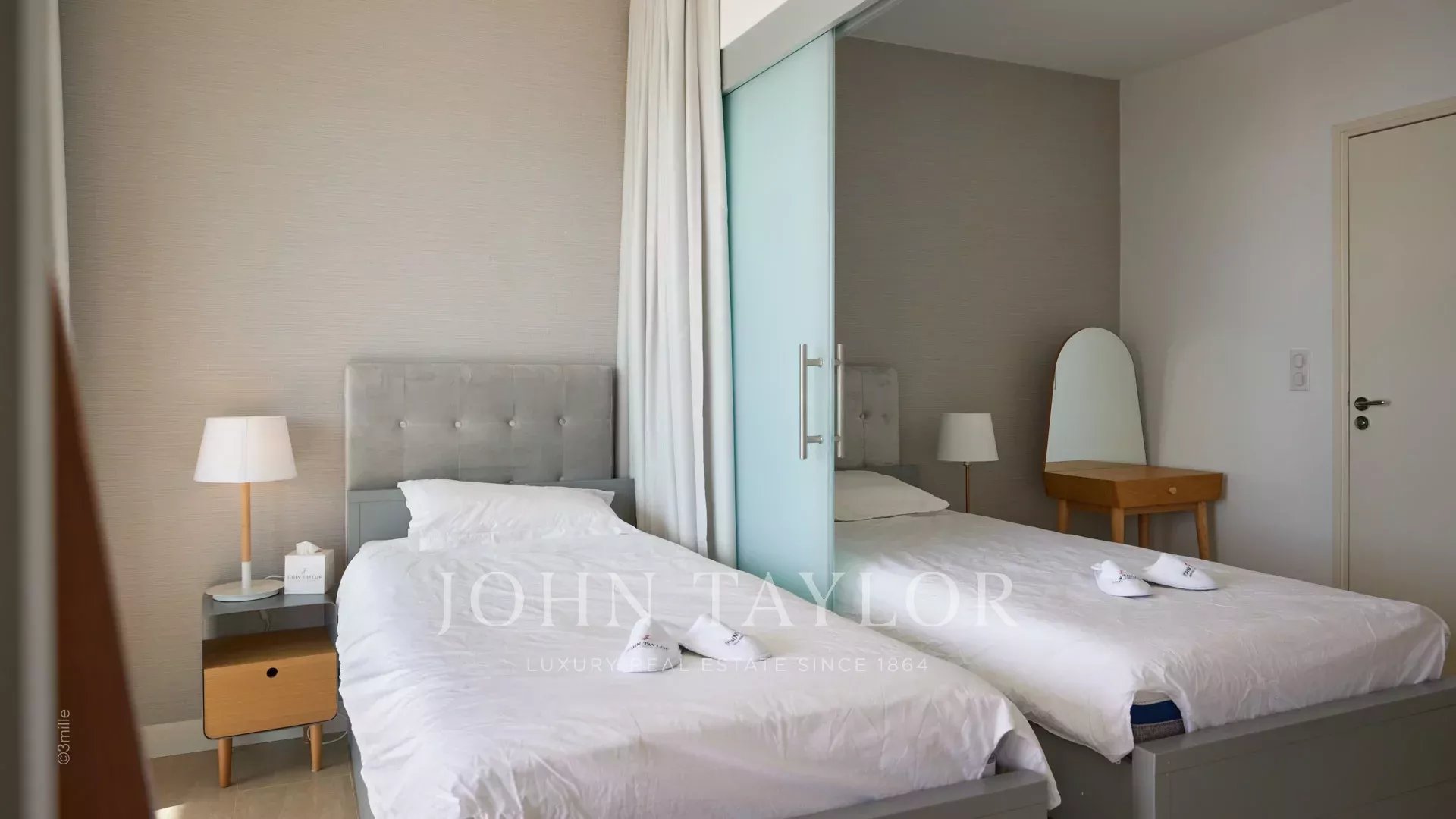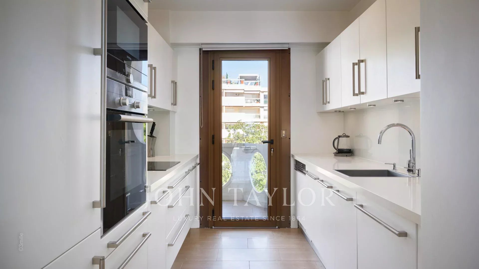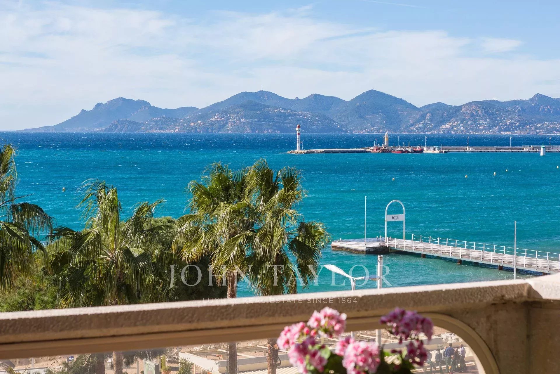 Идеально расположенная в самом центре набережной Круазетт, на 4-м этаже, эта красивая квартира площадью 89 м² имеет террасу площадью 20 м² с великолепным панорамным видом на Каннский залив, Сюке и Эстерель.