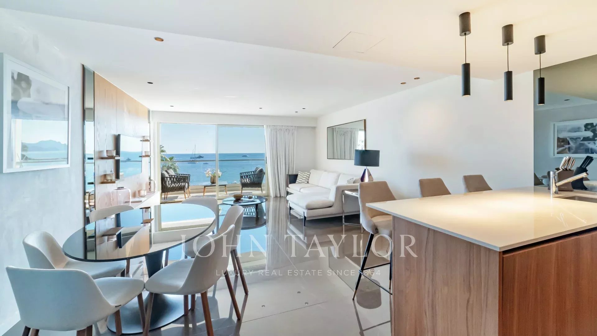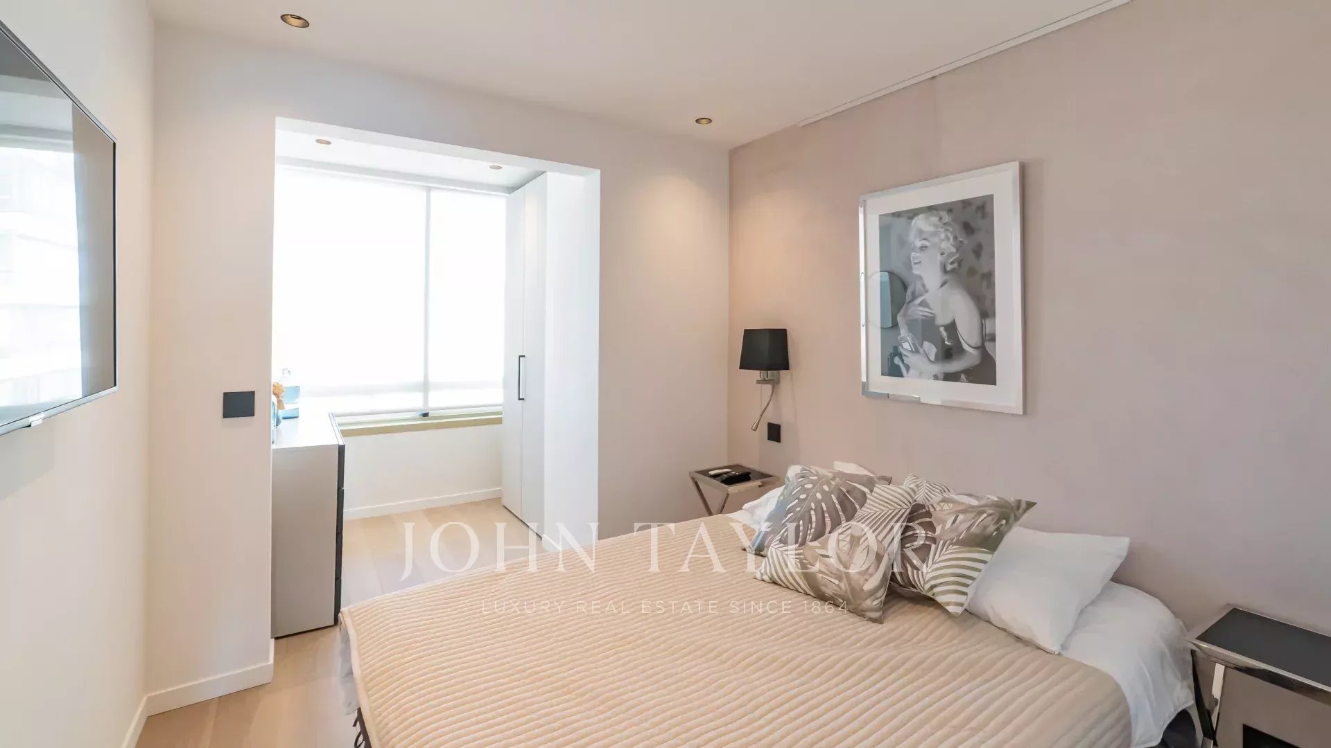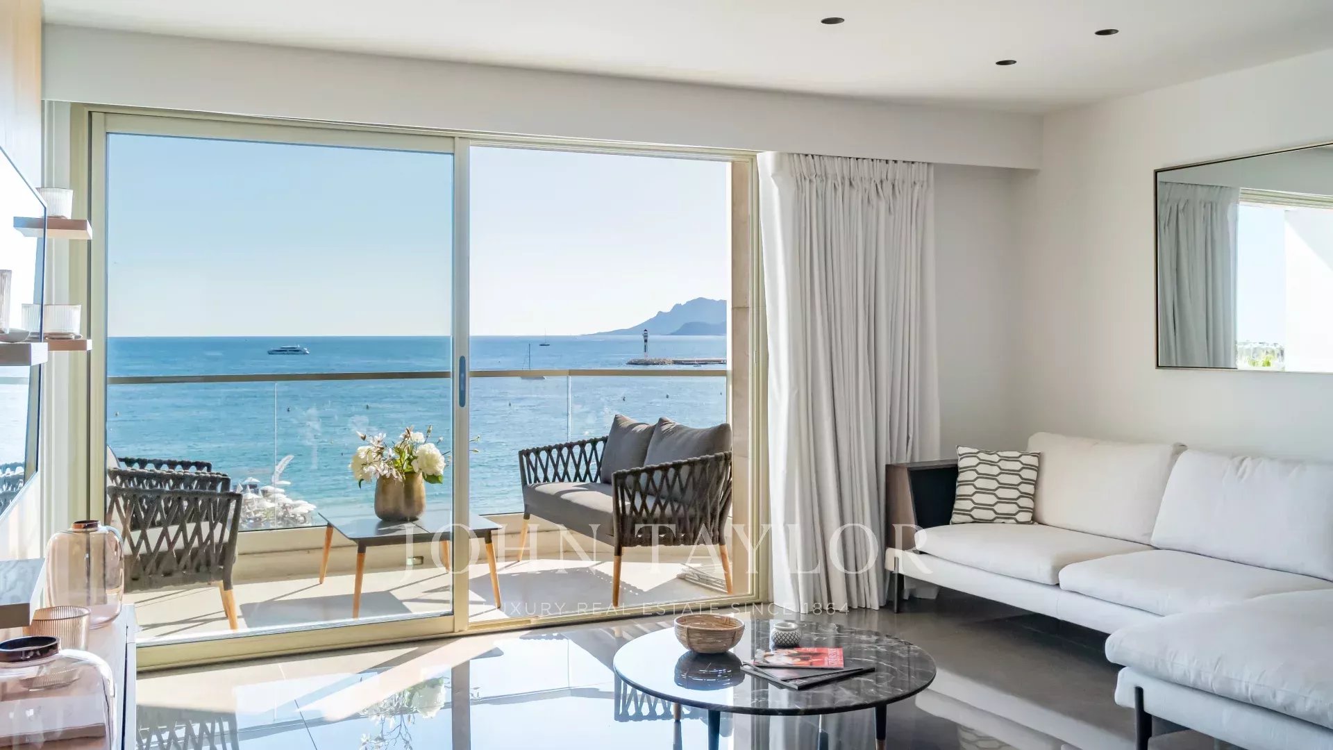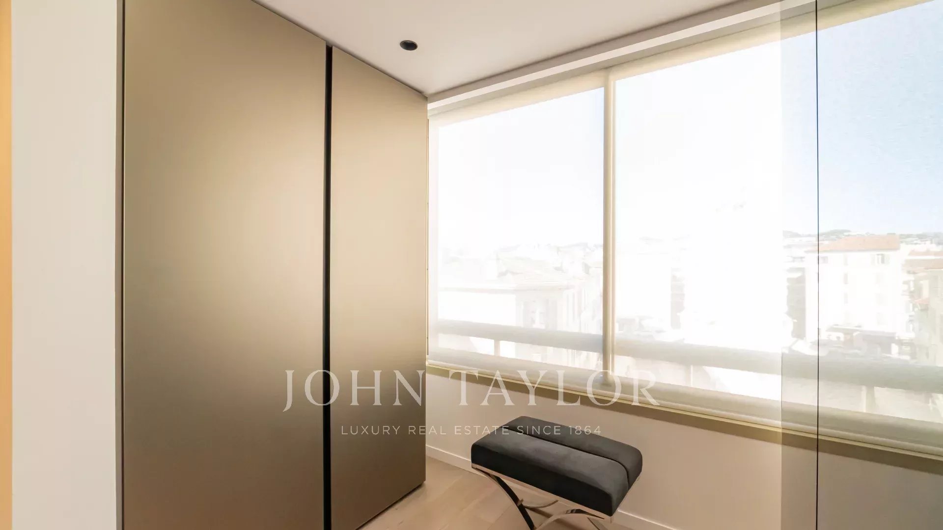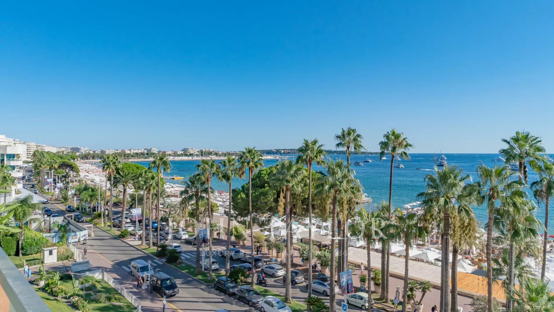 Красивая квартира с кондиционером, расположенная в самом сердце набережной Круазетт на 5-м этаже роскошной резиденции, с великолепным панорамным видом на Каннский залив, его пляжи, Дворец фестивалей и Эстерель.