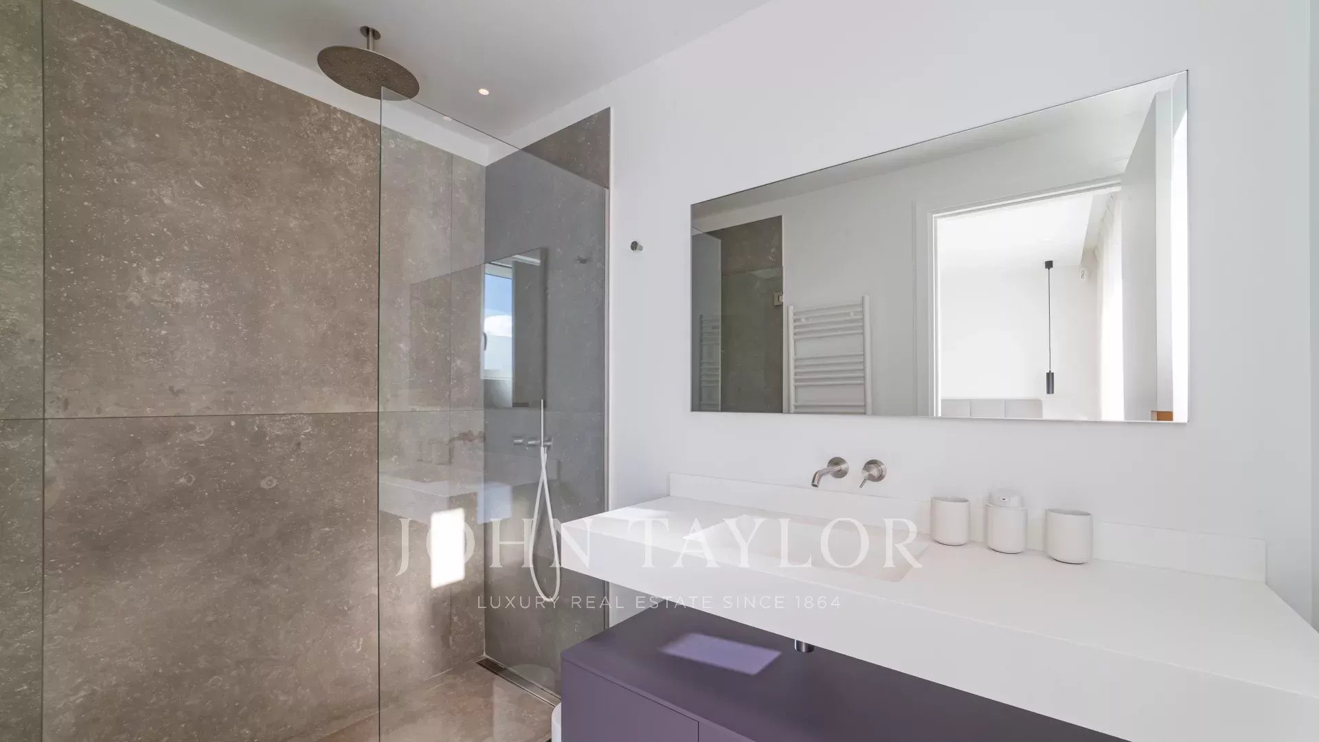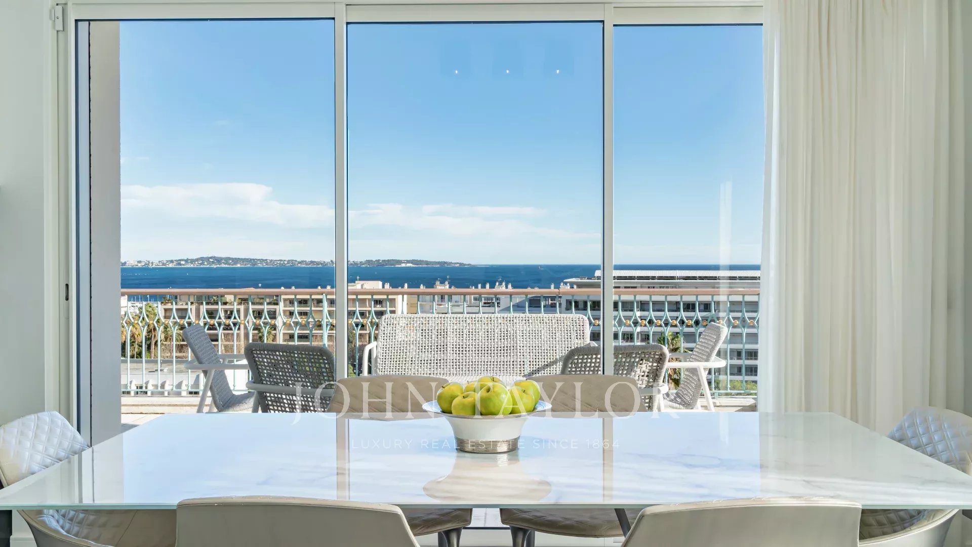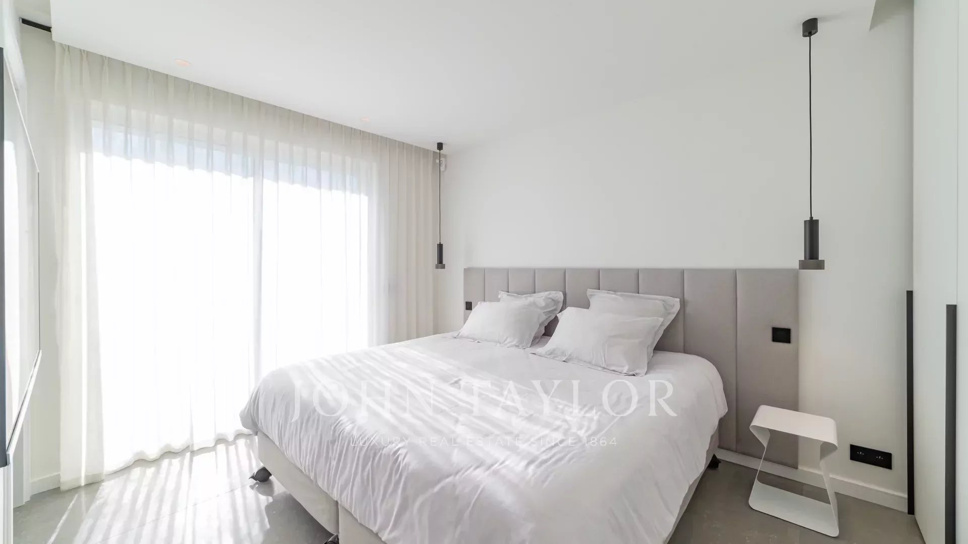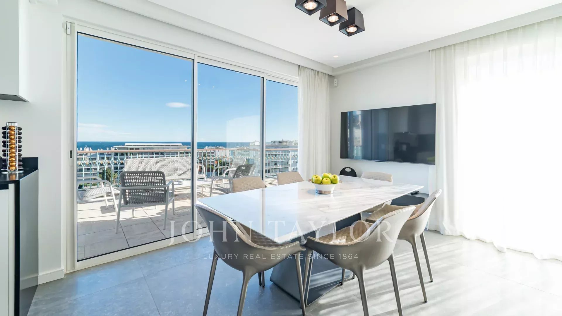 В одной из самых престижных резиденций на набережной Круазетт, в секторе Palm Beach - Pointe Croisette, с великолепным видом на Каннский залив, находится эта великолепная современная терраса на крыше площадью около 110 м2.