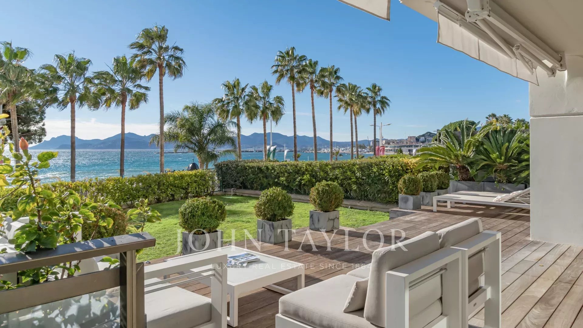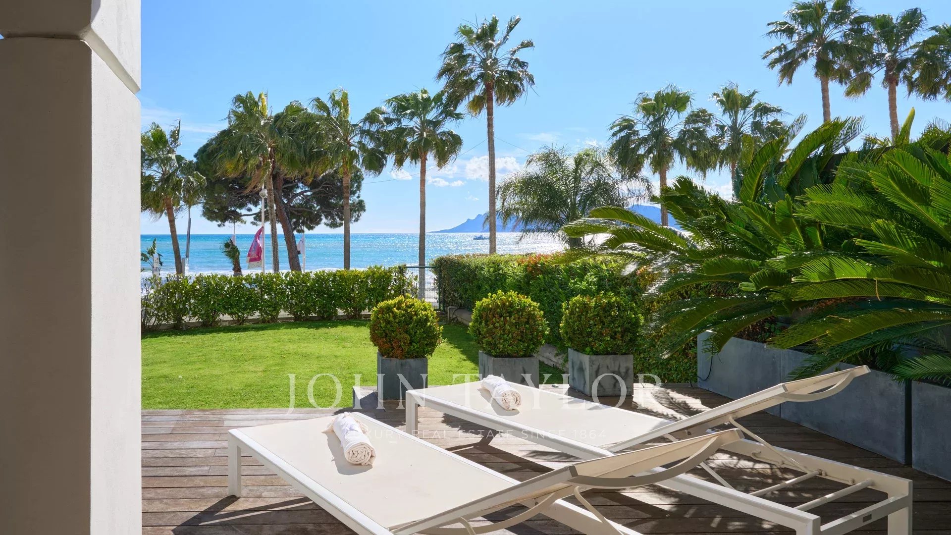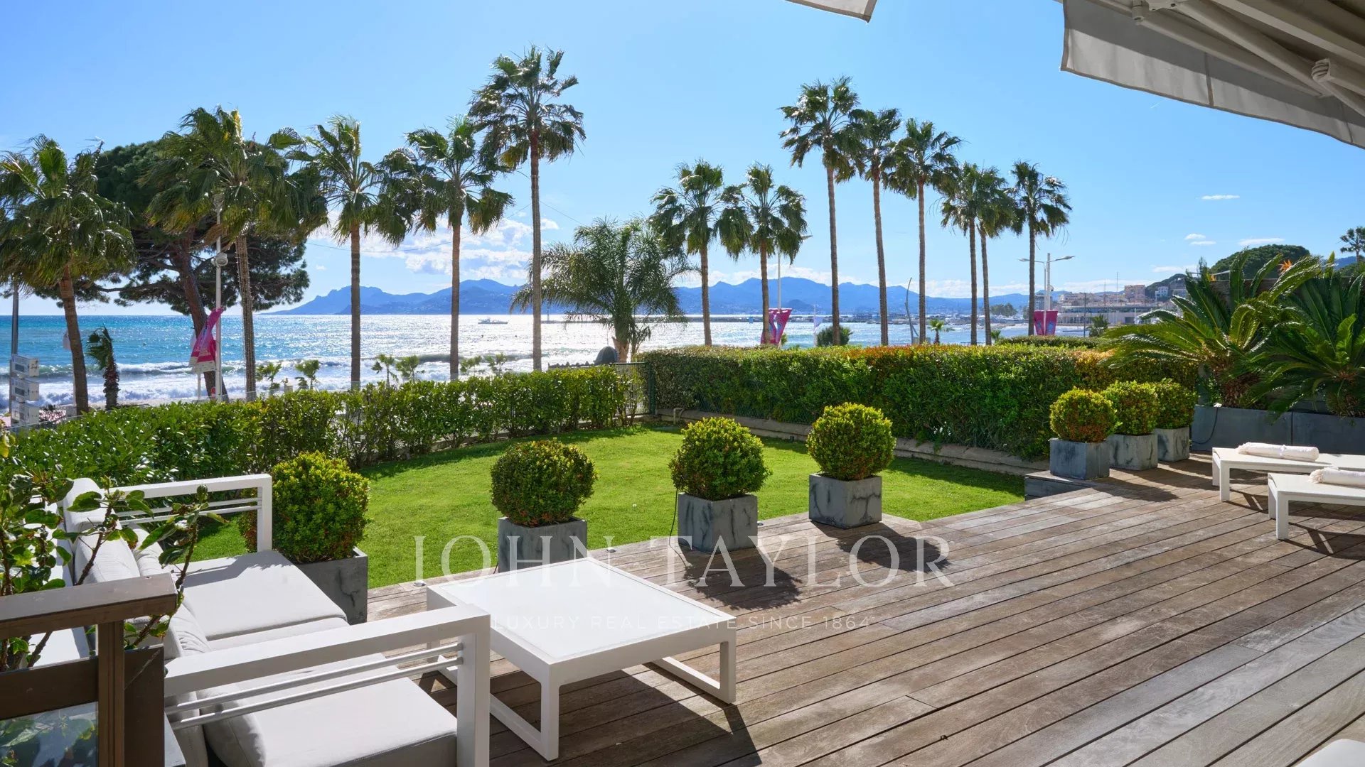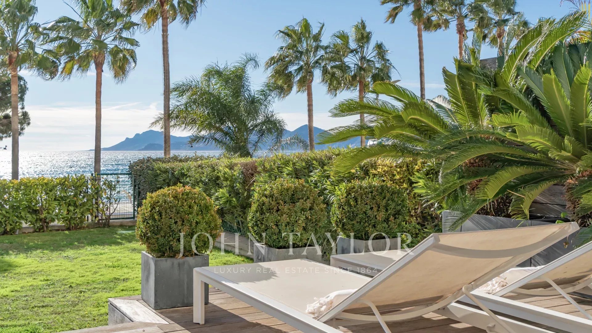 Привилегированное расположение этой охраняемой резиденции рядом с отелем Carlton открывает захватывающий вид на Каннский залив и Средиземное море. Воспользуйтесь этим исключительным видом с обширной террасы в саду площадью около 100 м² - идеального места для отдыха или деловых встреч.