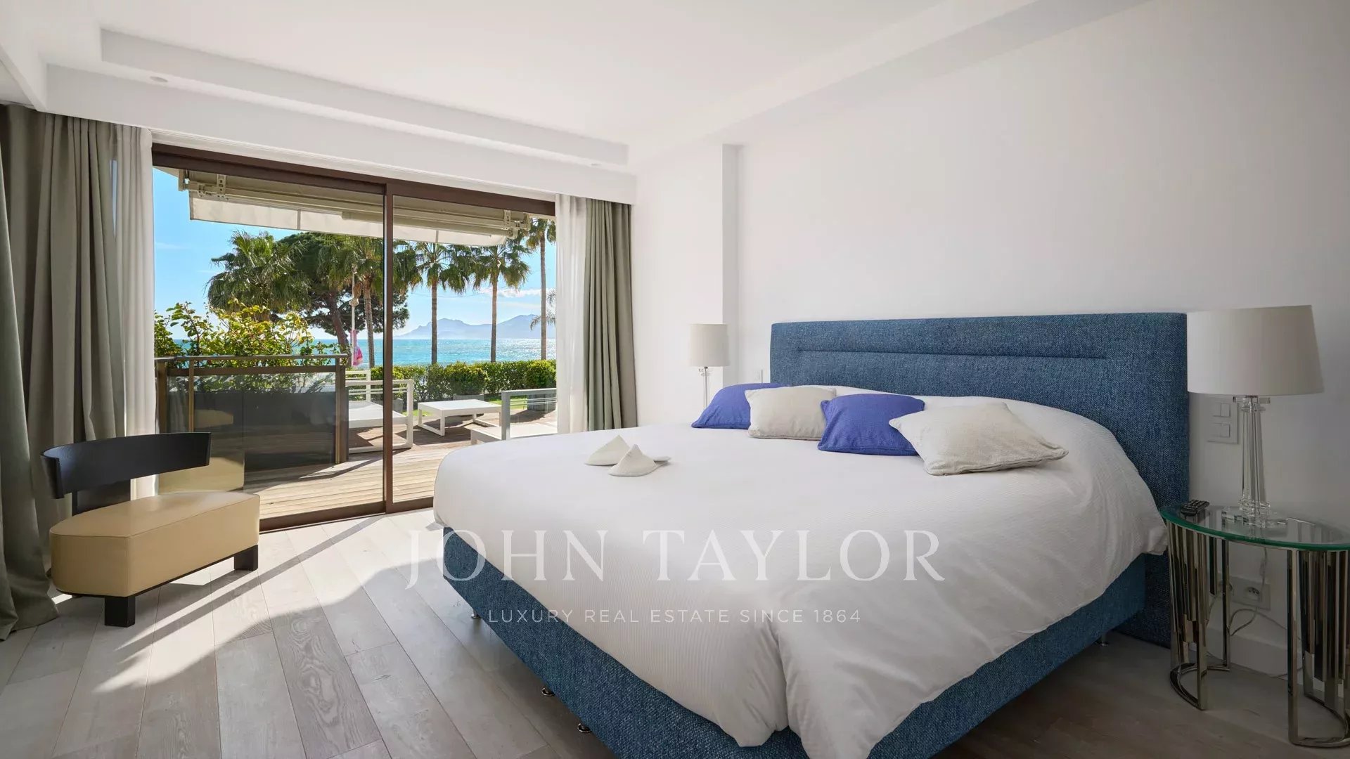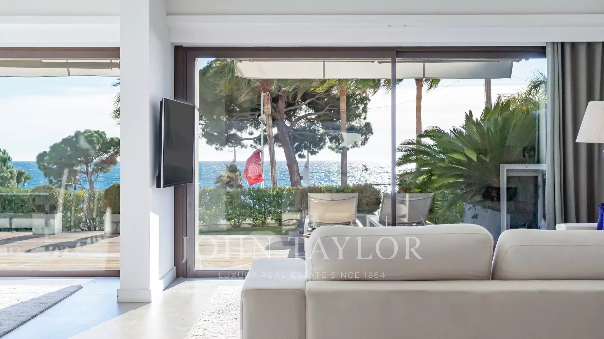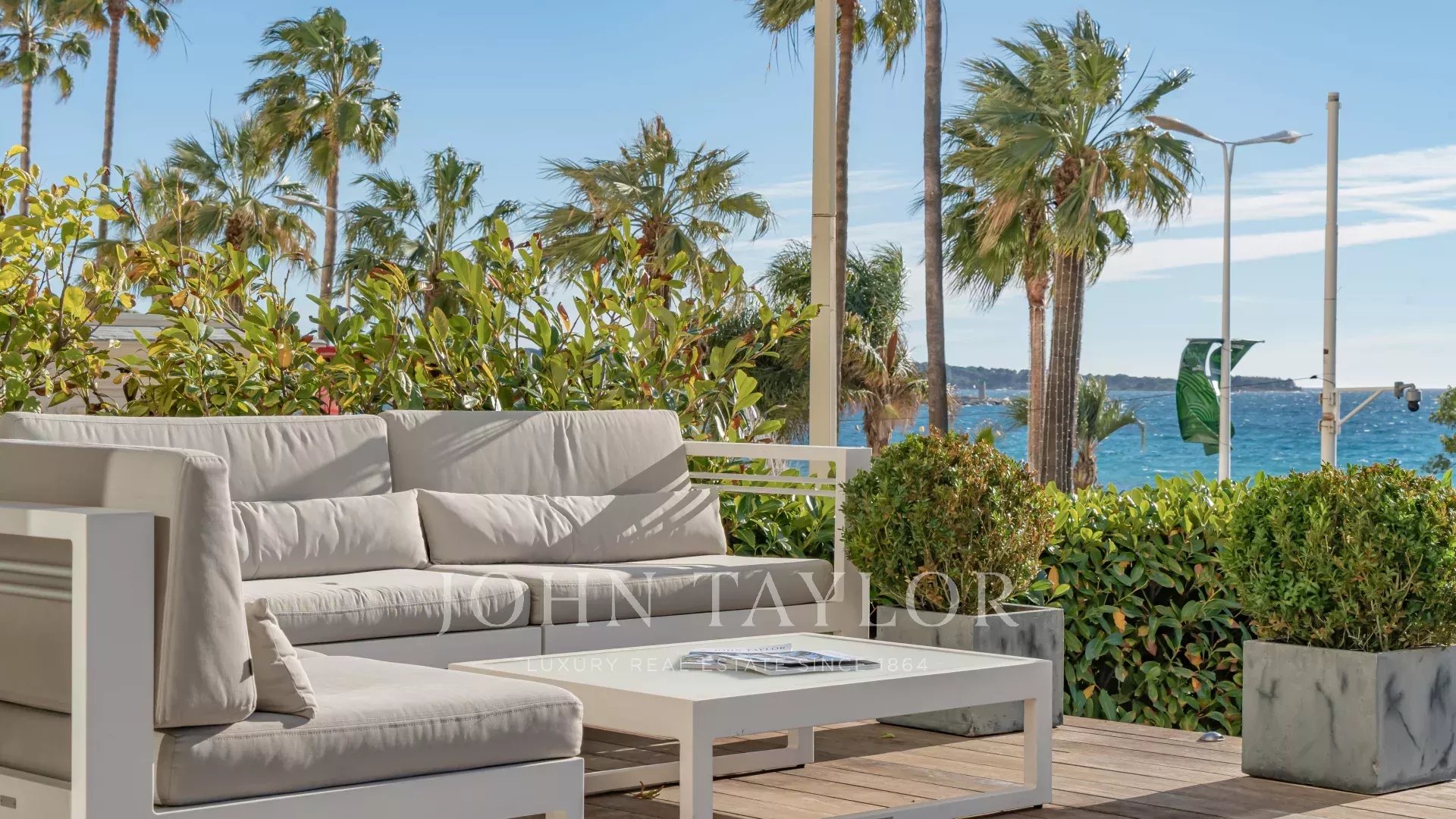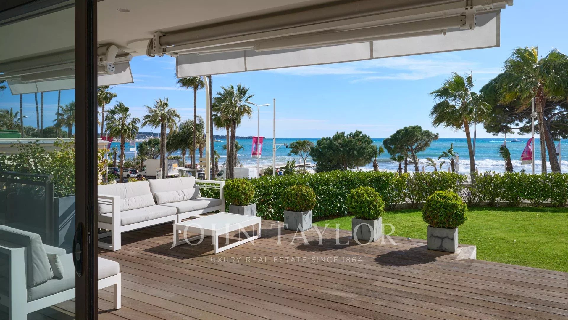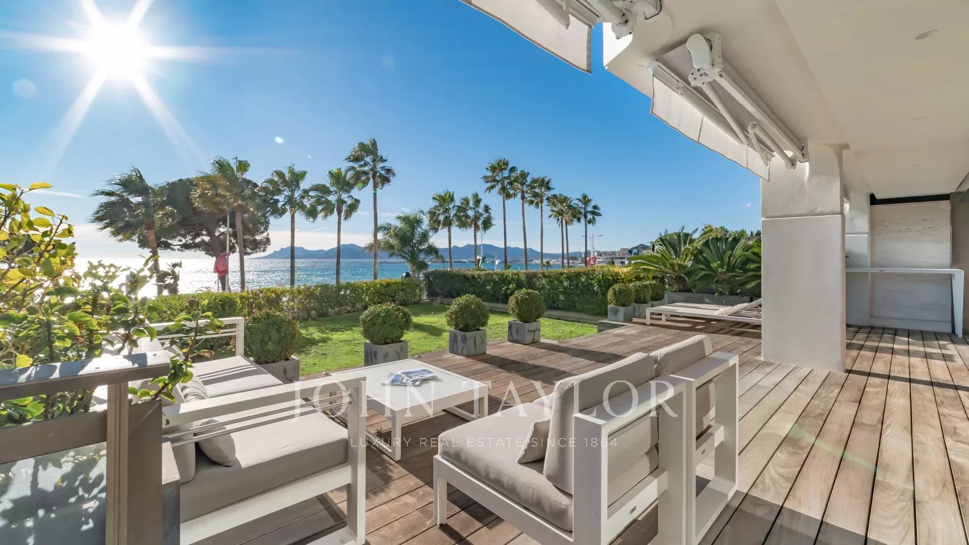 Привилегированное расположение этой охраняемой резиденции рядом с отелем Carlton открывает захватывающий вид на Каннский залив и Средиземное море. Воспользуйтесь этим исключительным видом с обширной террасы в саду площадью около 100 м² - идеального места для отдыха или деловых встреч.