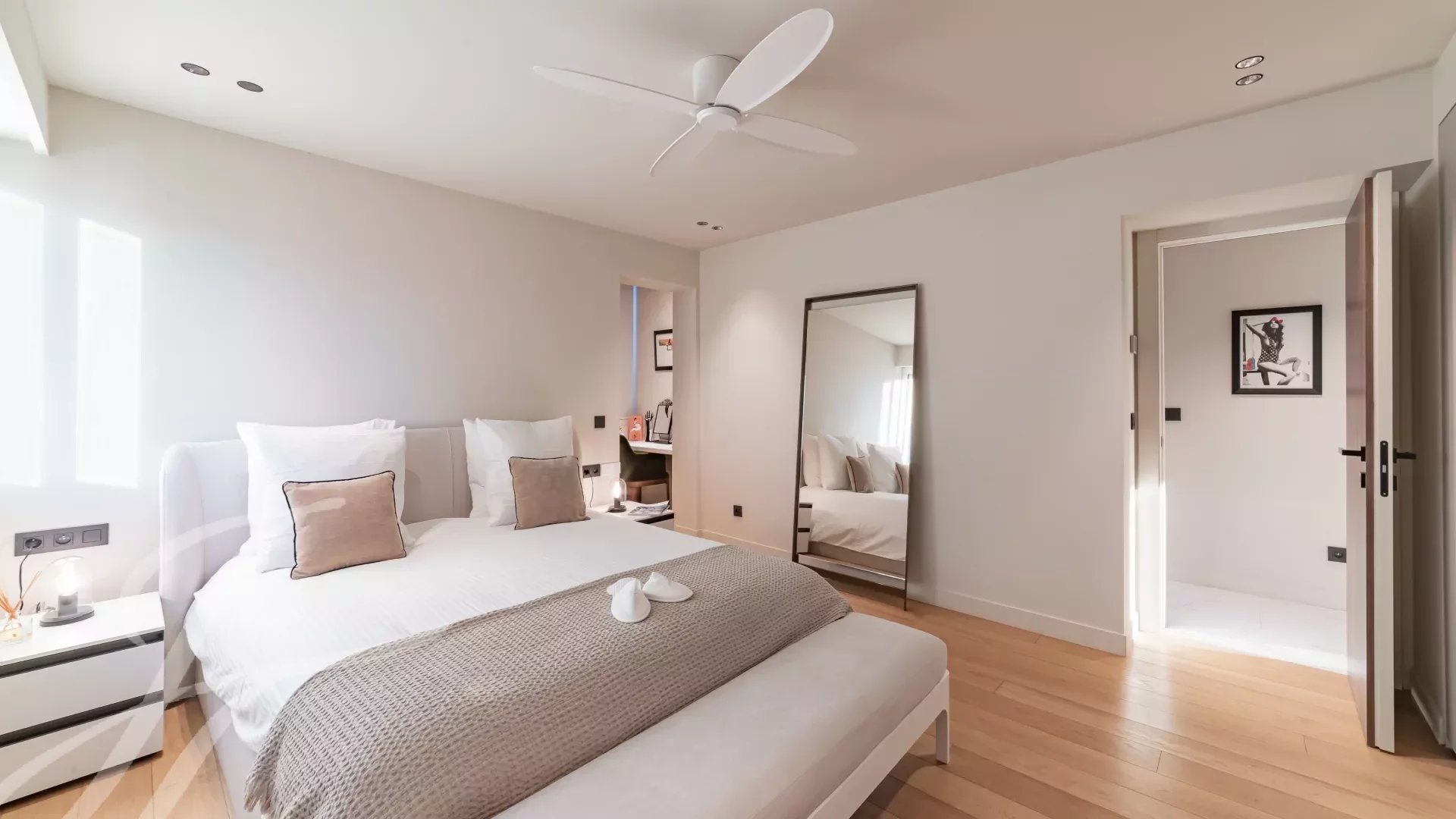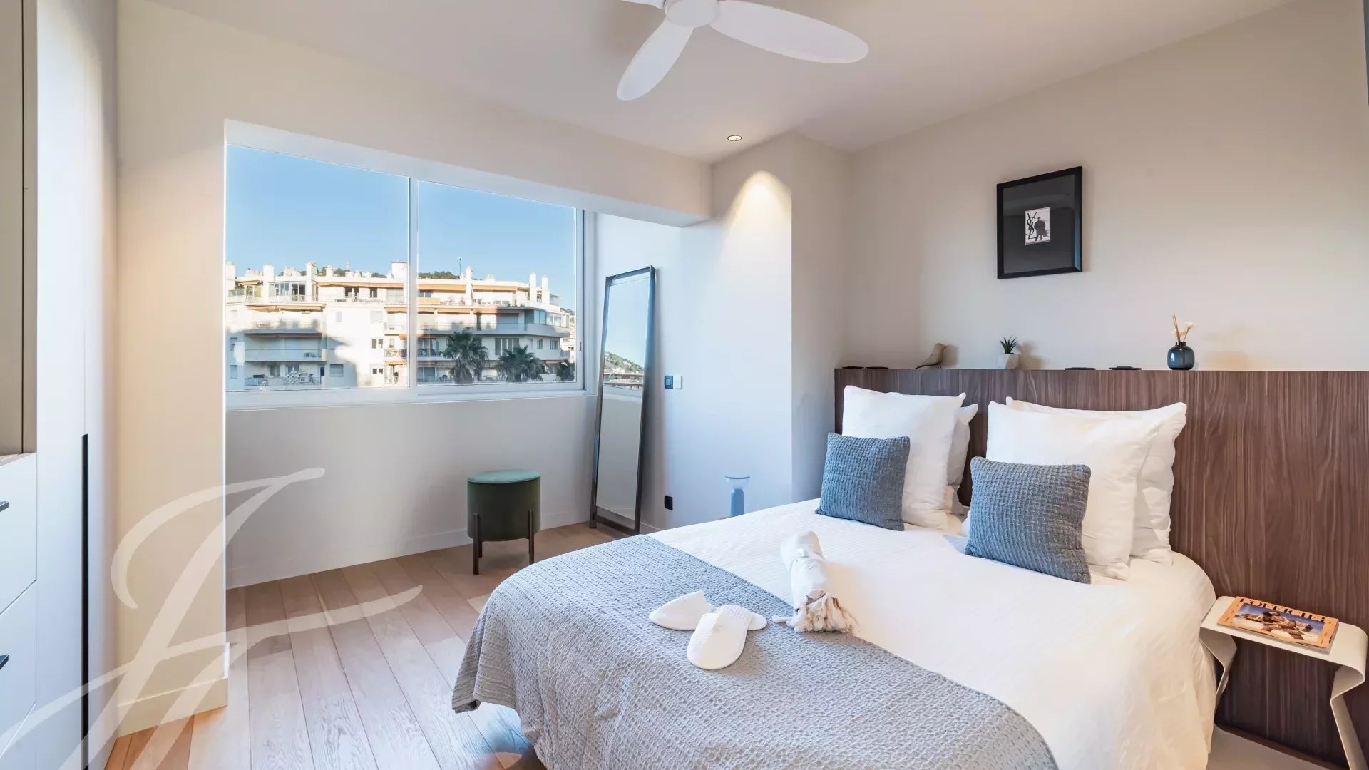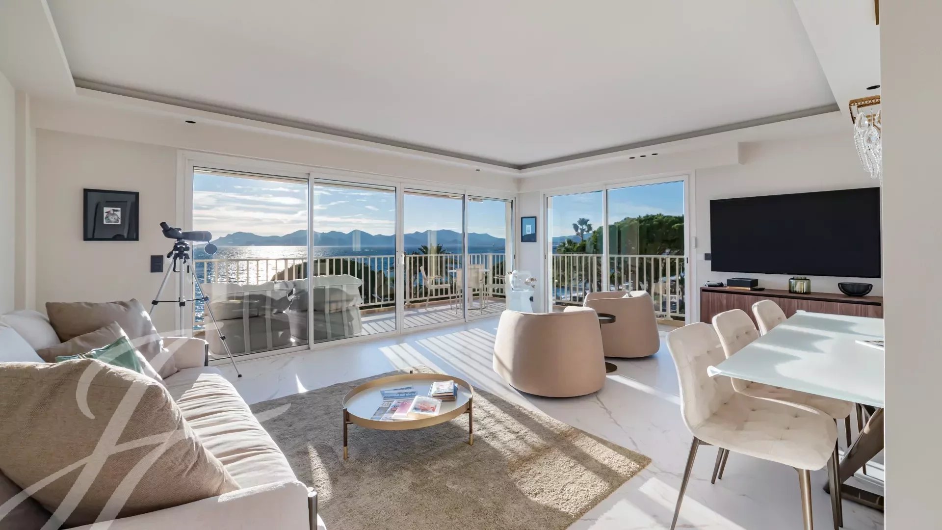 Расположенная на 5-м этаже роскошной охраняемой резиденции, эта роскошно отремонтированная квартира может похвастаться захватывающим видом на Каннский залив.