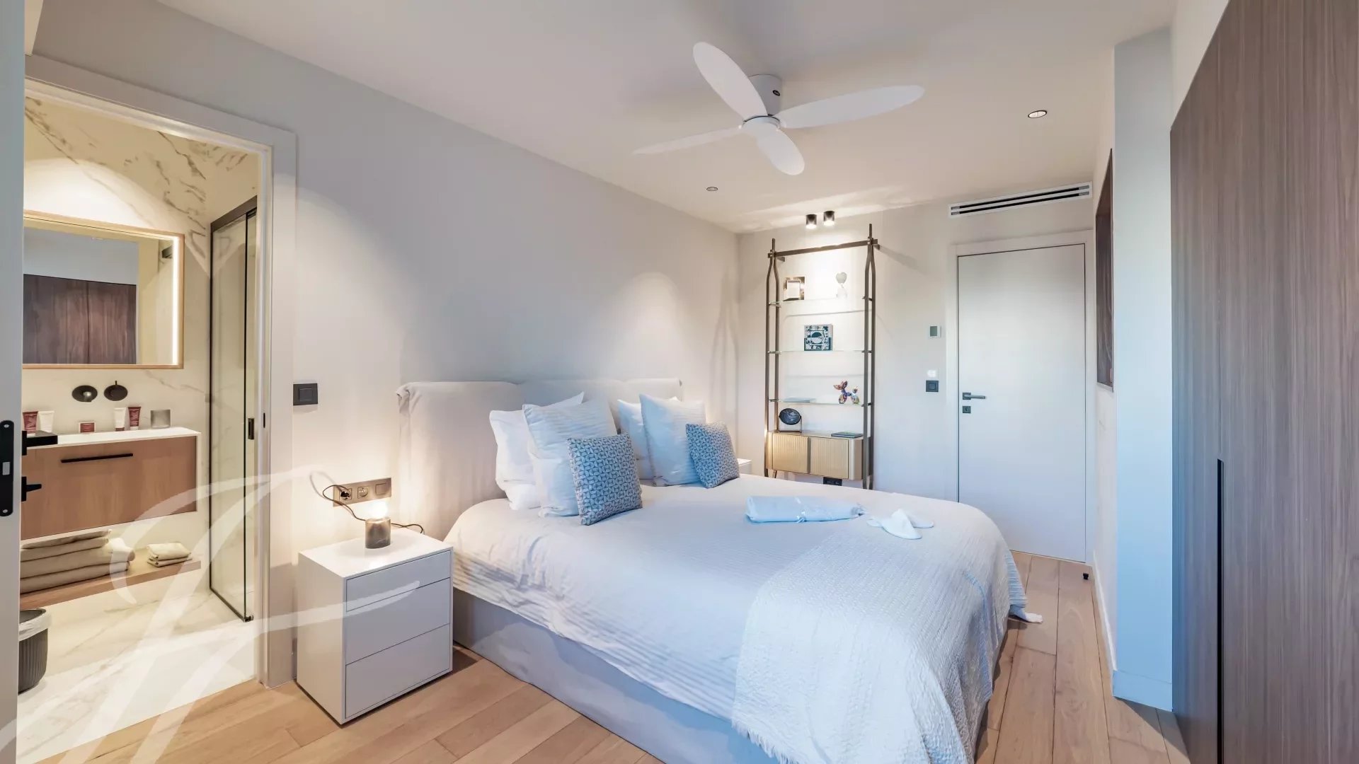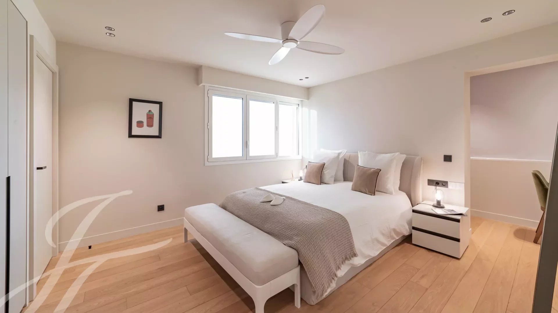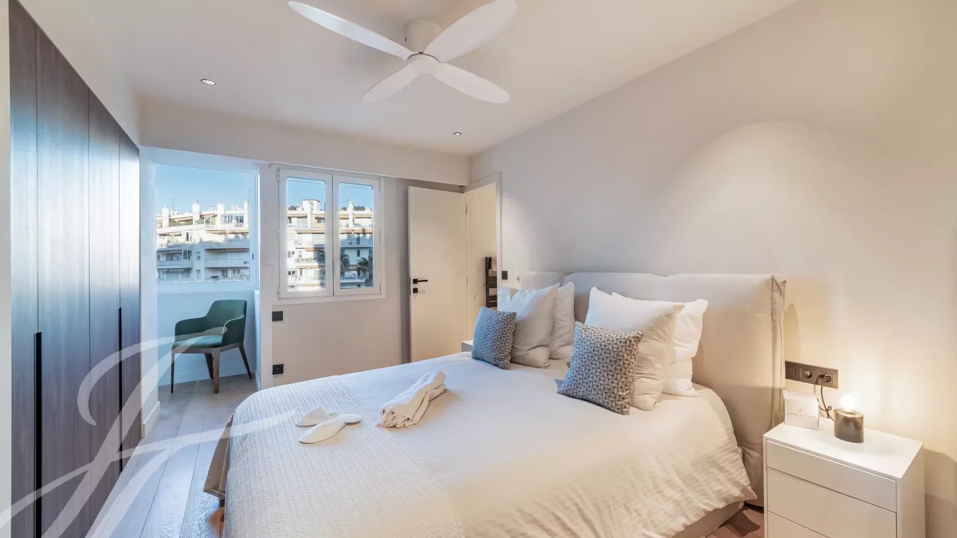 Расположенная на 5-м этаже роскошной охраняемой резиденции, эта роскошно отремонтированная квартира может похвастаться захватывающим видом на Каннский залив.