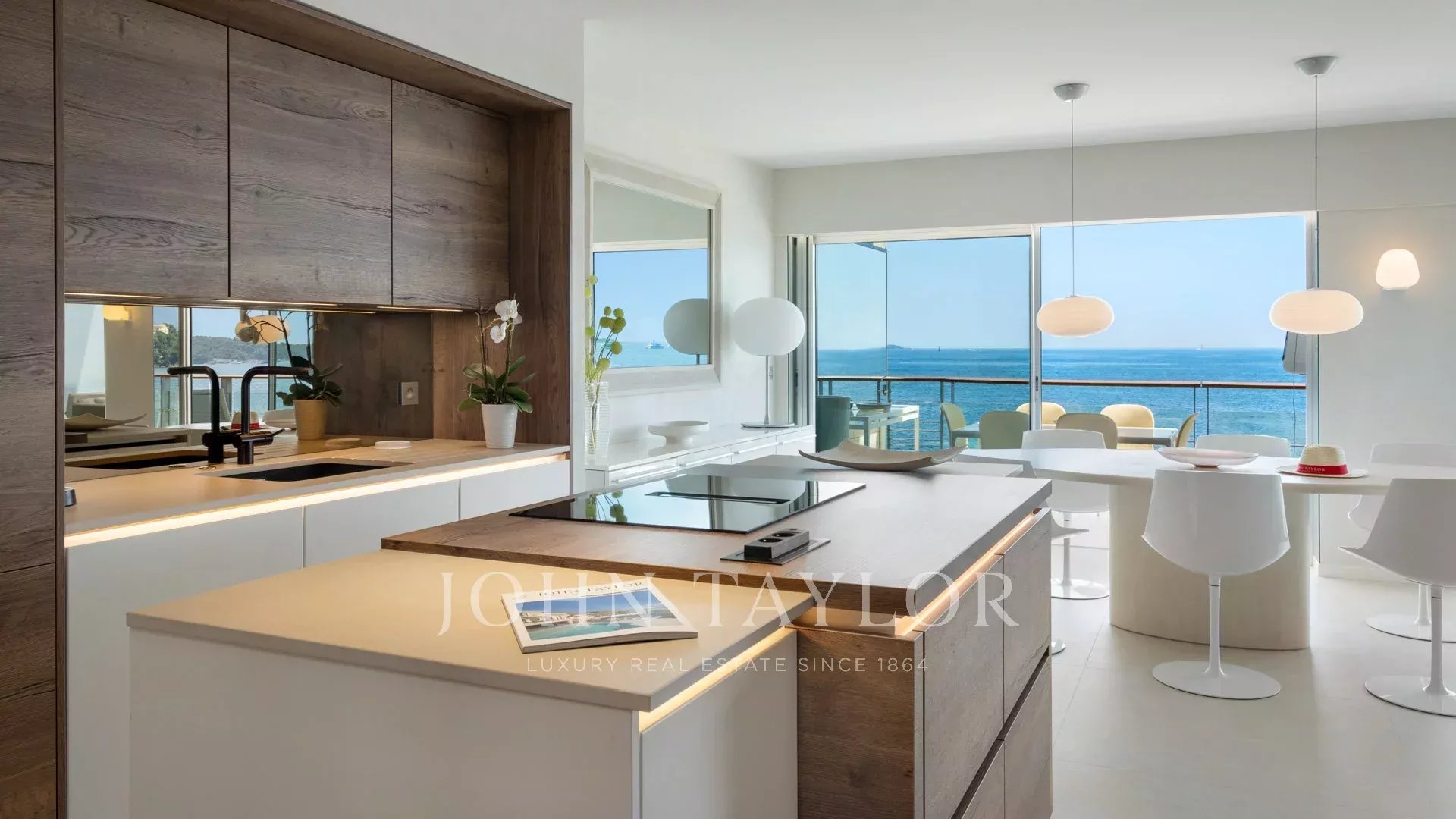 Большая гостиная/столовая с выходом на террасу и с видом на море