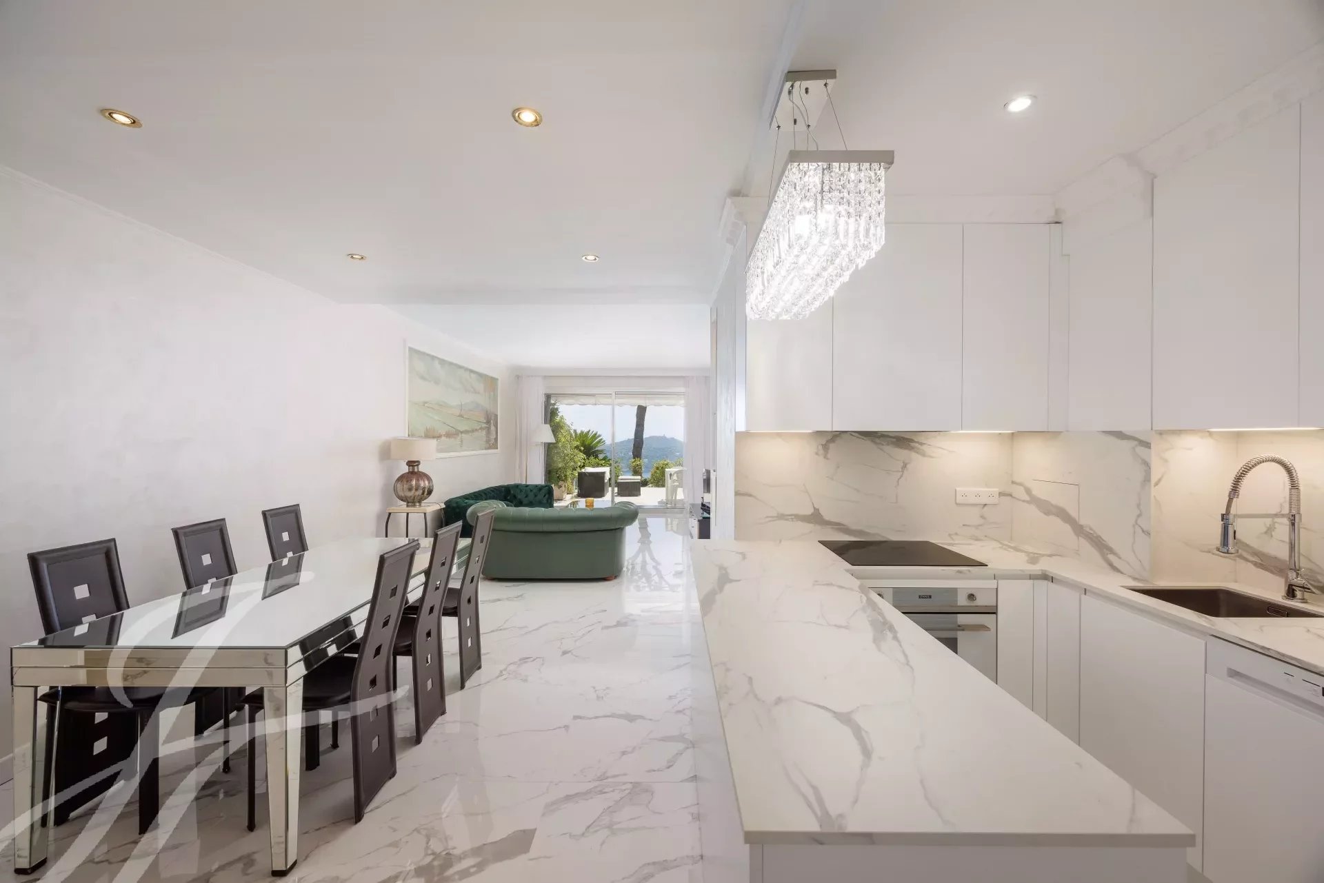 В роскошной резиденции, приятные 3-комнатные апартаменты с террасой площадью 37 м², откуда открывается великолепный вид на море и Кап Ферра, рядом со всеми удобствами.