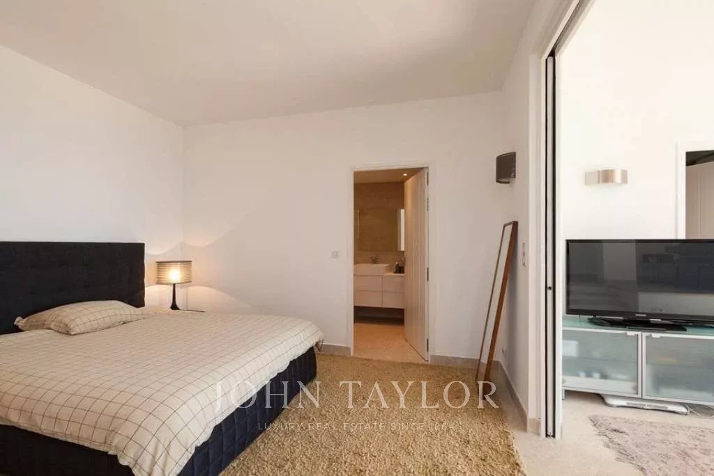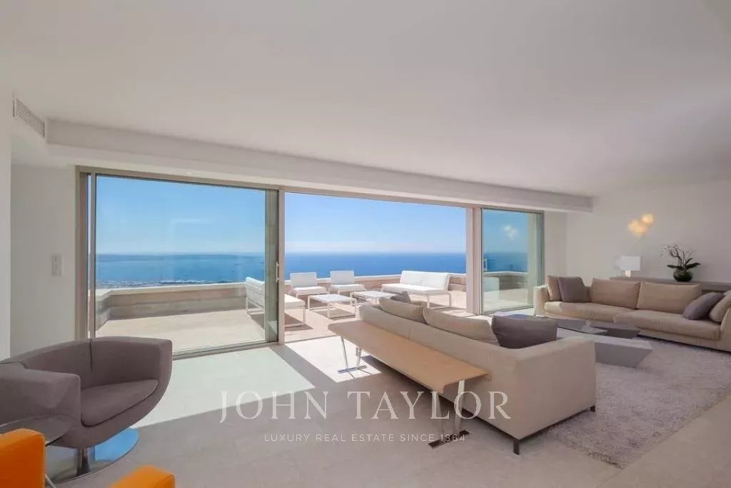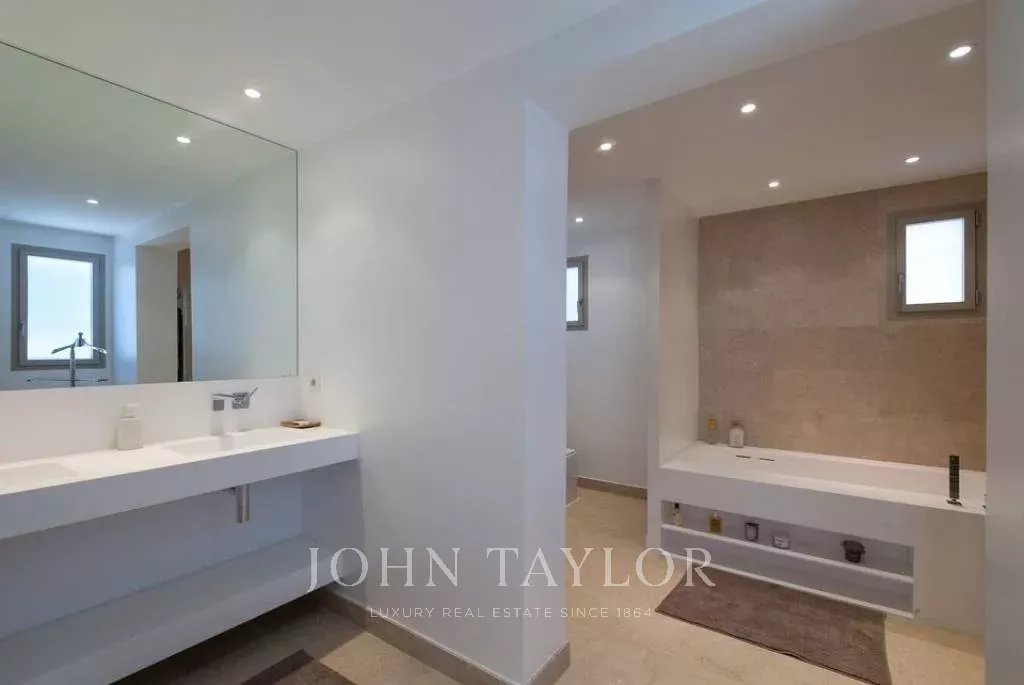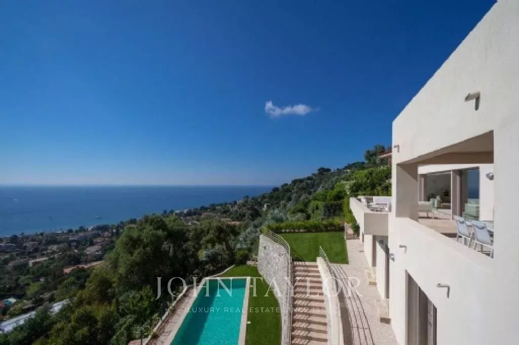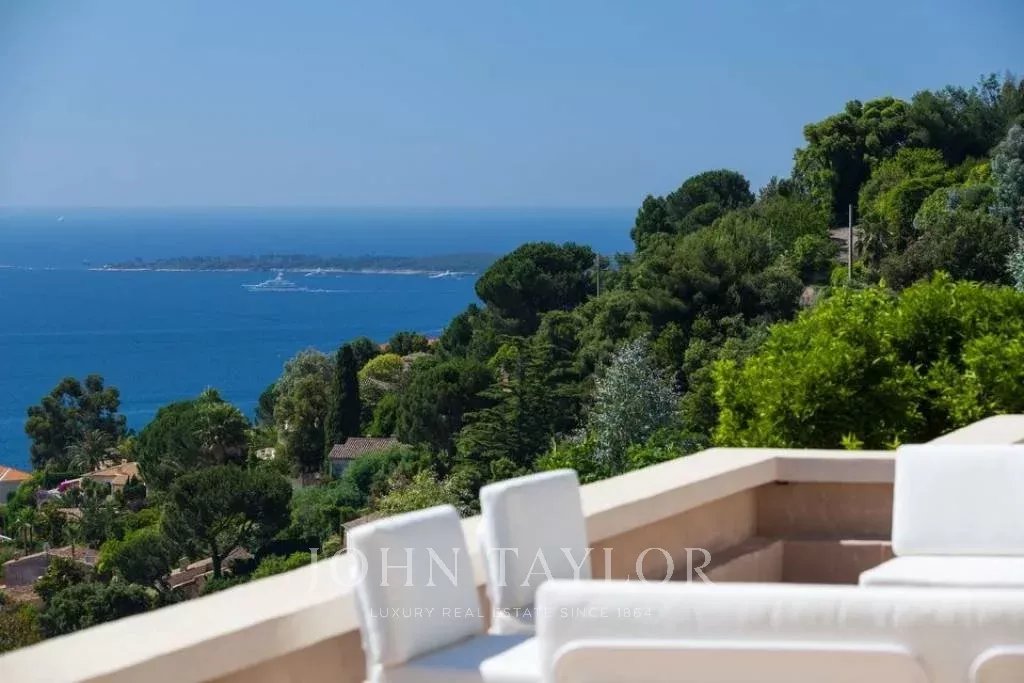 На возвышенности Канн, в самом сердце сада площадью 2 000 м2 с видом на юго-восток, великолепная вилла в современном стиле, полностью отремонтированная и оснащенная кондиционерами, с великолепным видом на море до Кап д'Антиб.