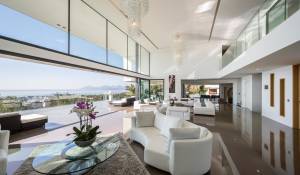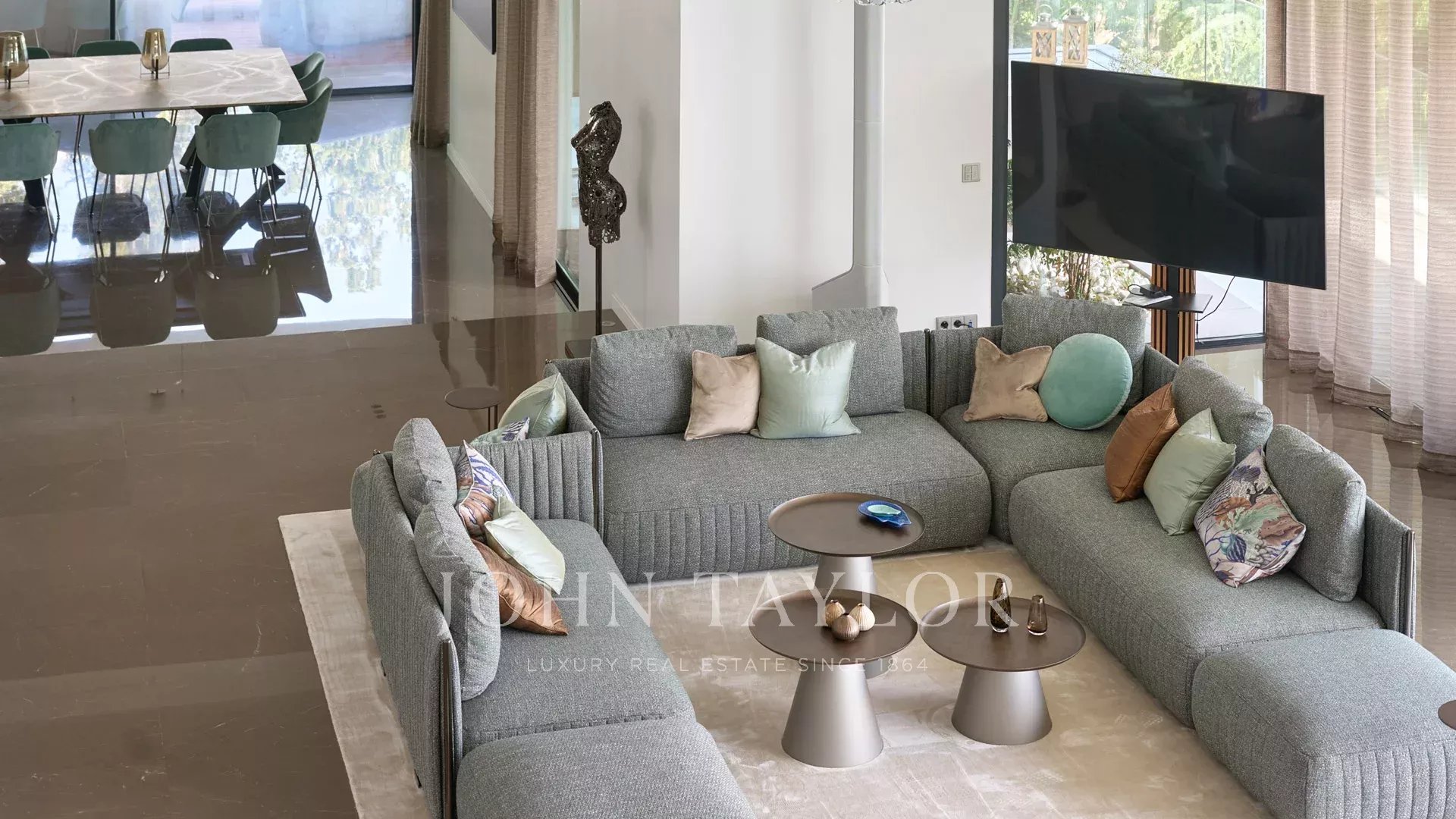 Прихожая, ведущая в просторную гостиную площадью около 250 м², состоящую из гостиной, столовой и кухни открытого плана с выходом на красивые террасы.