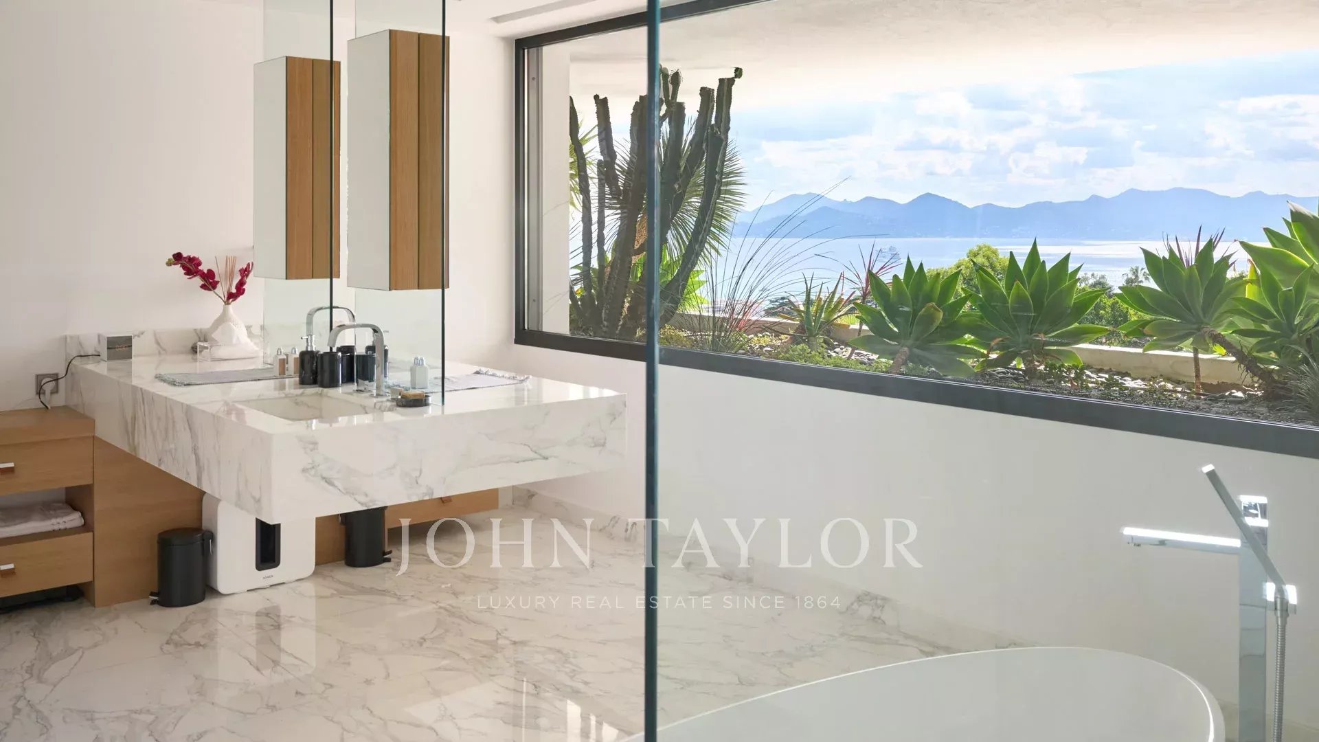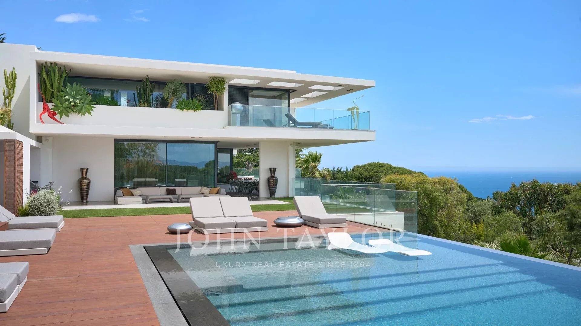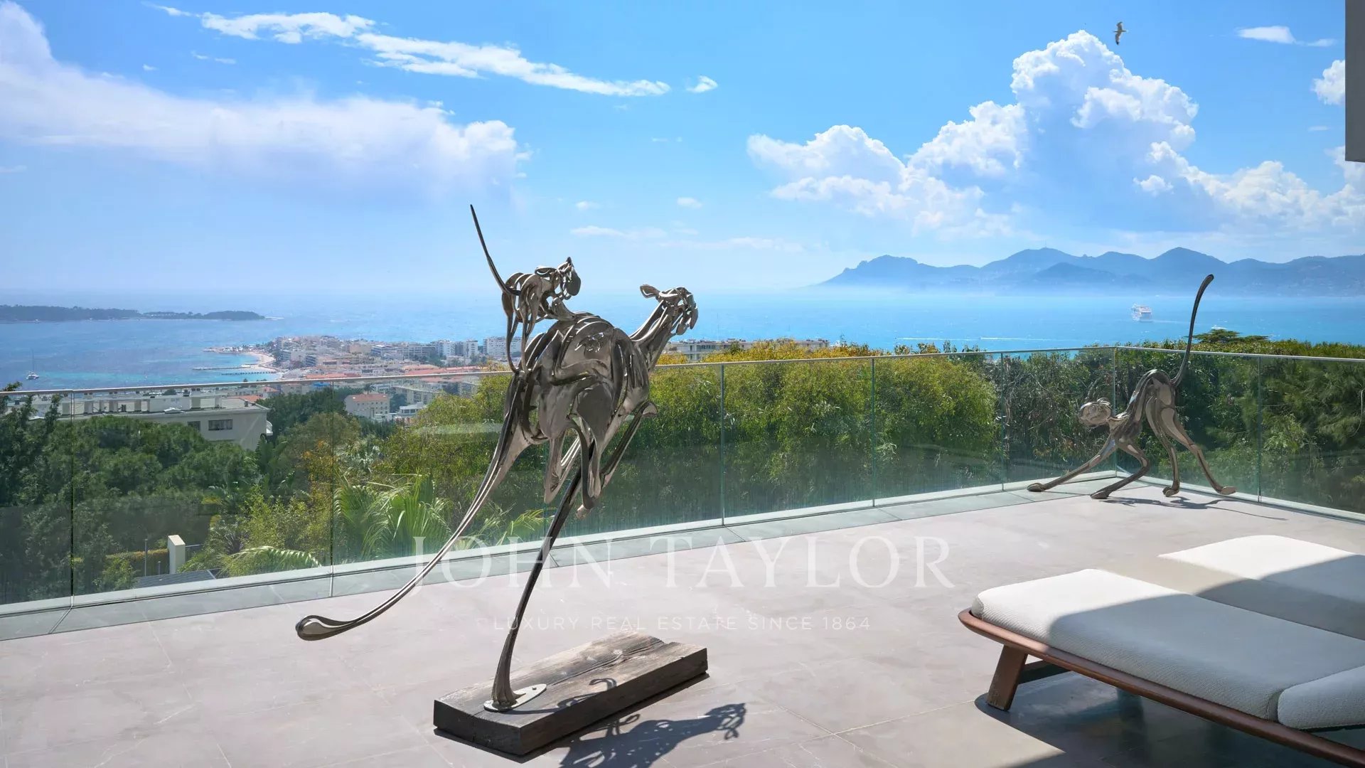 Расположенный в самом престижном районе Ла Калифорни, этот исключительный новый особняк площадью около 1 400 м², расположенный на участке площадью 4 050 м², может похвастаться очаровательным видом на Каннский залив и Леринские острова.