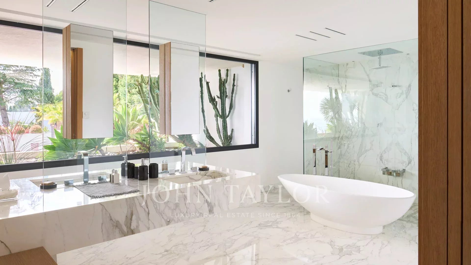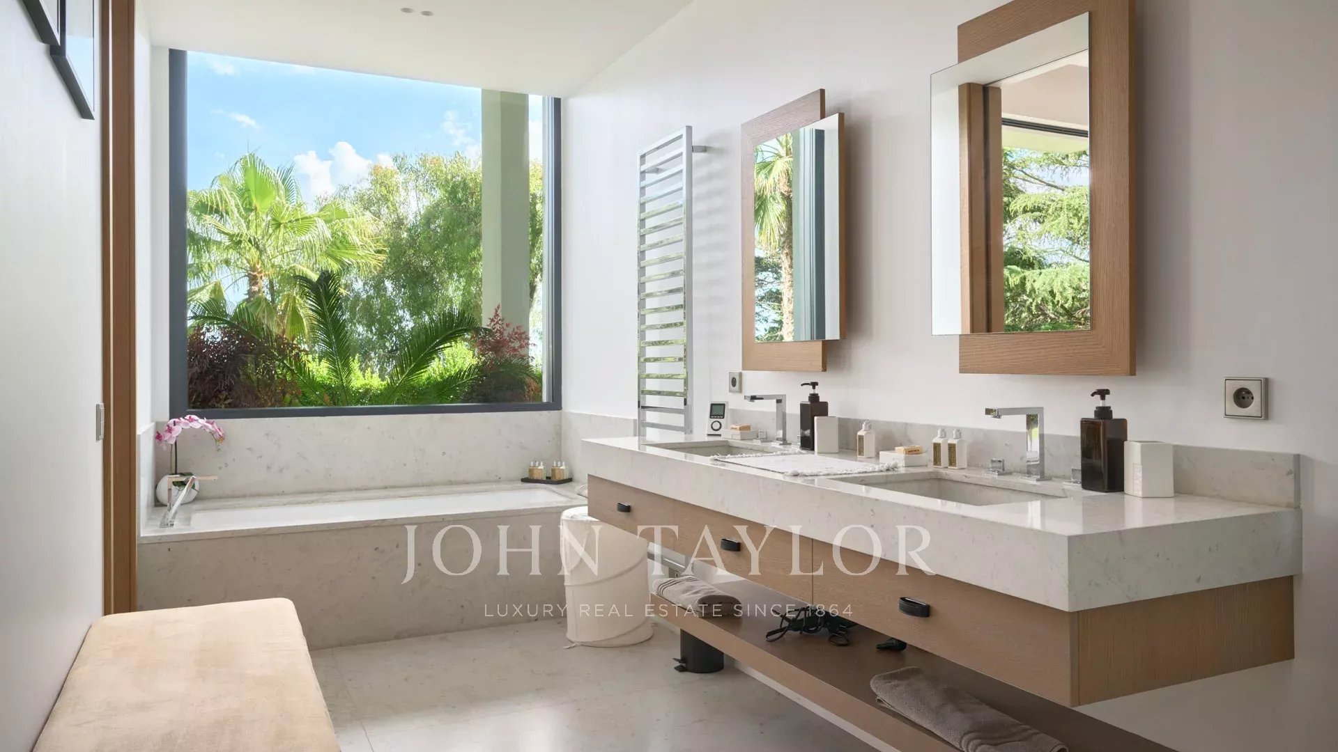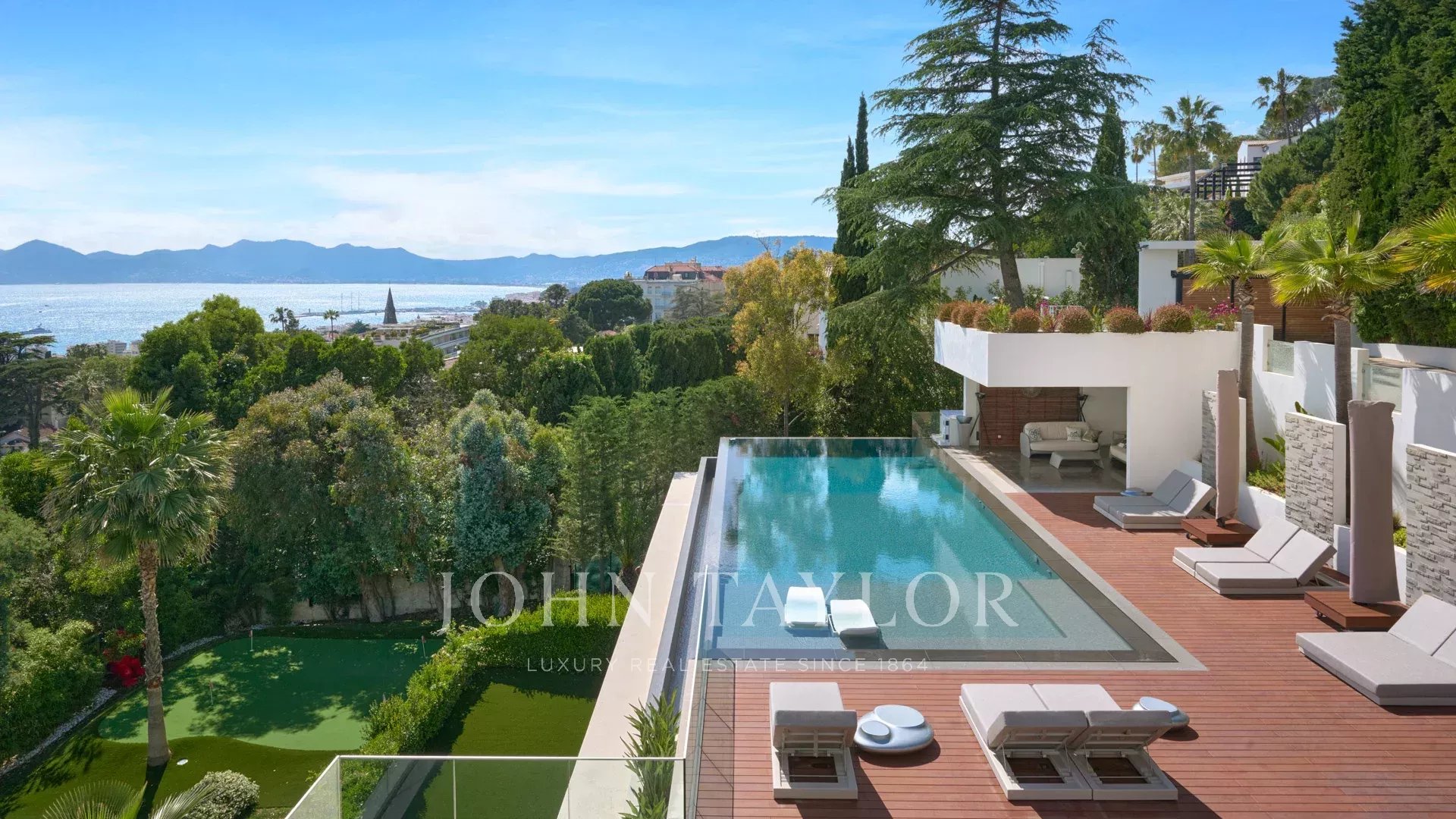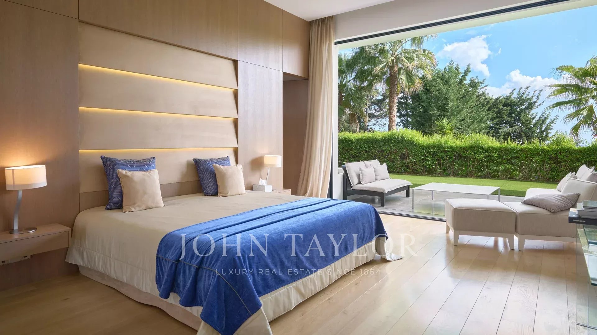 Расположенный в самом престижном районе Ла Калифорни, этот исключительный новый особняк площадью около 1 400 м², расположенный на участке площадью 4 050 м², может похвастаться очаровательным видом на Каннский залив и Леринские острова.