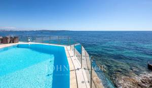 Красивая одноэтажная вилла "на воде" площадью более 300 м2, полностью и недавно отремонтированная и заново оформленная, с прямым частным выходом к морю. Панорамные виды на Леринские острова и Кап д'Антиб.