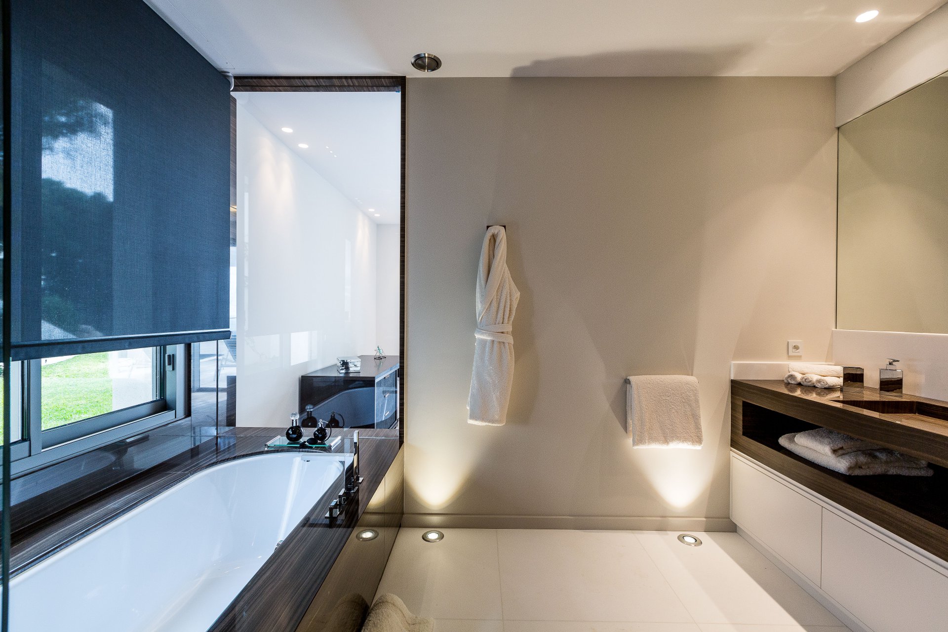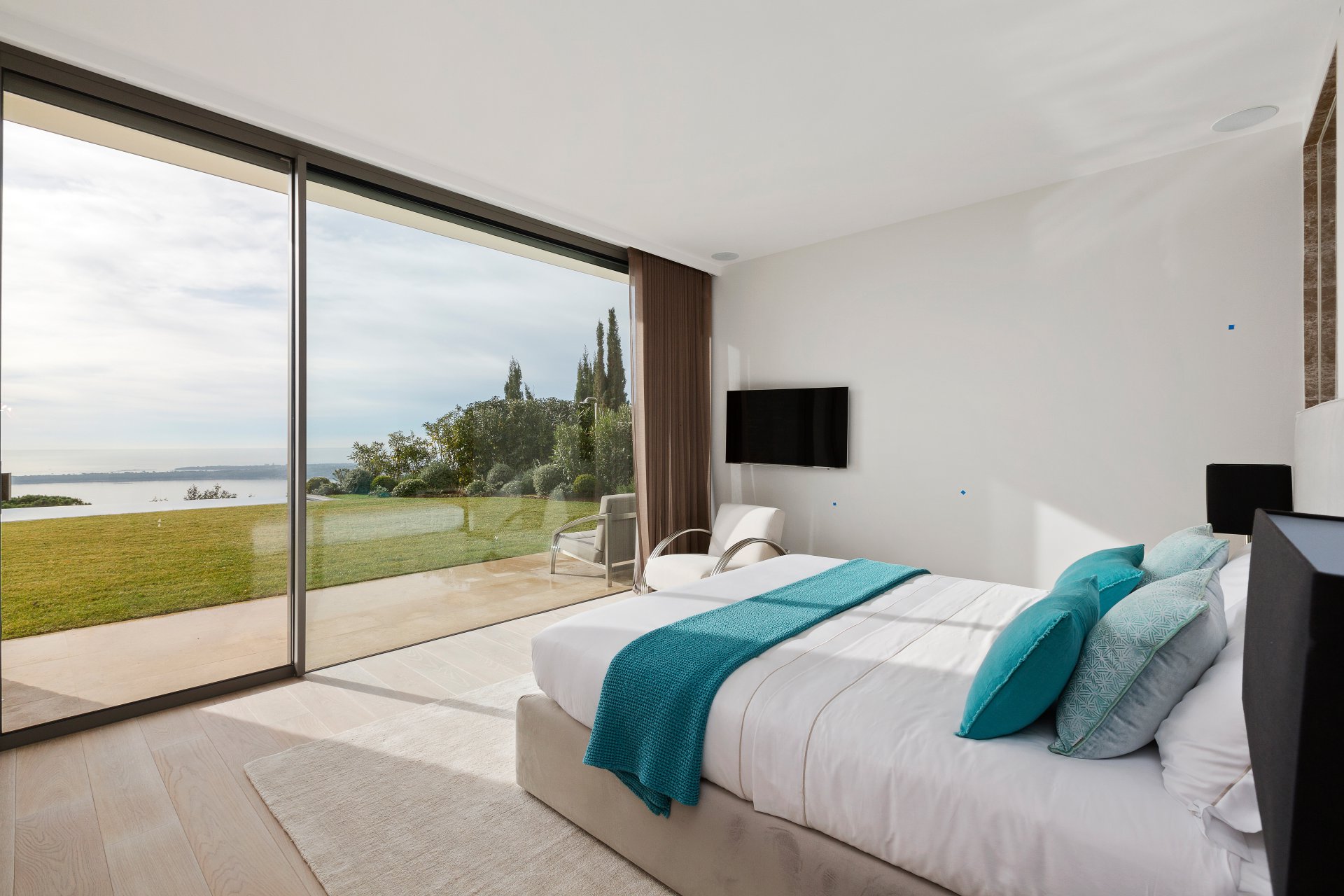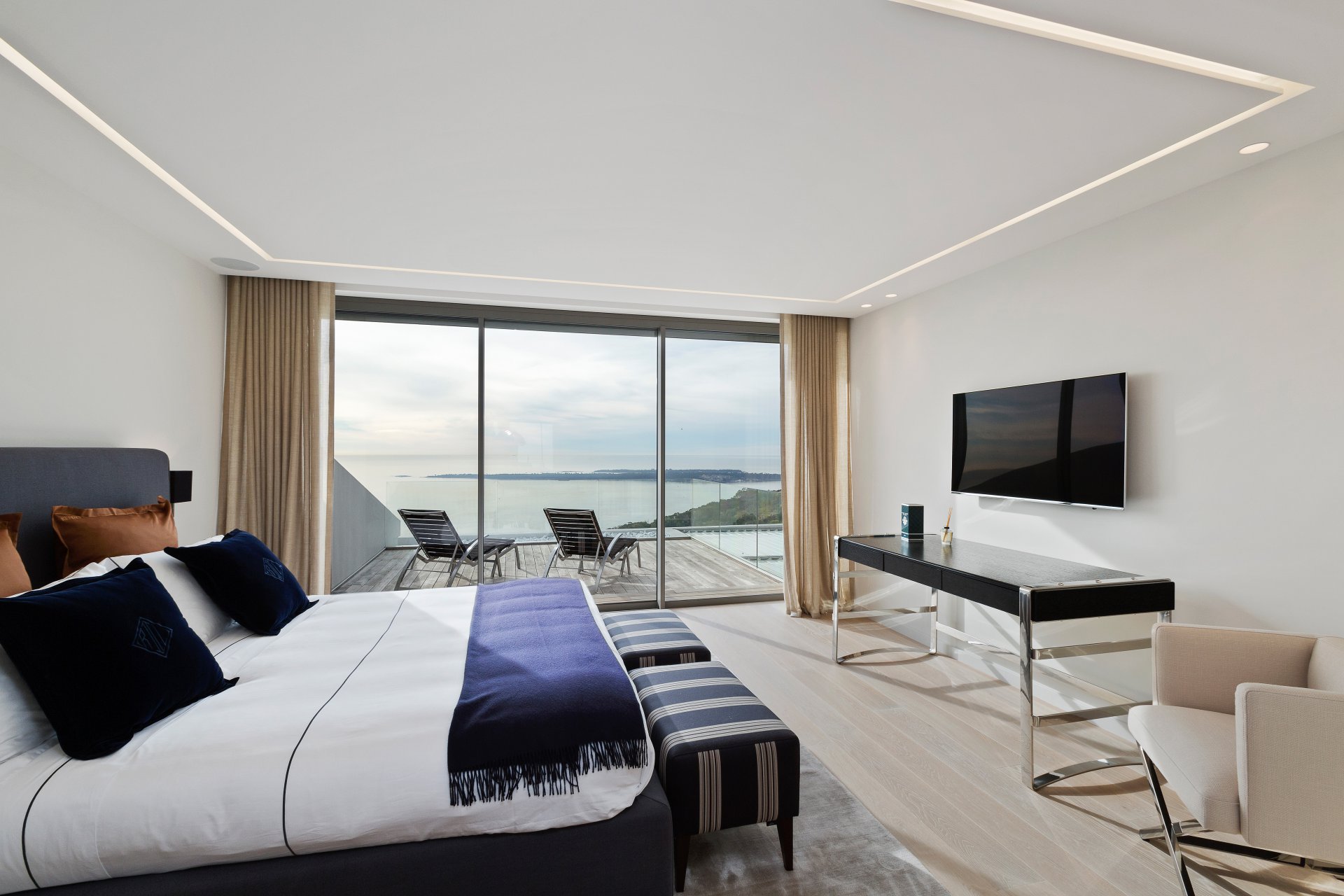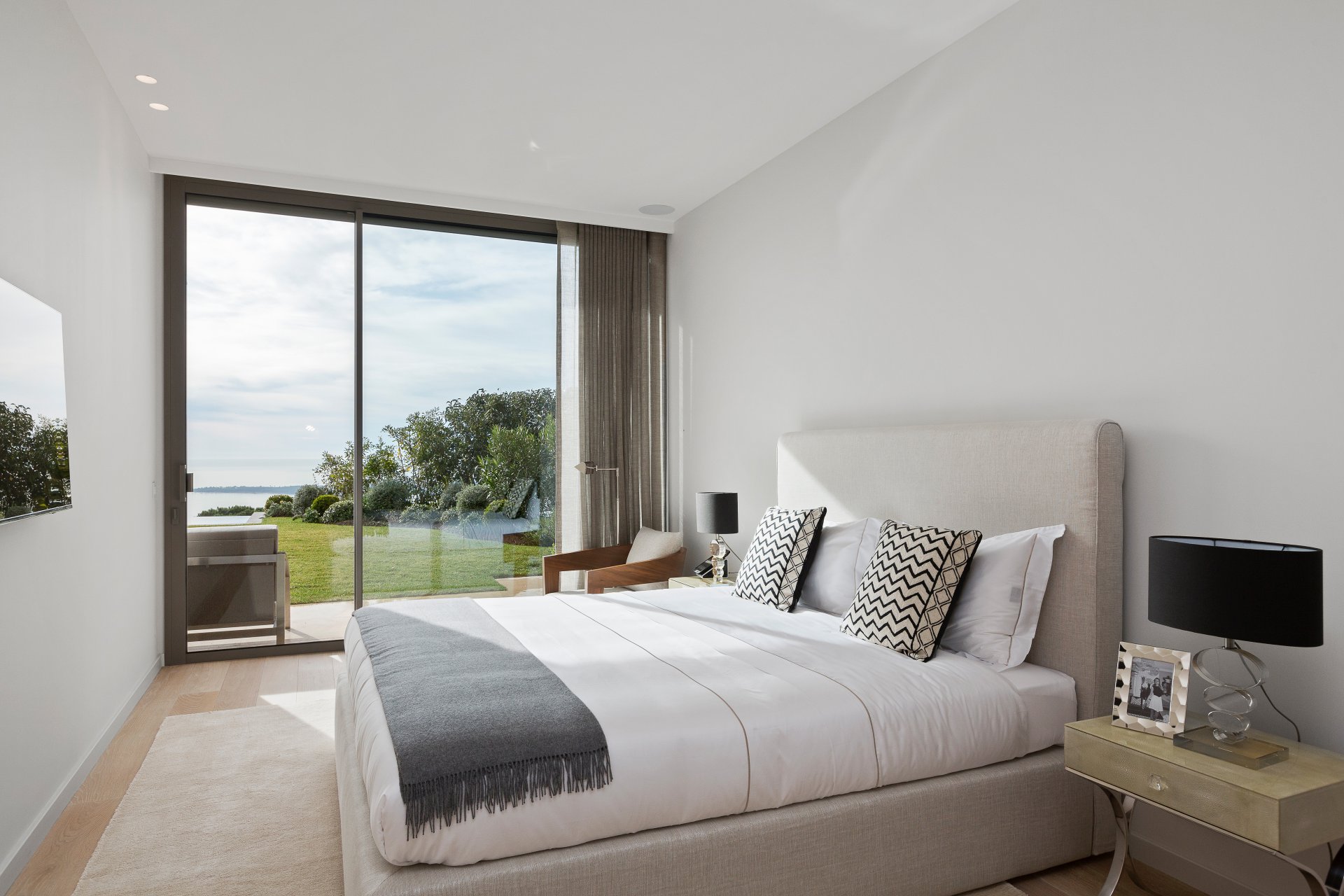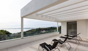 На возвышенности Канн, в доминирующем положении с панорамным видом на море, Леринские острова, Кап д'Антиб и массив Эстерель, новая красивая вилла в современном стиле с кондиционером и высококачественным оборудованием, площадью около 630 м² на прекрасном участке площадью 2 000 м².