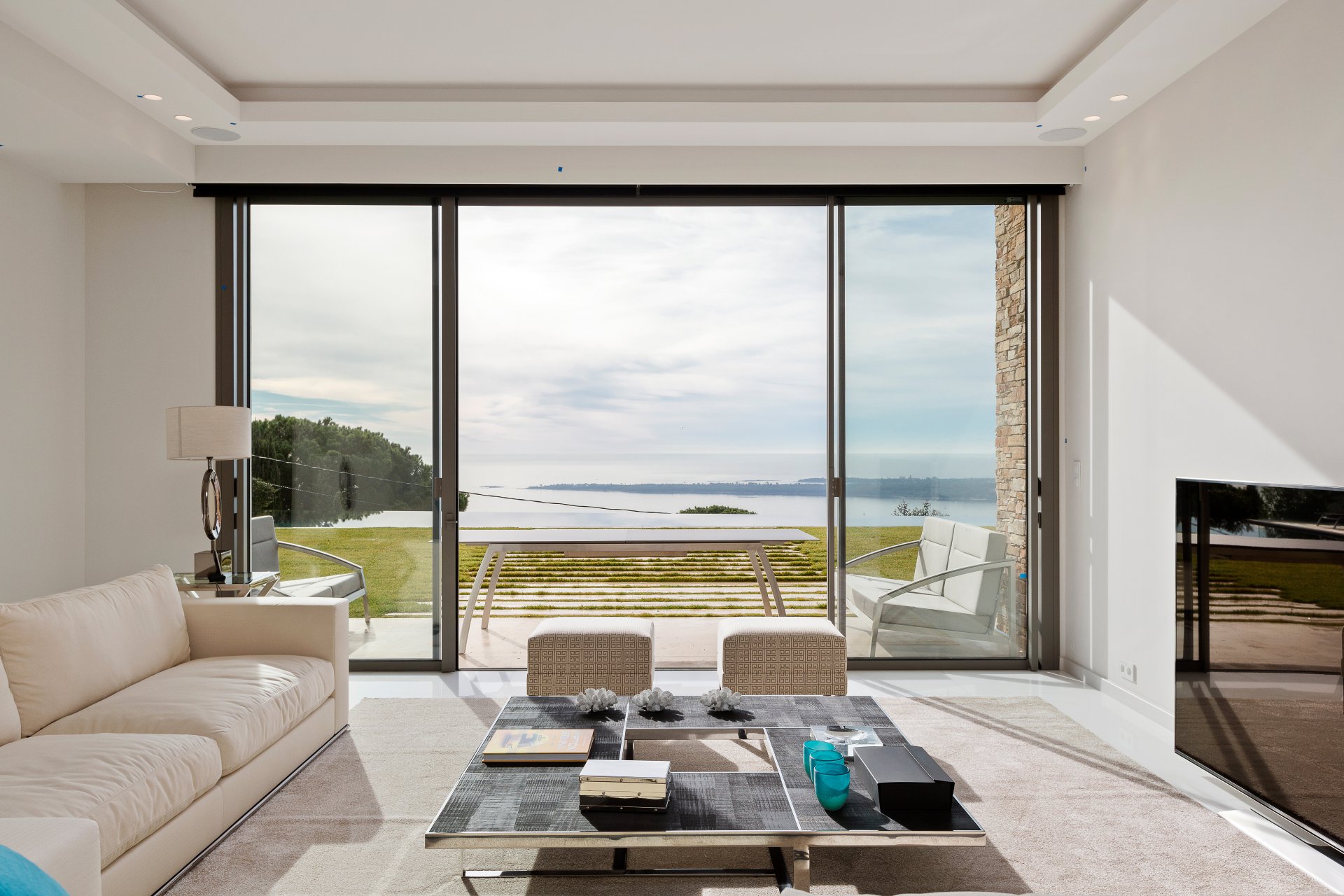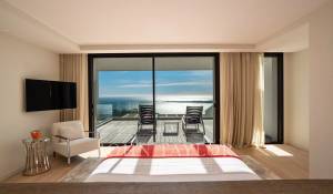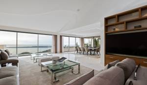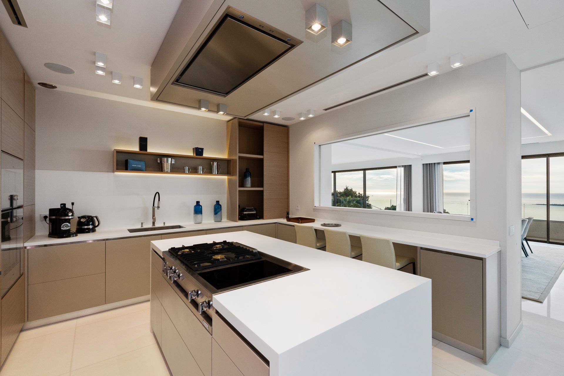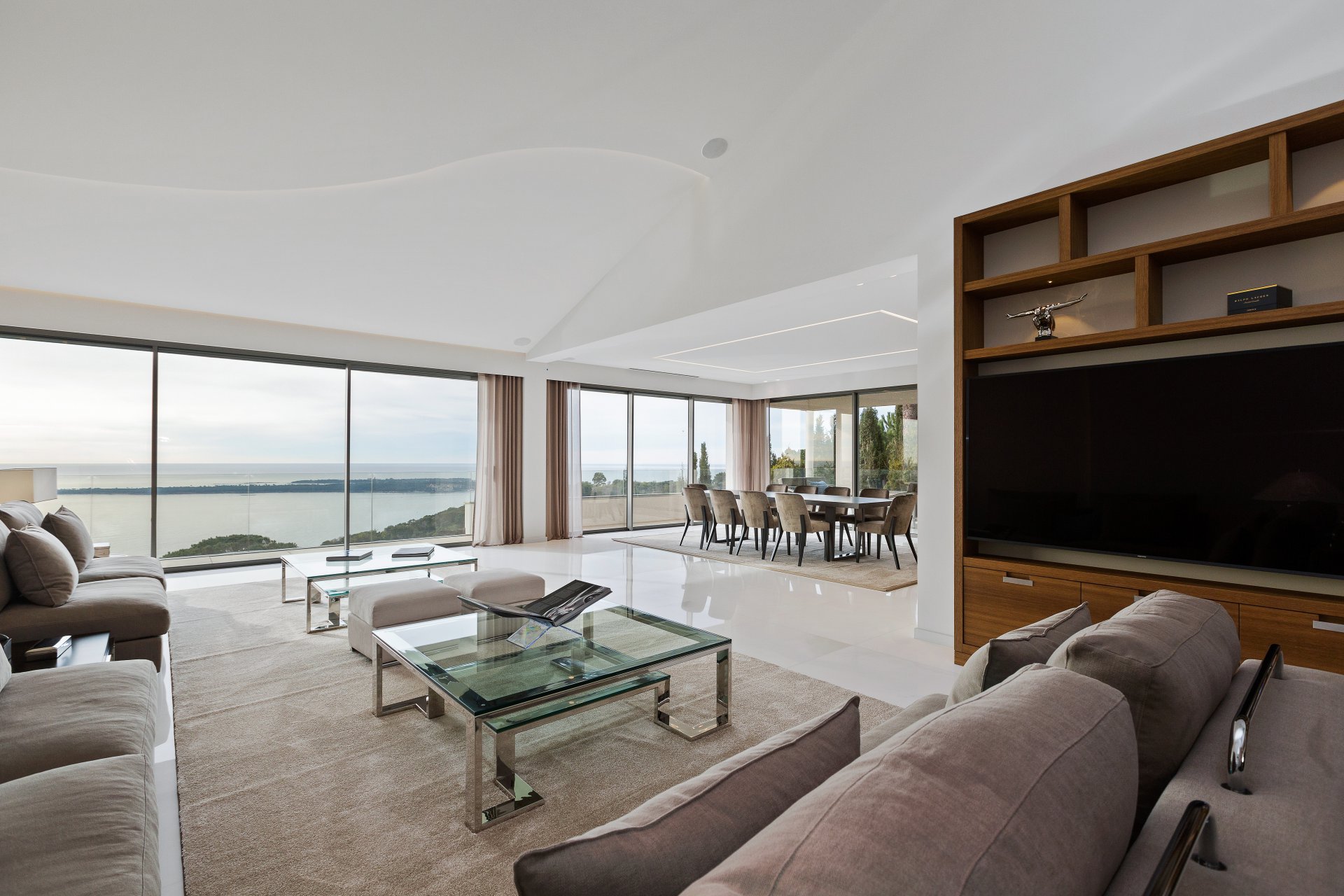 Большая, привлекательная гостиная с оборудованной кухней, столовой и просторной гостиной, выходящей на большие террасы с видом на море