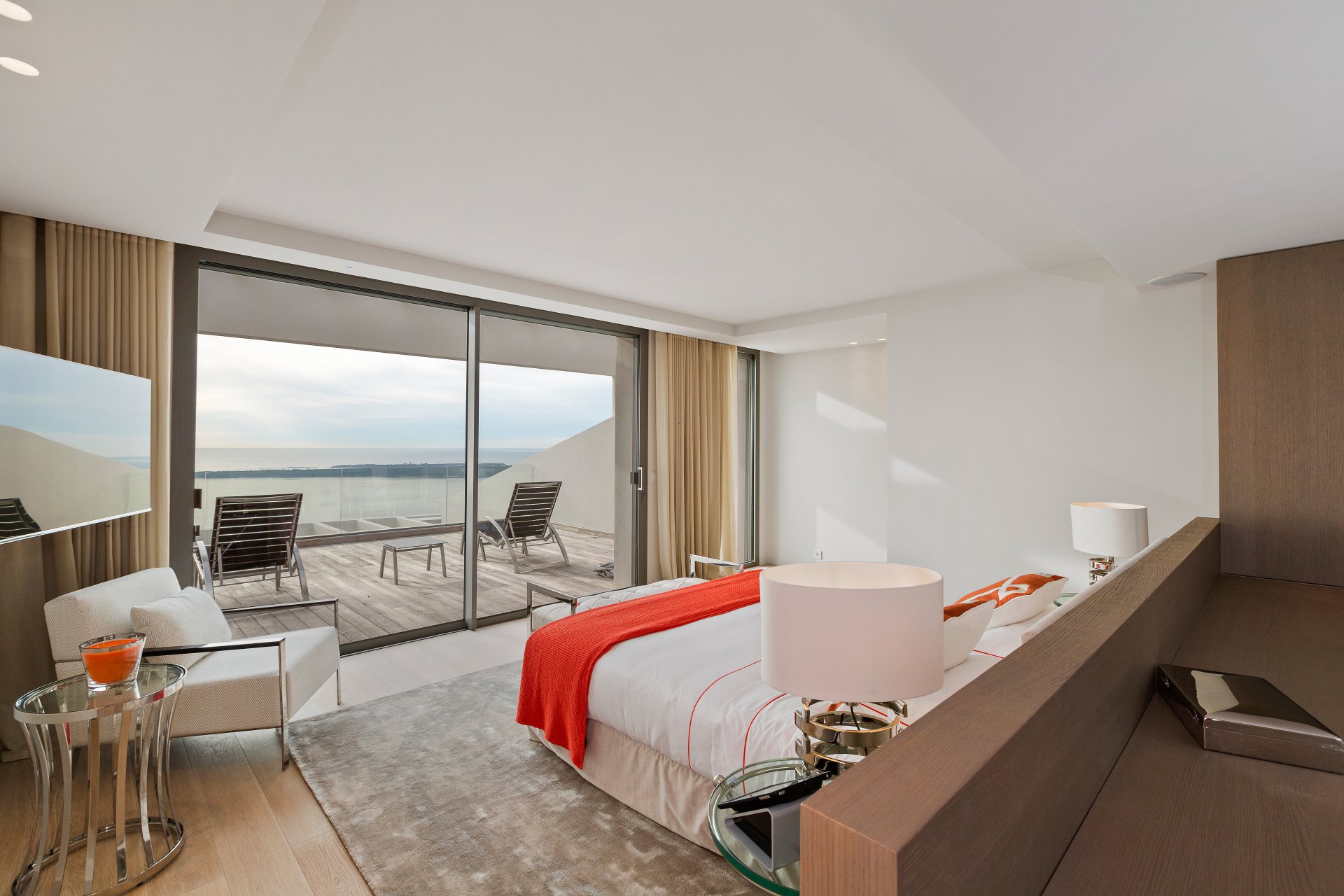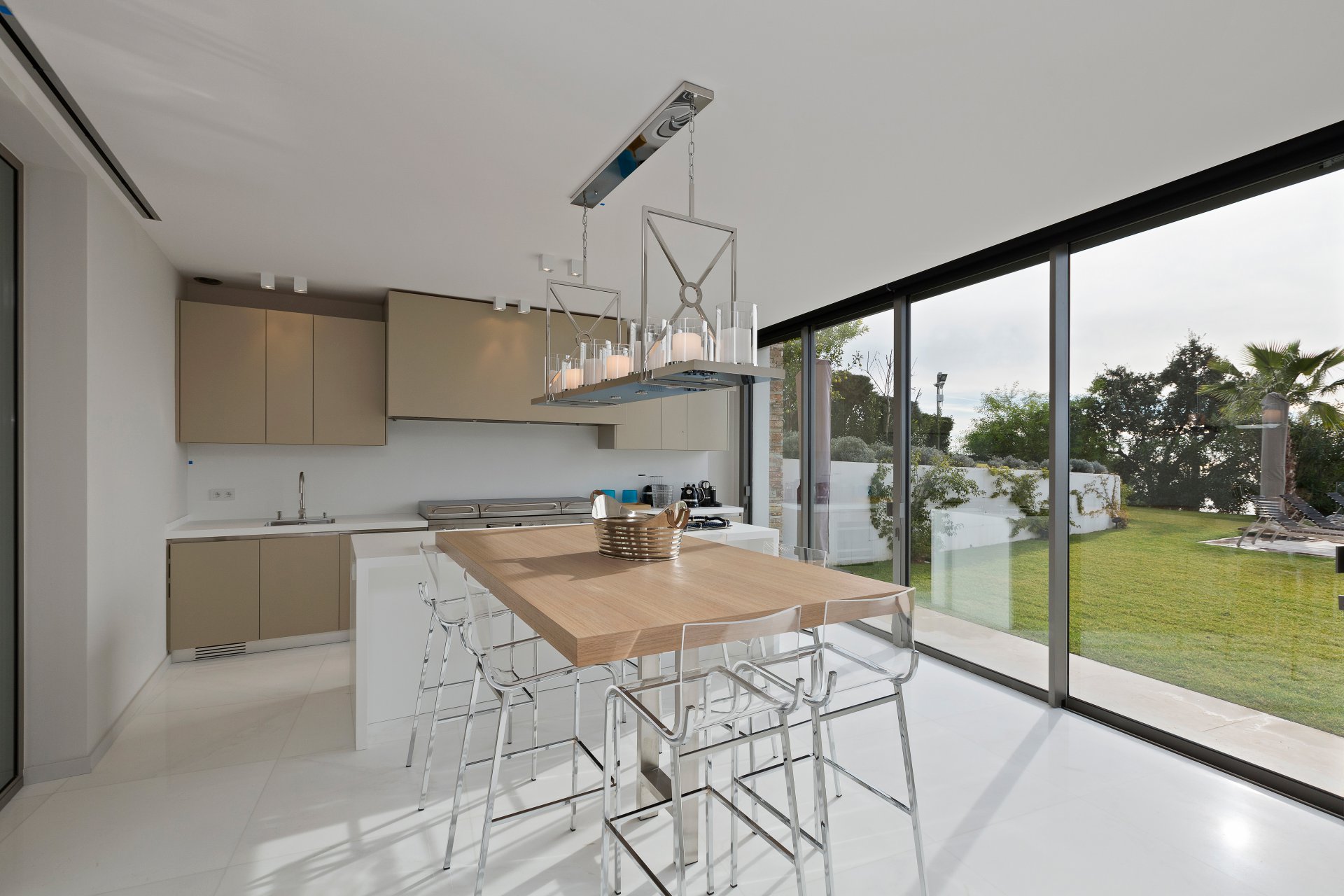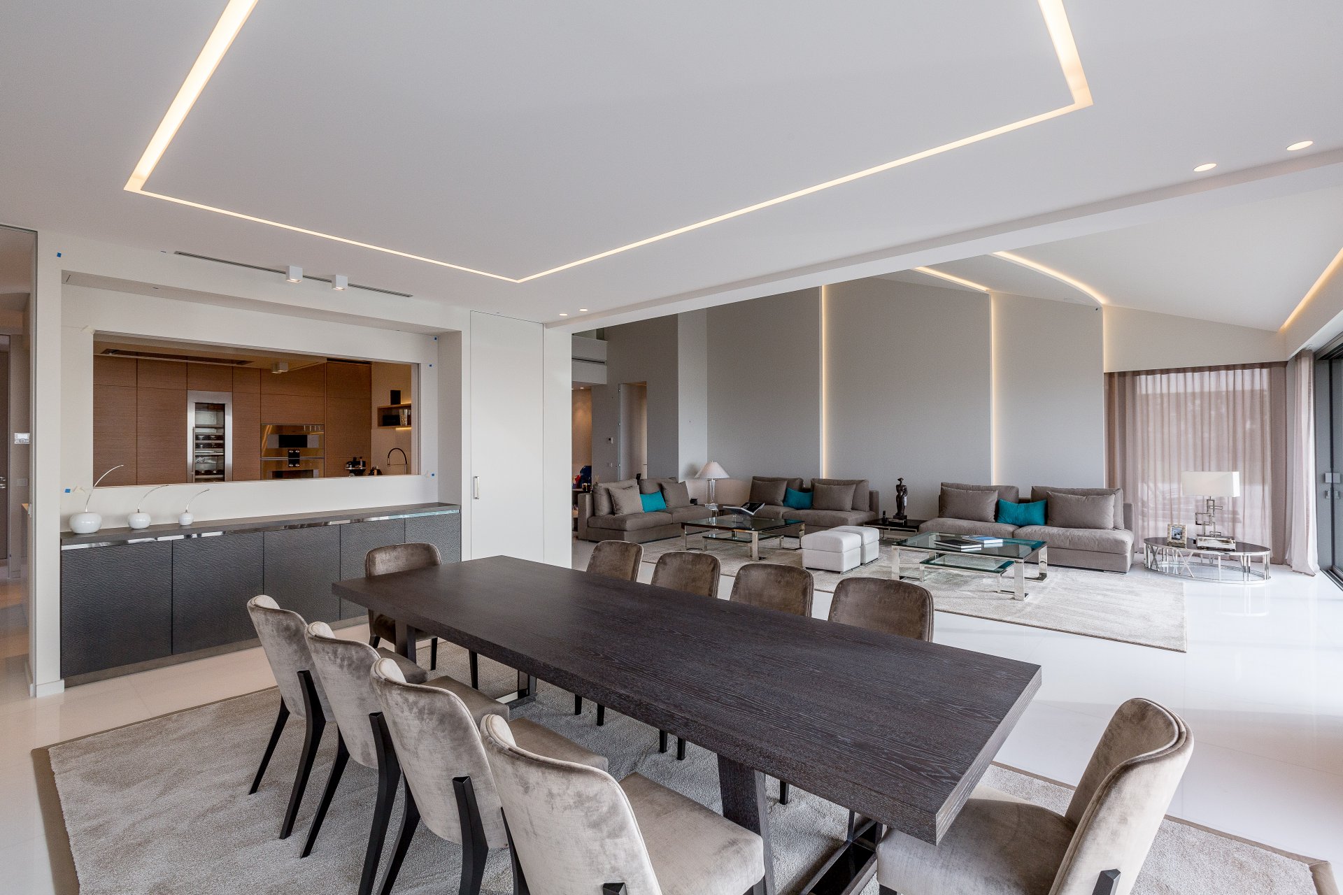 Большая, привлекательная гостиная с оборудованной кухней, столовой и просторной гостиной, выходящей на большие террасы с видом на море