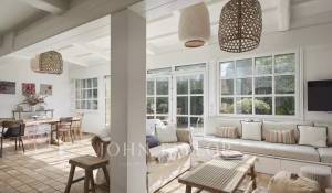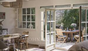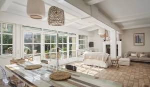 Большая, полностью оборудованная кухня, выходящая в кондиционированную гостиную с камином и обеденной зоной, выходящую в сад и на террасу (летняя столовая).