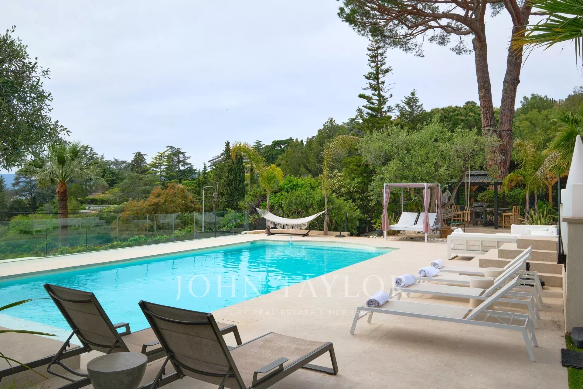 Район "Круа де Гард", юго-западная сторона, красивая нео-провансальская вилла, полностью отремонтированная, с кондиционером, с великолепным видом на море и массив Эстерель.