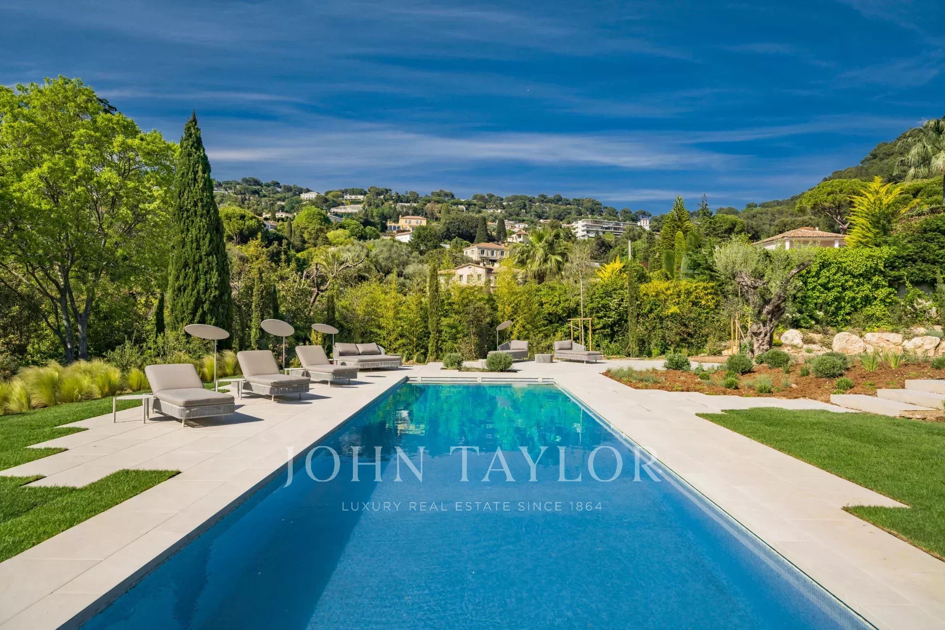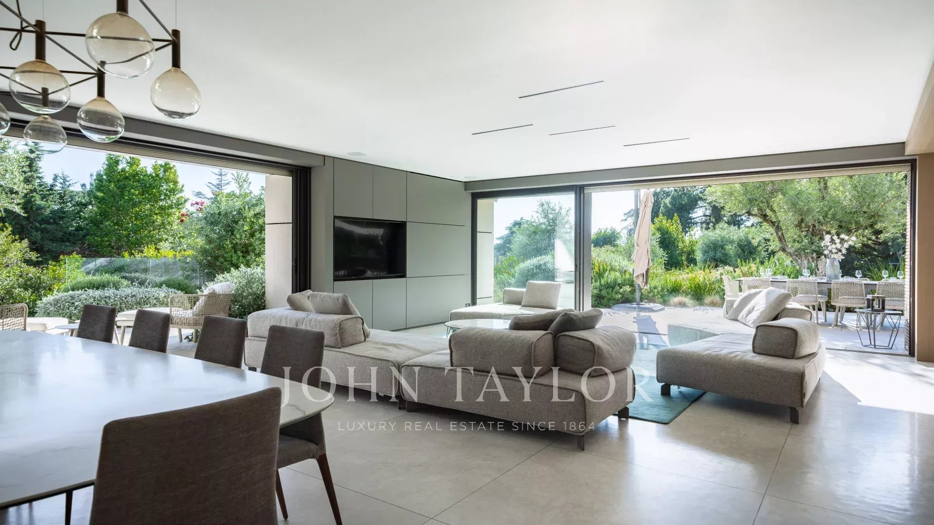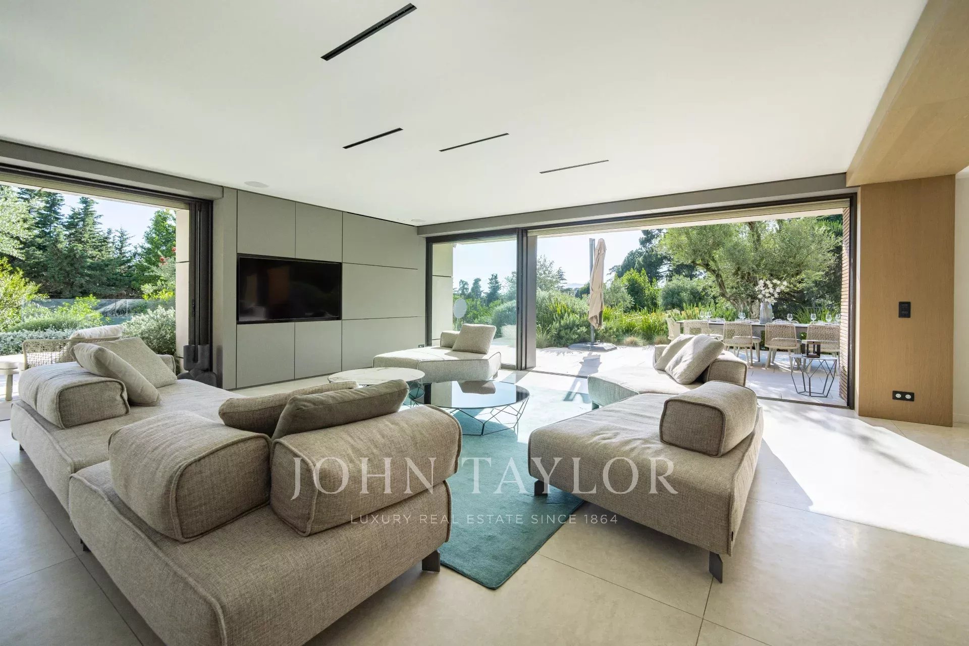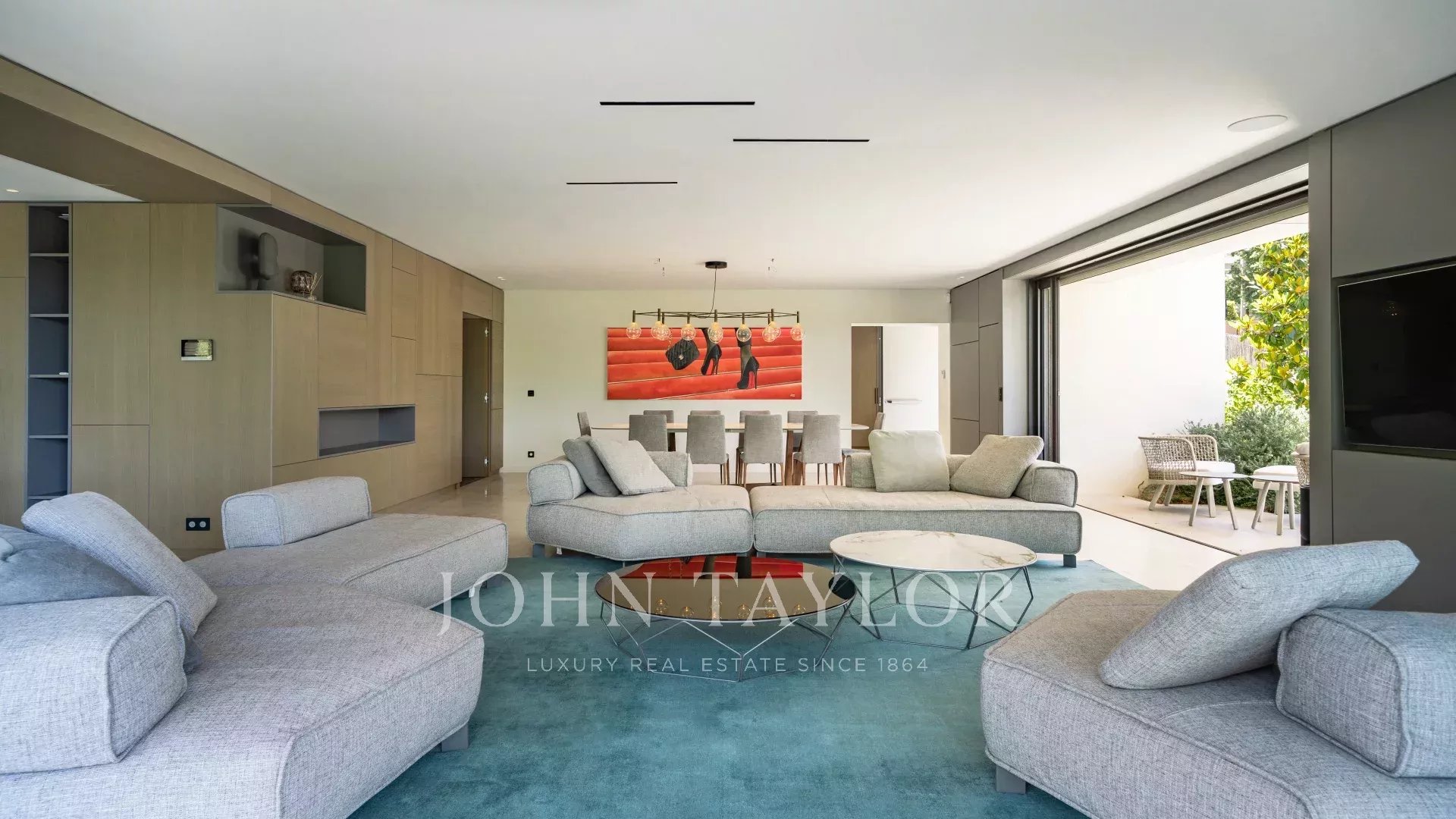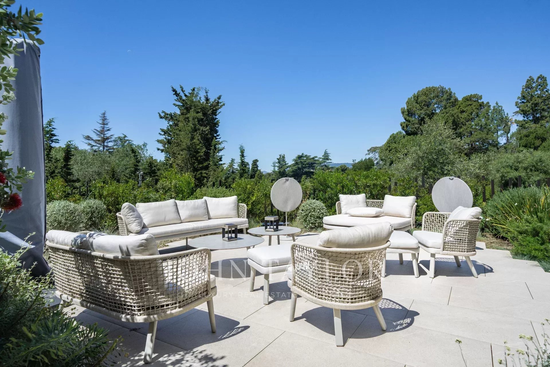 В тихом месте, недалеко от центра города, в районе "Basse Californie", новая красивая современная вилла площадью 420 м2 на участке 2500 м2.