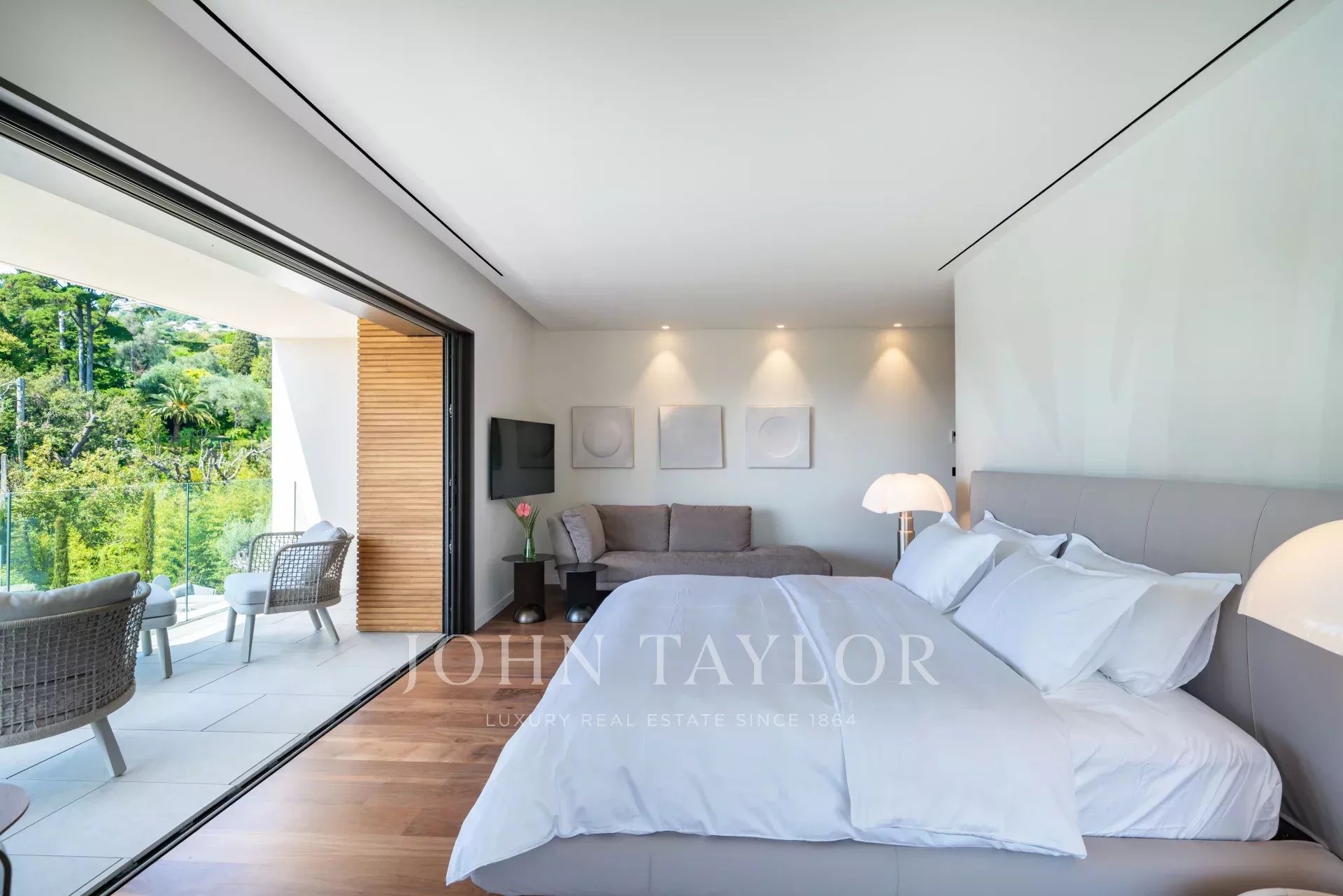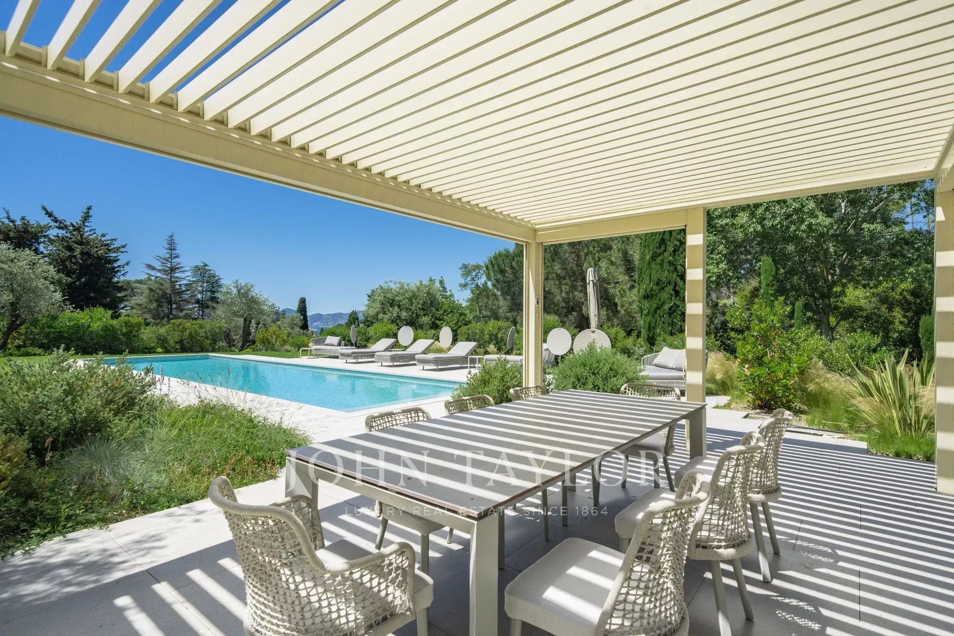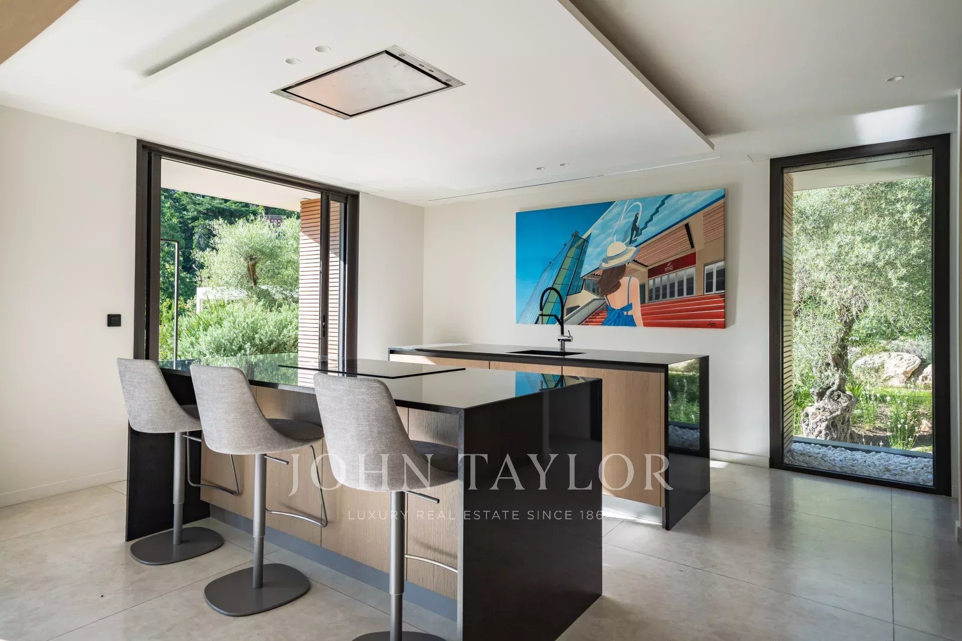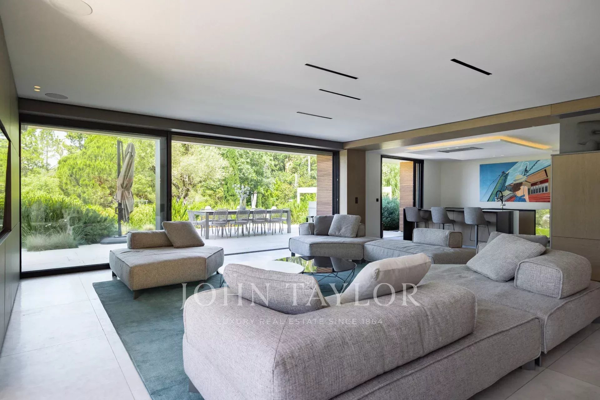 В тихом месте, недалеко от центра города, в районе "Basse Californie", новая красивая современная вилла площадью 420 м2 на участке 2500 м2.