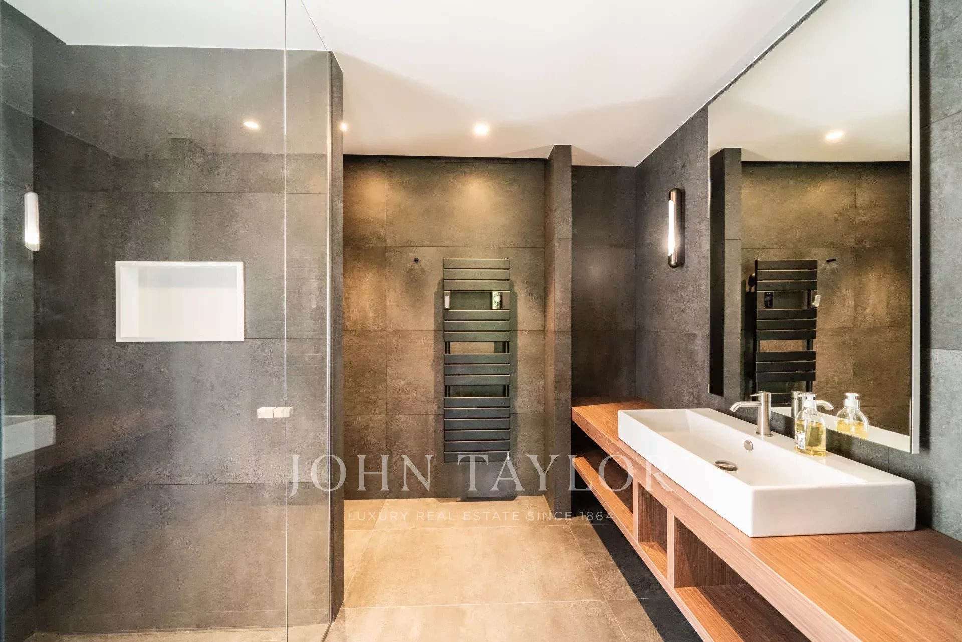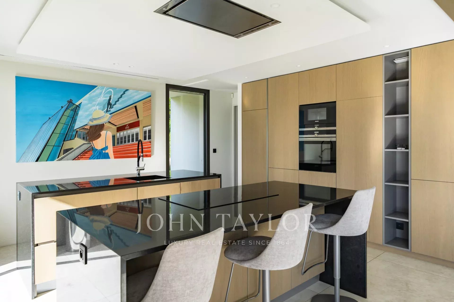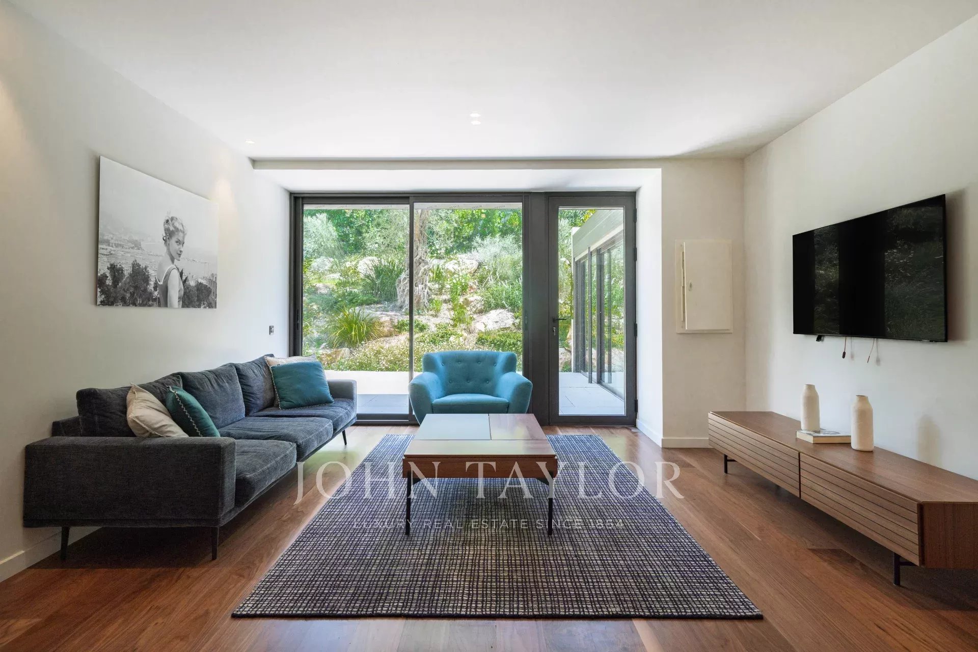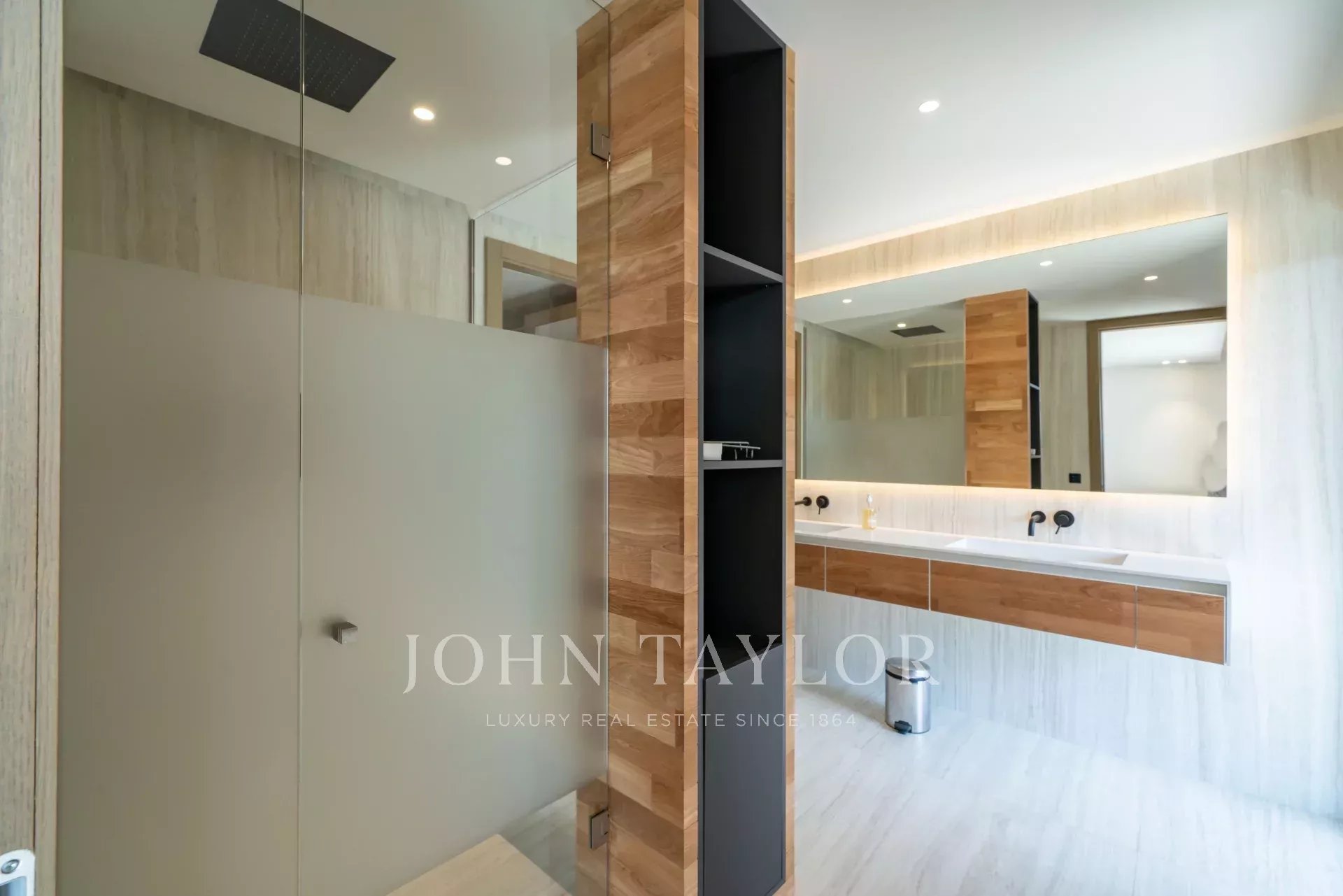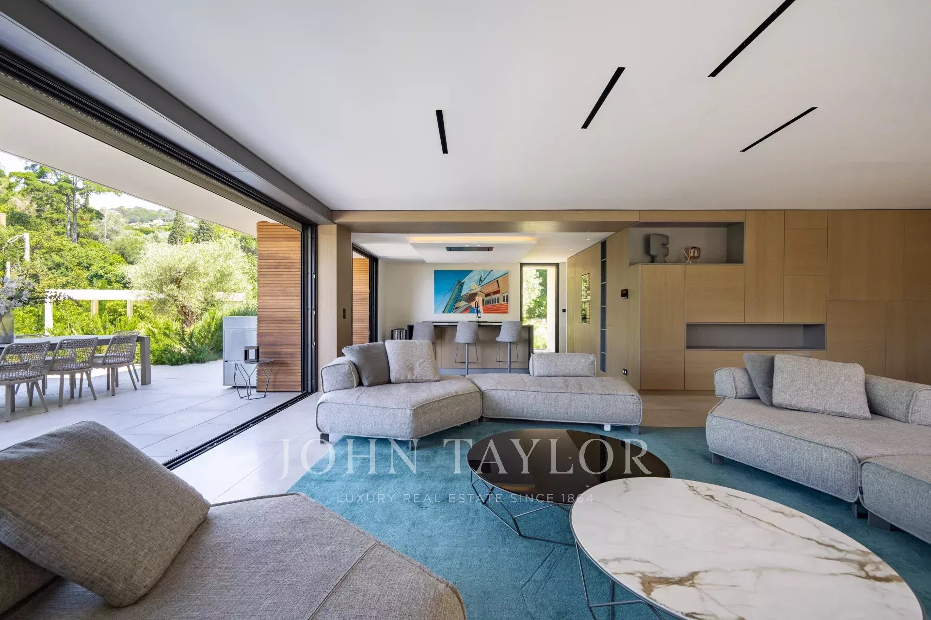 В тихом месте, недалеко от центра города, в районе "Basse Californie", новая красивая современная вилла площадью 420 м2 на участке 2500 м2.