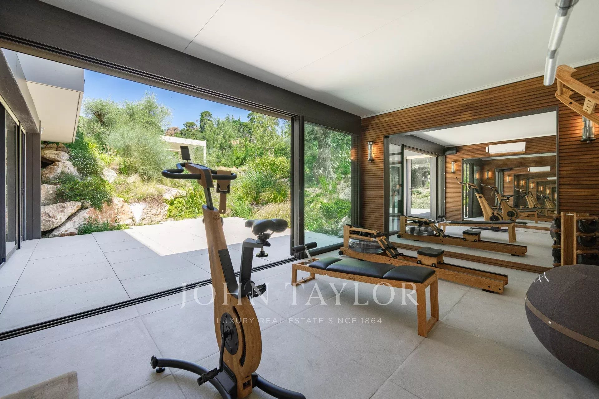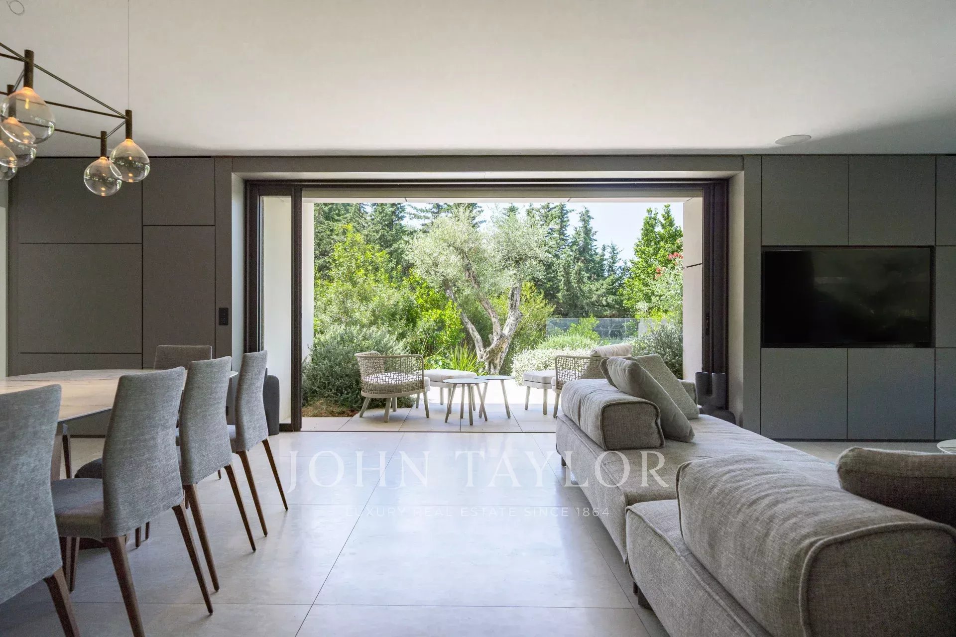 Вход, ведущий в приемную, выходящую на террасу, в сад и к бассейну.