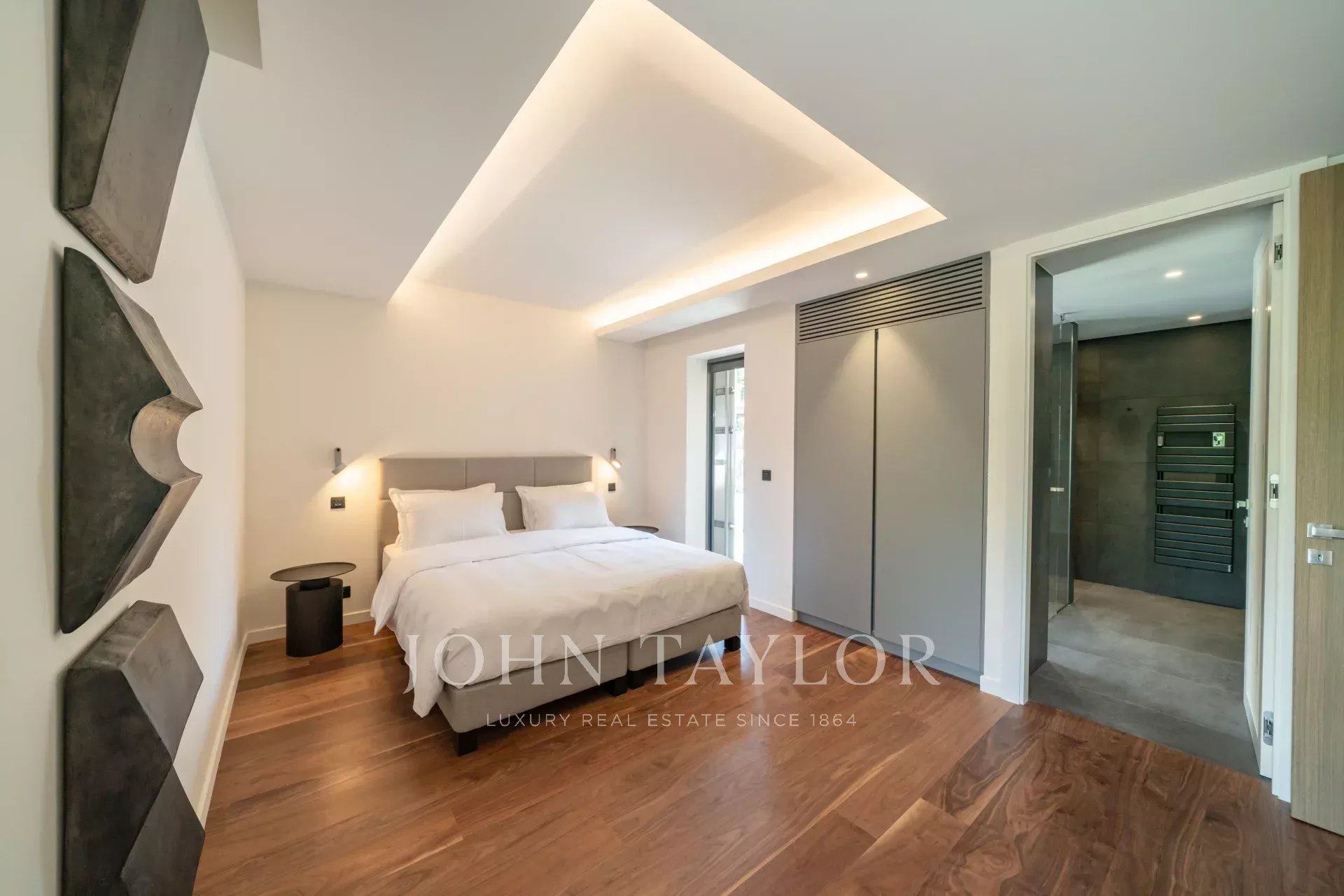 Спальня (кровать 180 см), выход на террасу, вид на Суке, вид на море - гардеробная - душевая / WC