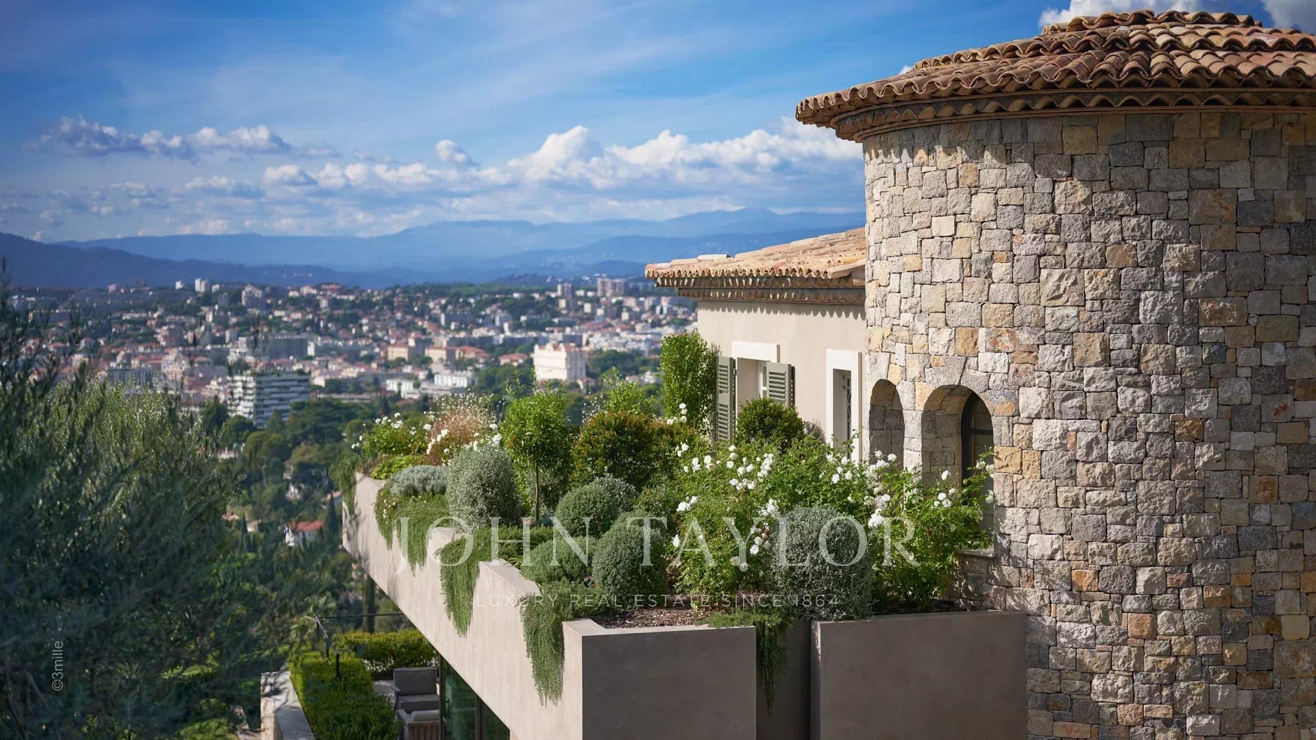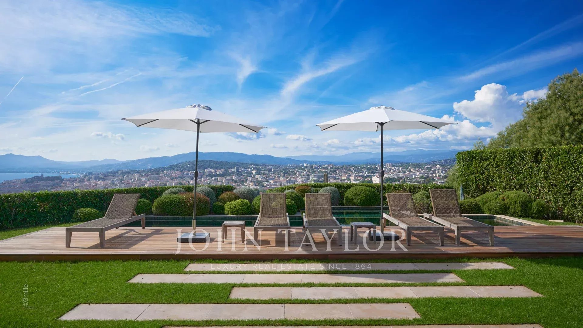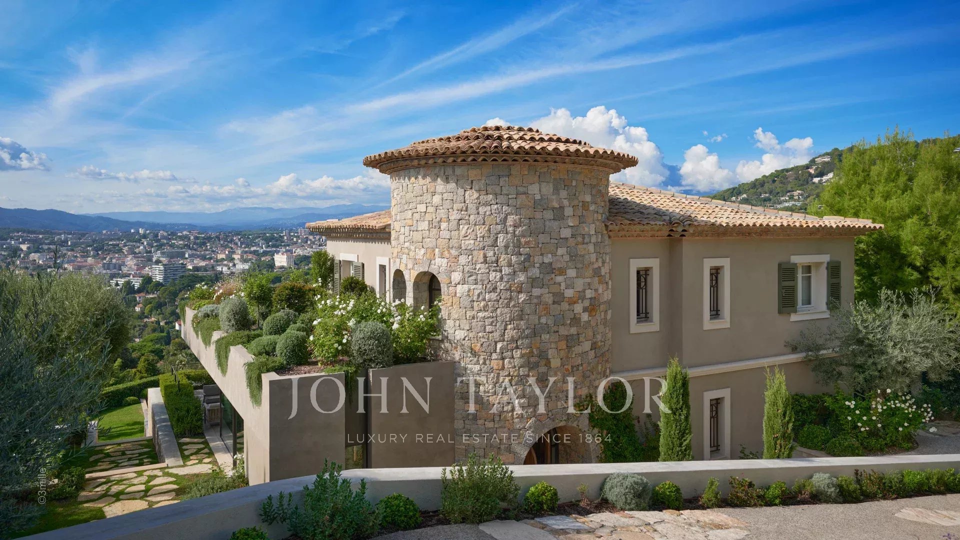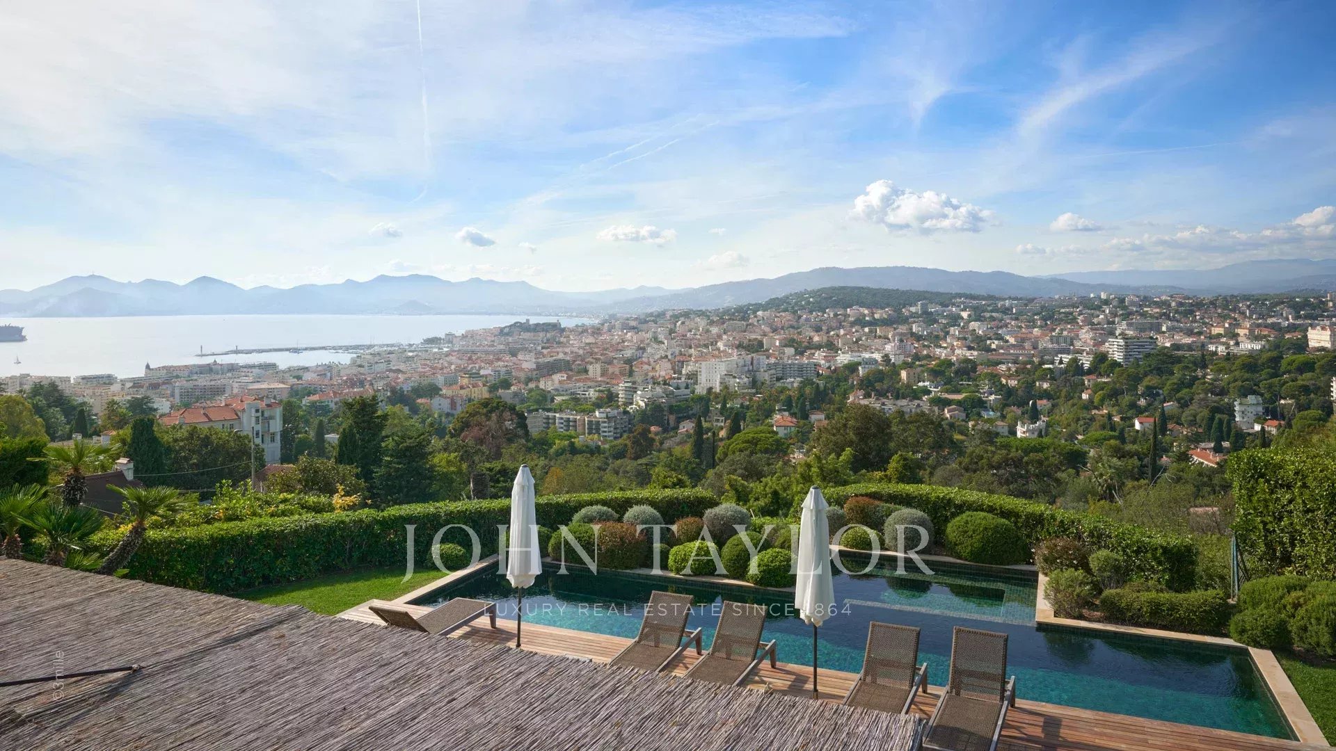 Элегантное поместье на возвышенности Канн, полностью отремонтированное и оснащенное кондиционерами, с прекрасным видом на Каннский залив.