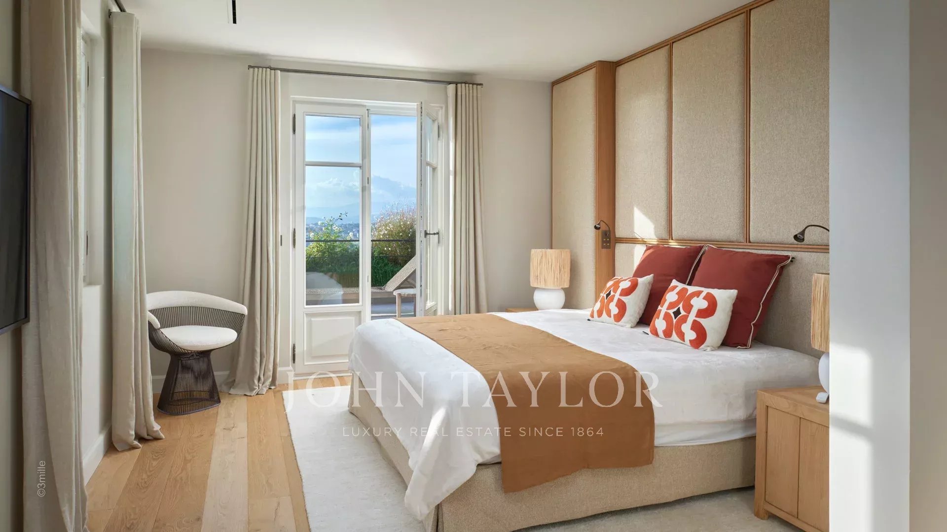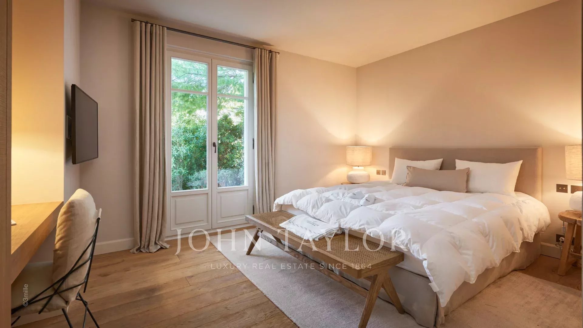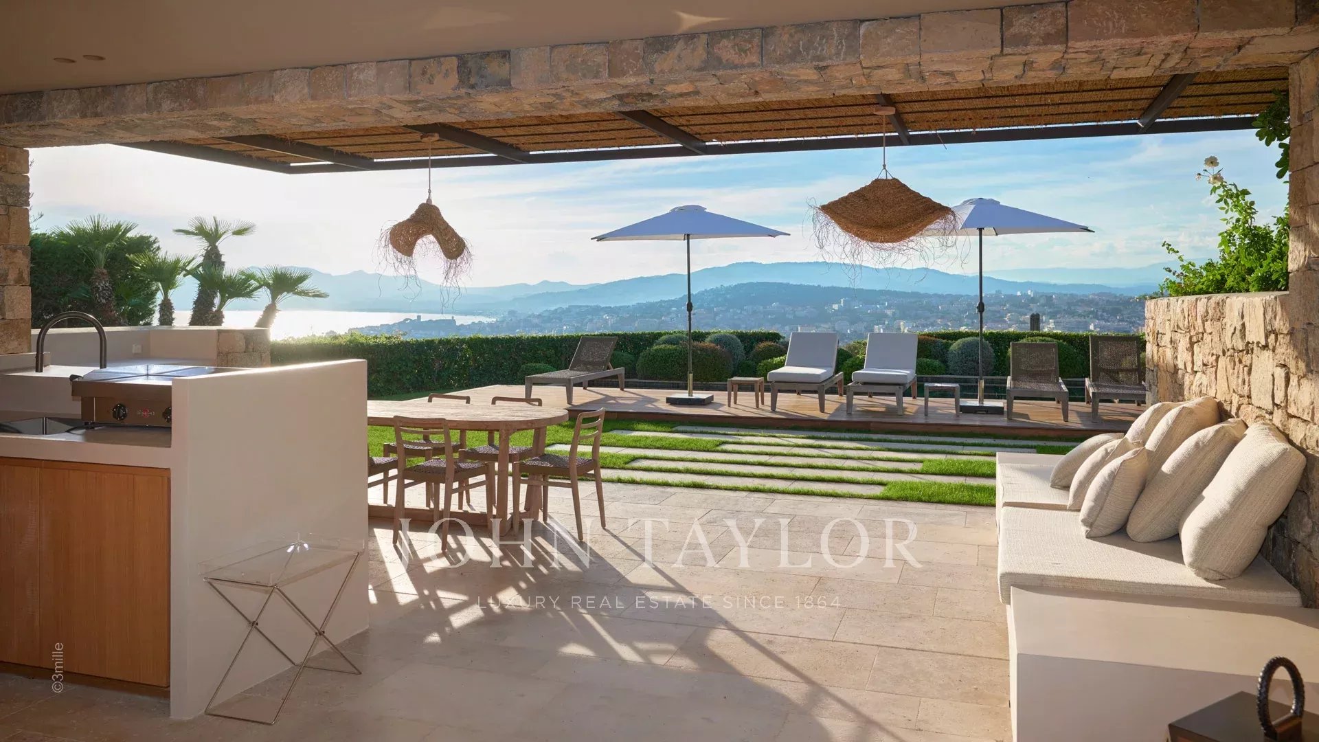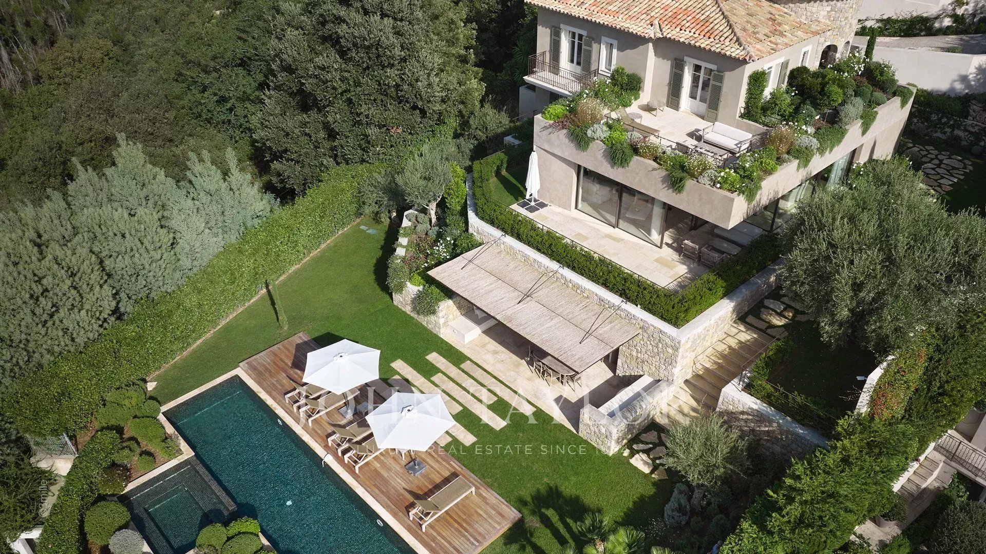 Элегантное поместье на возвышенности Канн, полностью отремонтированное и оснащенное кондиционерами, с прекрасным видом на Каннский залив.