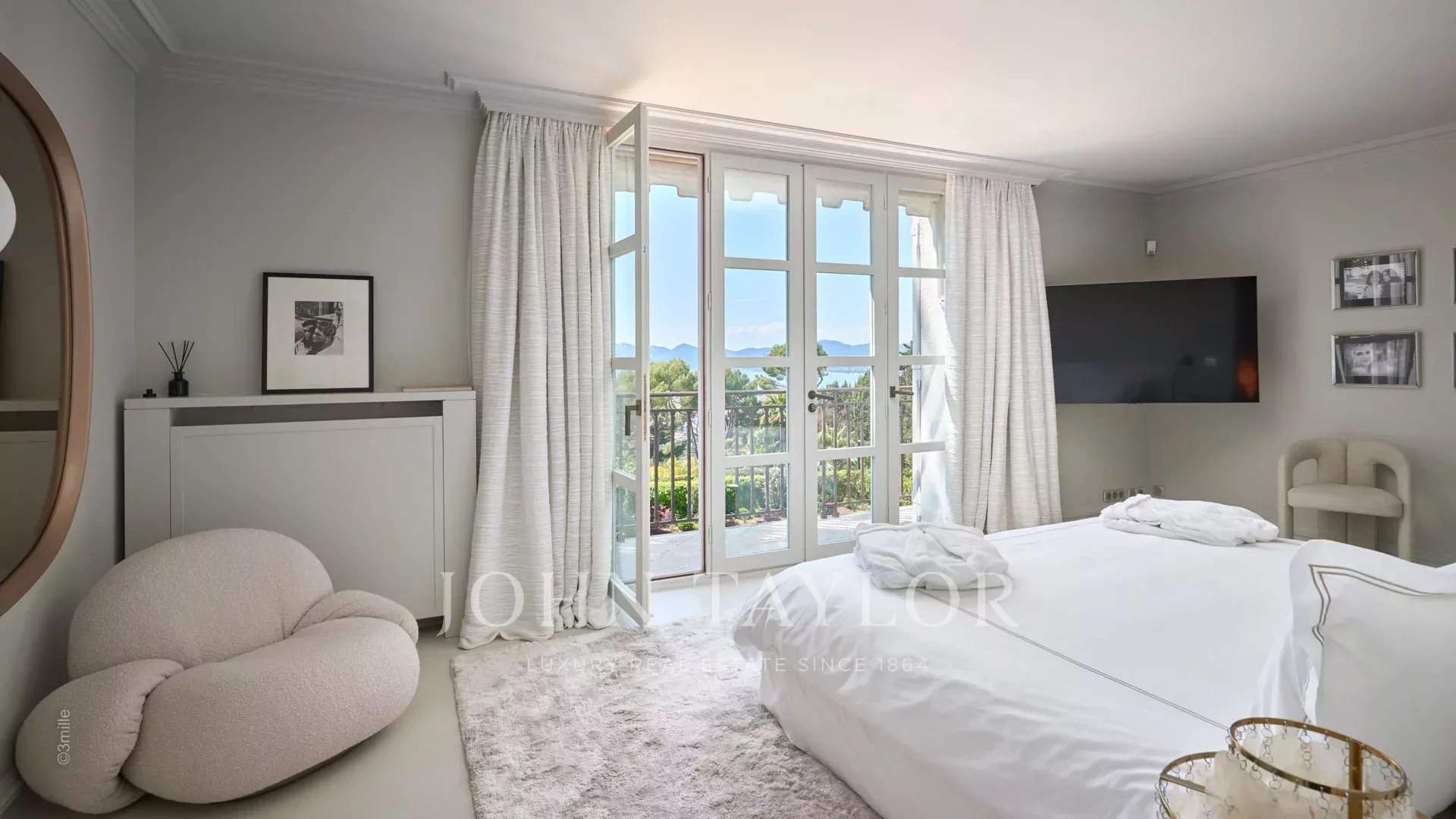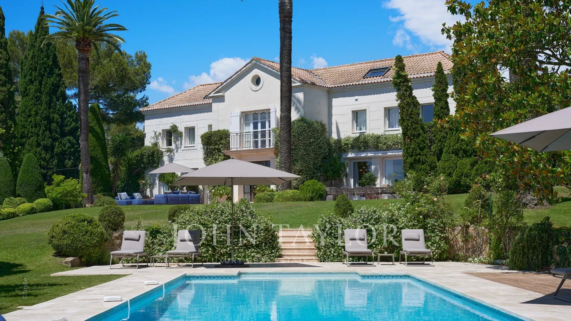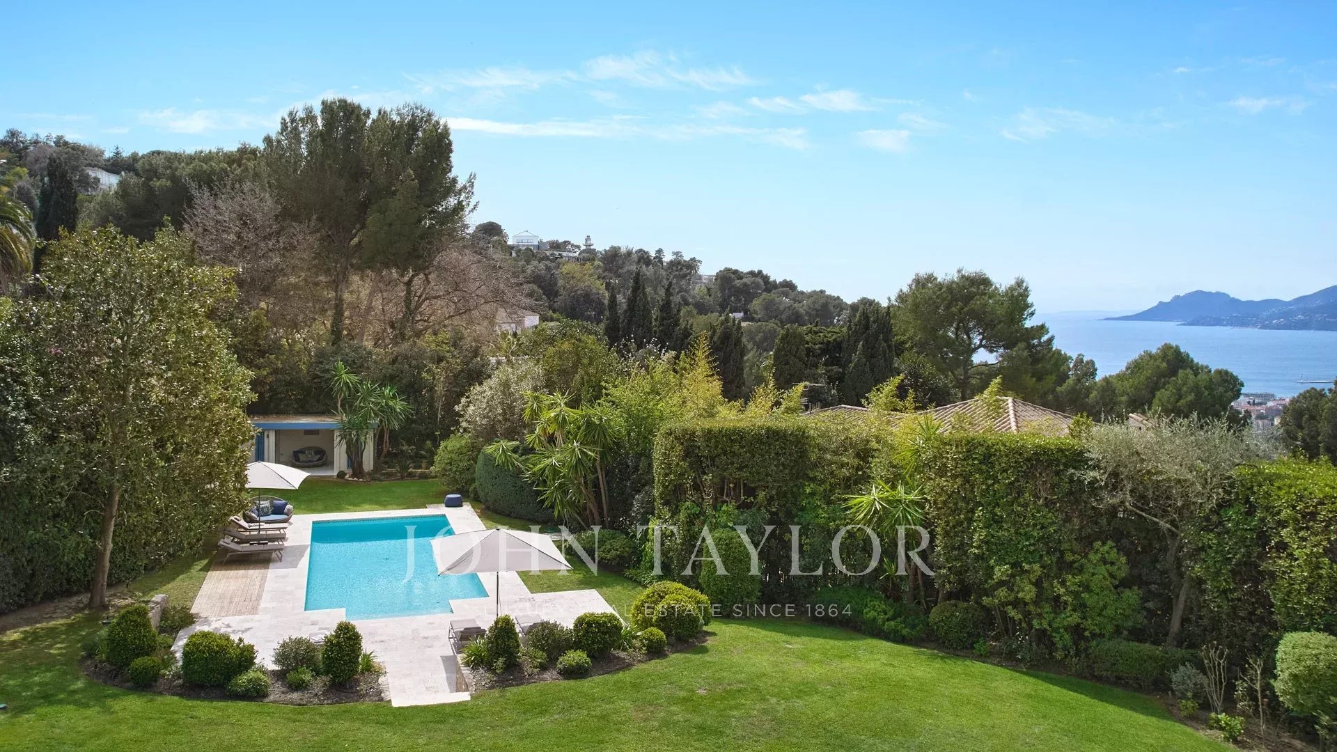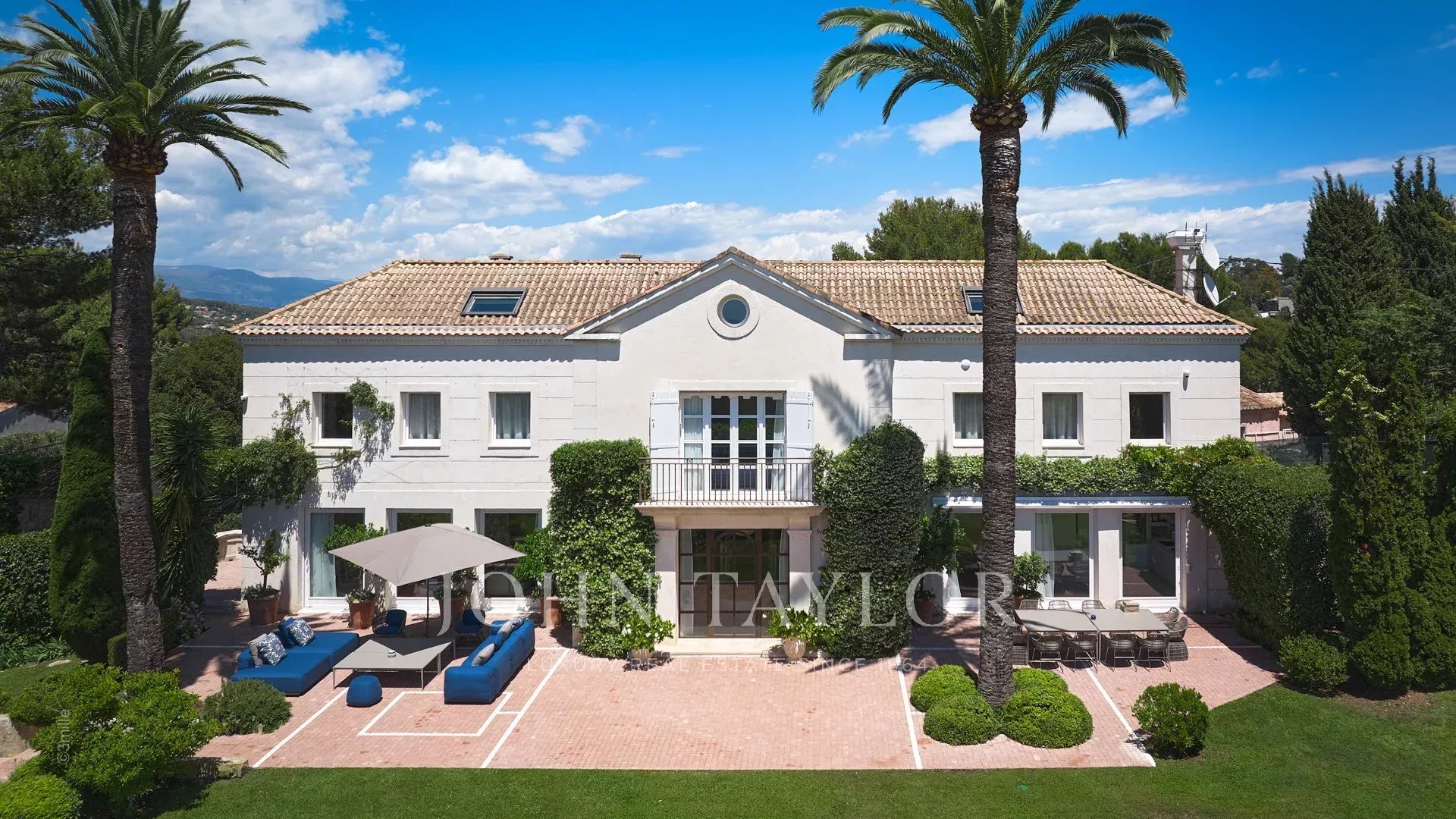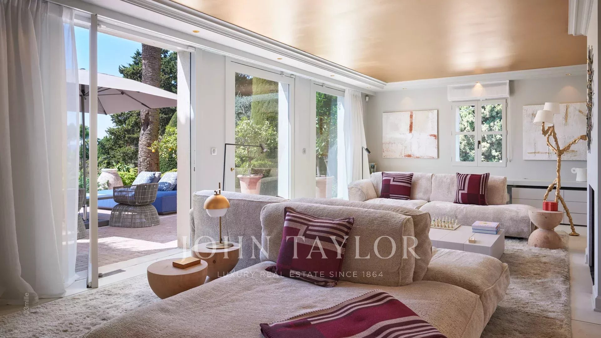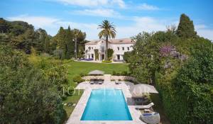 Расположенная на территории садов площадью 2 100 м2, эта великолепная вилла может похвастаться жилой площадью 378 м2, юго-западной ориентацией и видом на Каннский залив и массив Эстерель.
