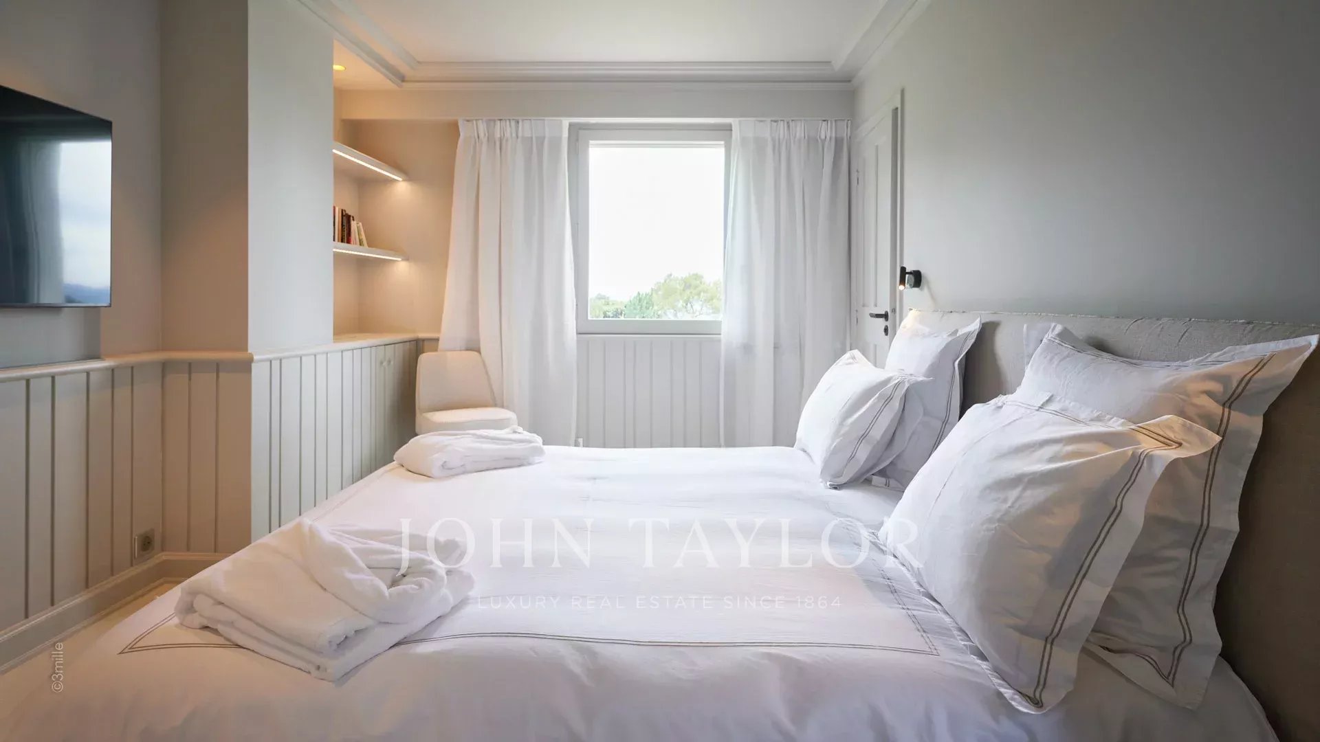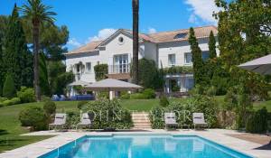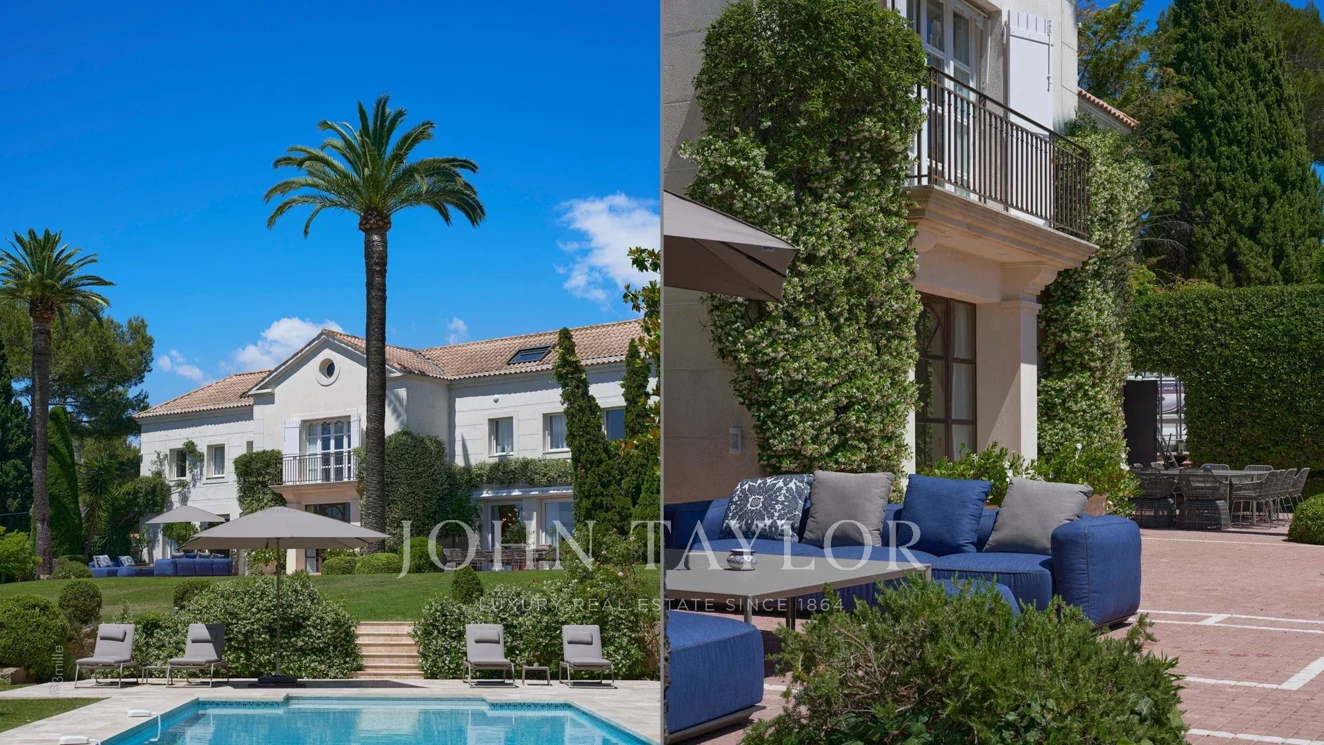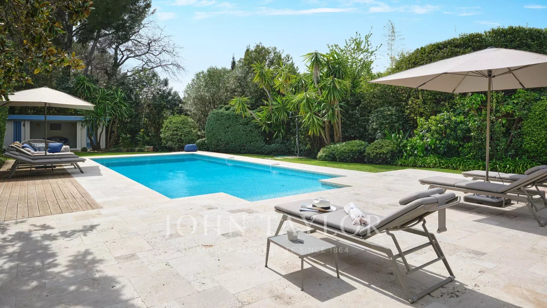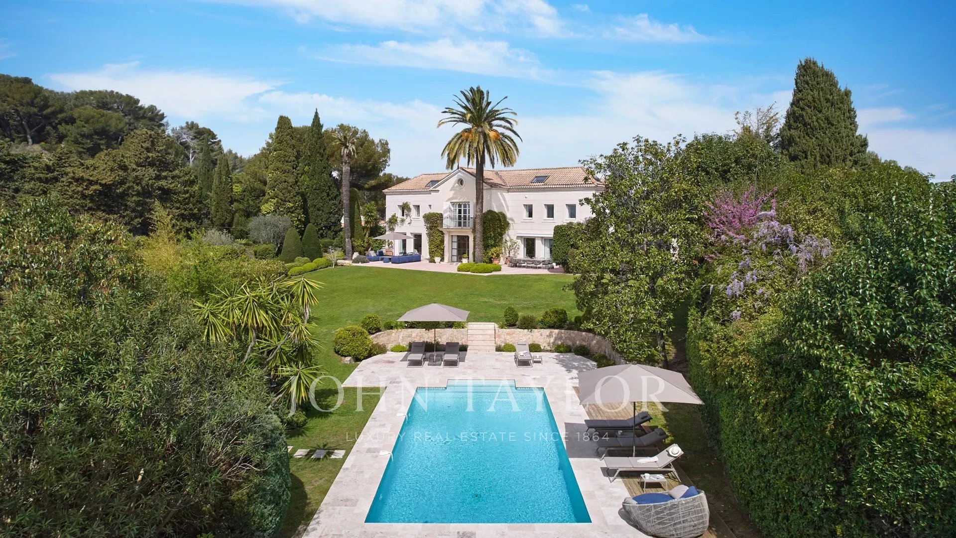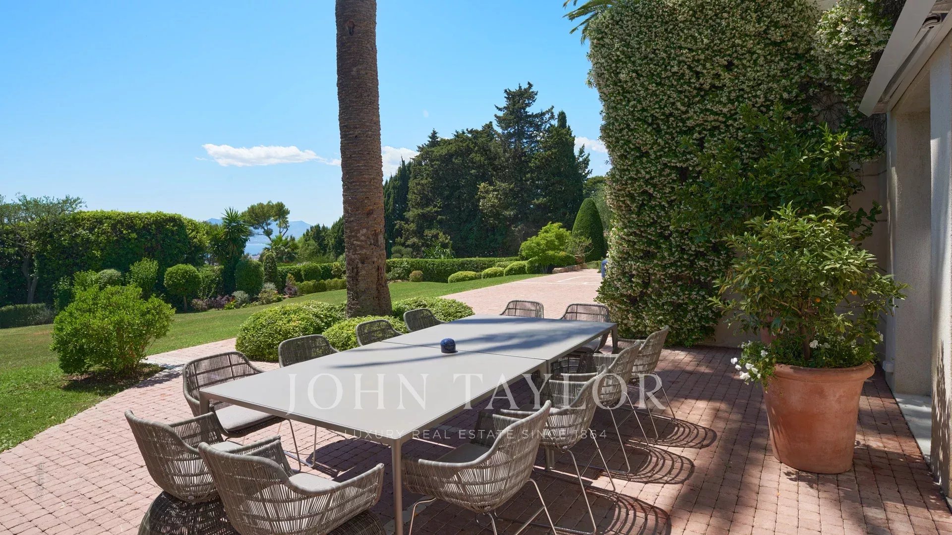 Расположенная на территории садов площадью 2 100 м2, эта великолепная вилла может похвастаться жилой площадью 378 м2, юго-западной ориентацией и видом на Каннский залив и массив Эстерель.