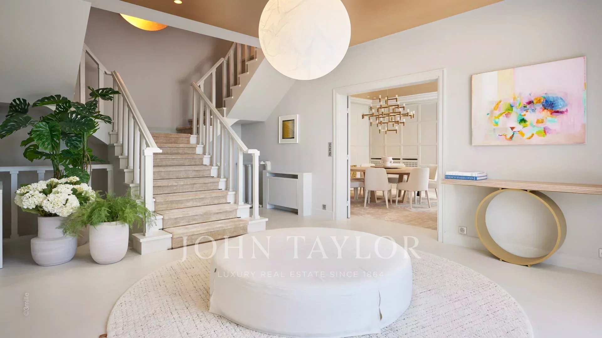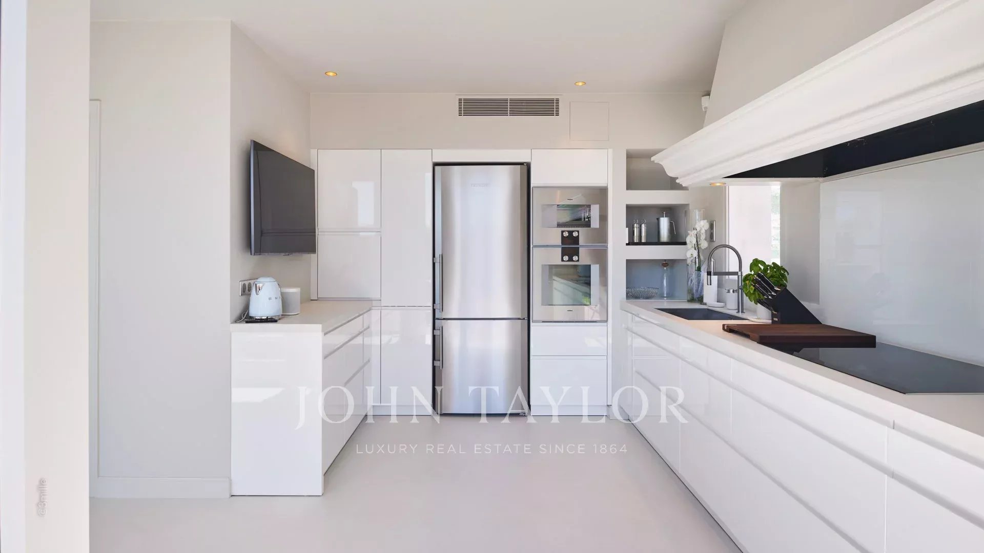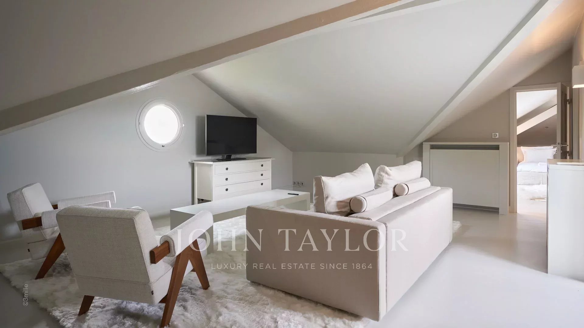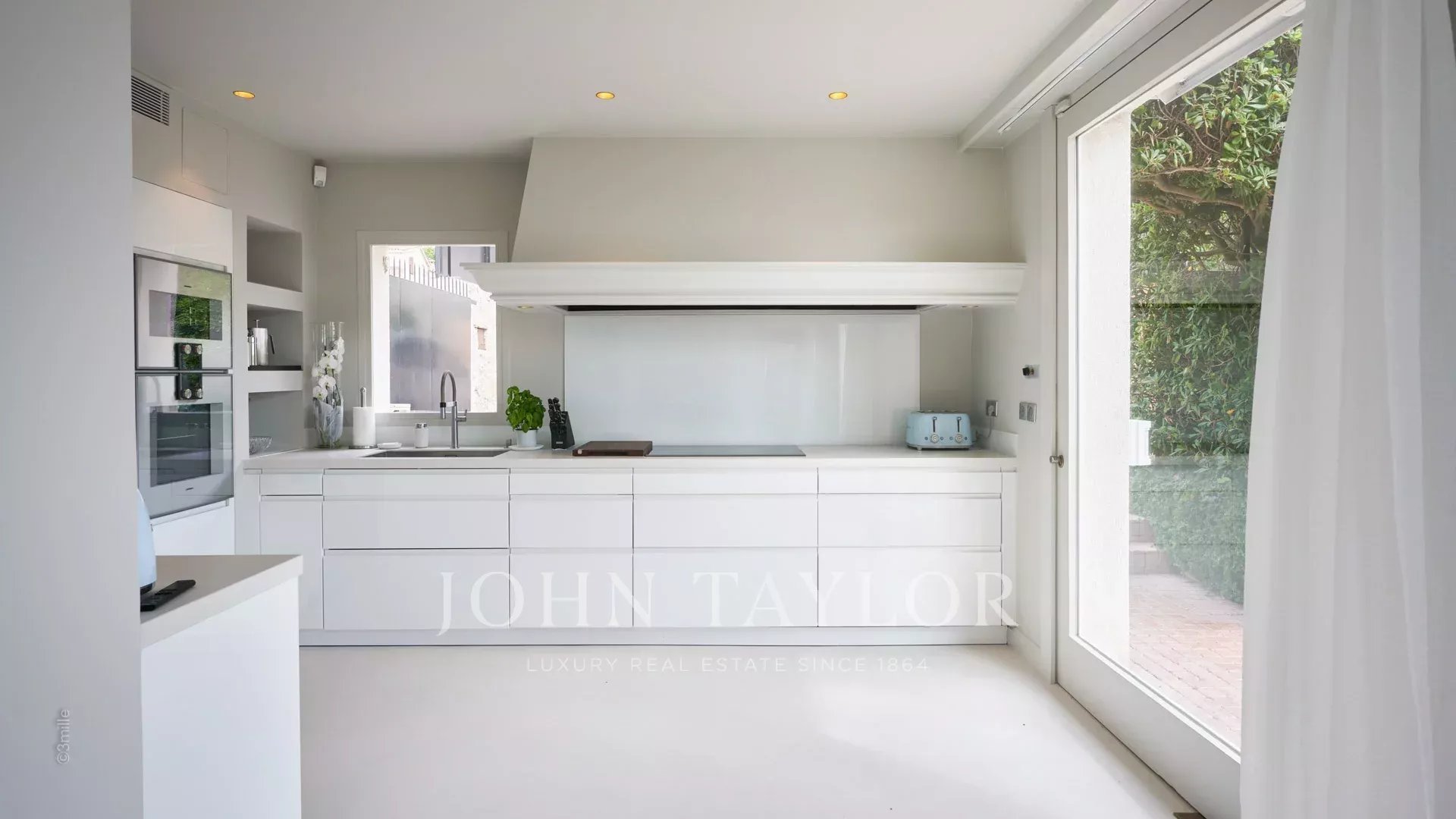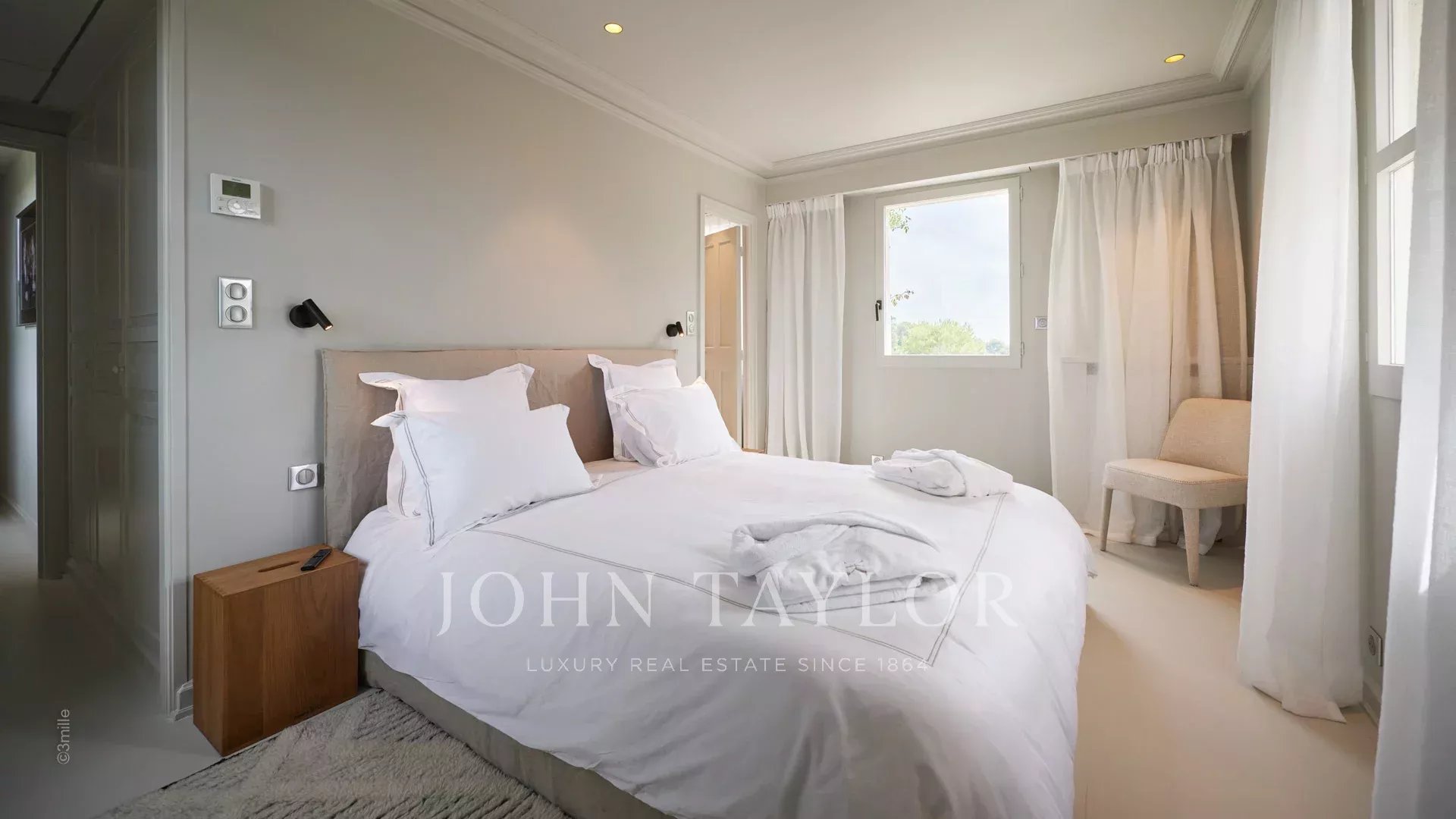 Расположенная на территории садов площадью 2 100 м2, эта великолепная вилла может похвастаться жилой площадью 378 м2, юго-западной ориентацией и видом на Каннский залив и массив Эстерель.