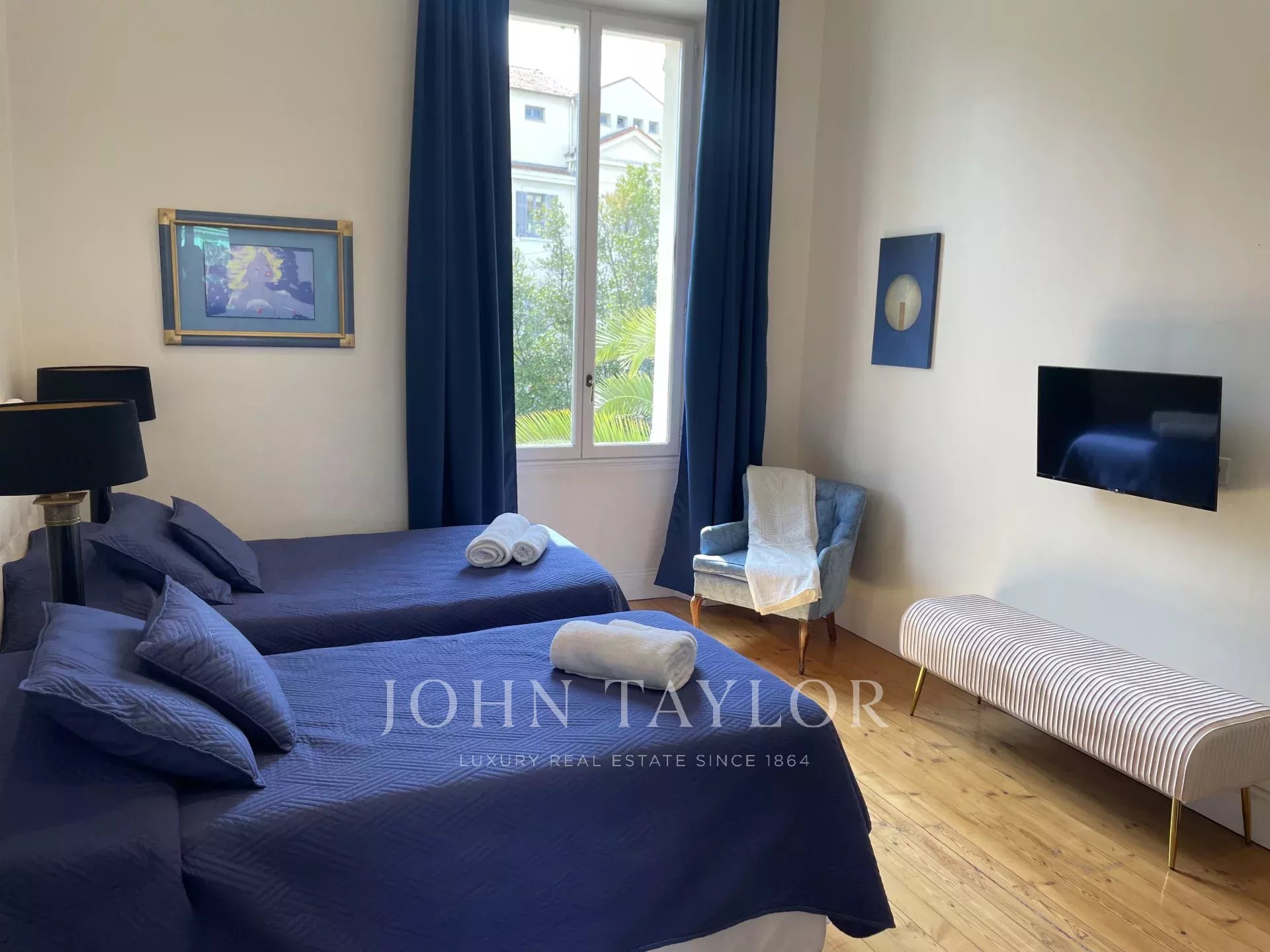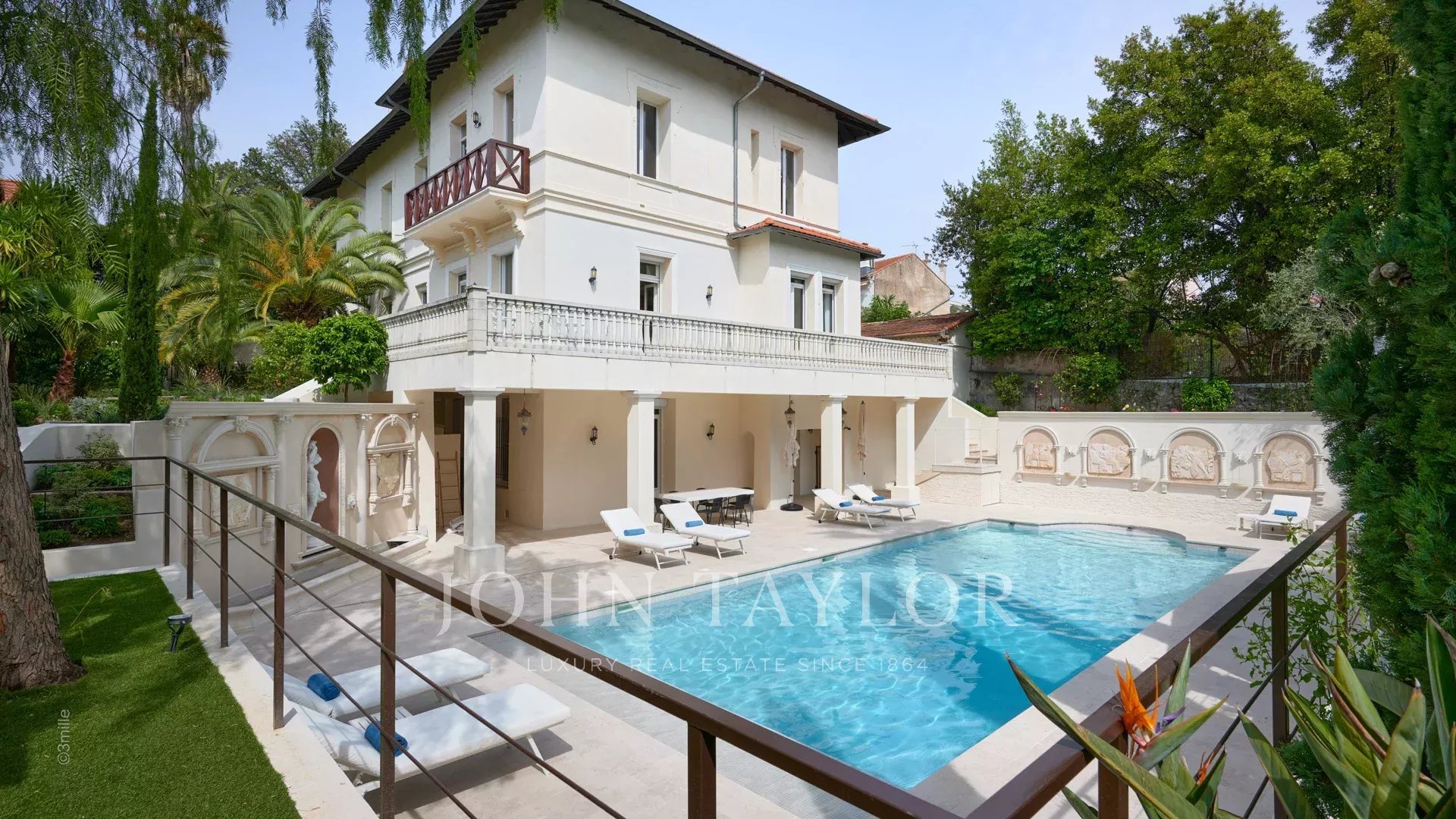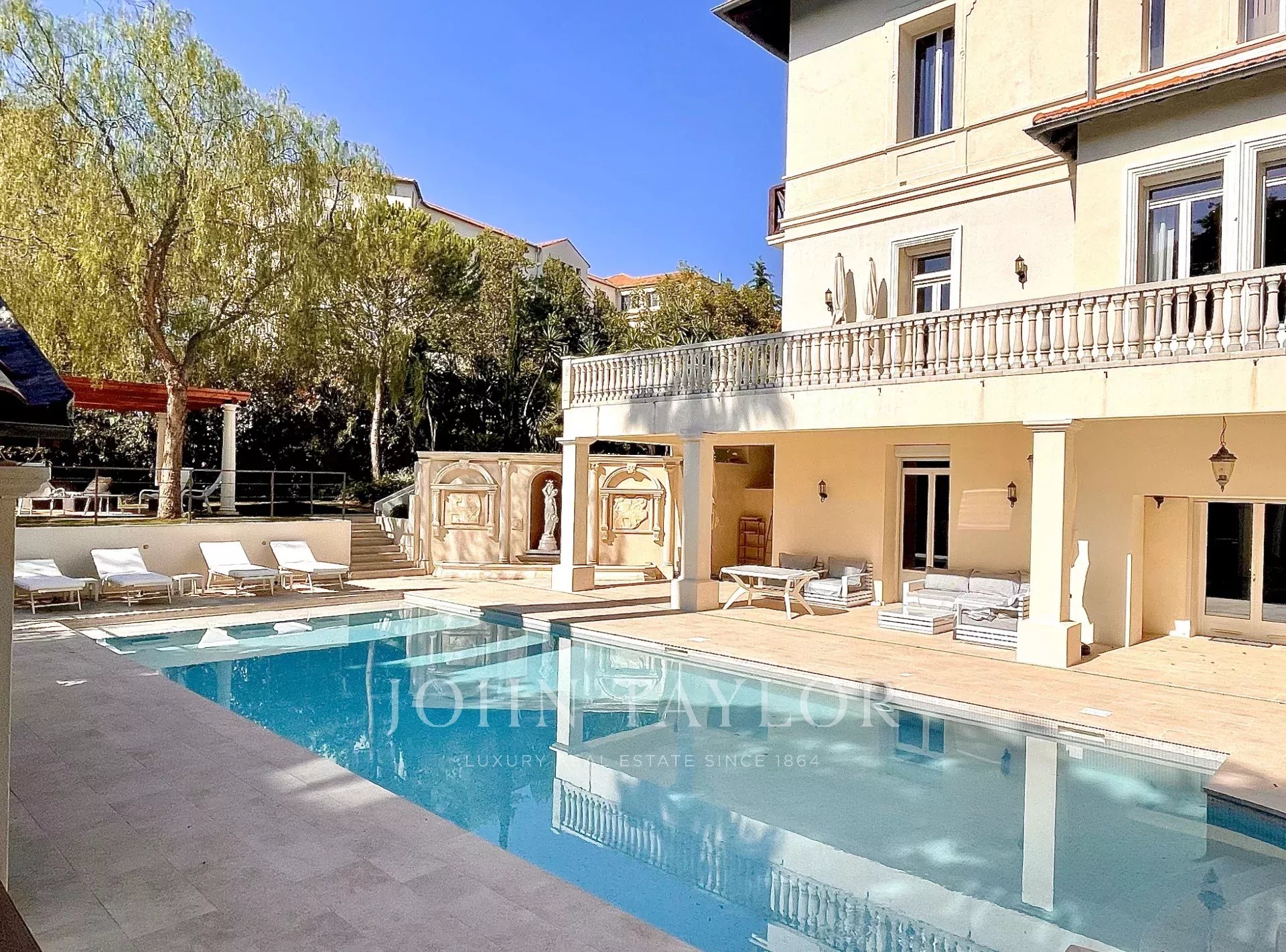 В жилом районе, в двух шагах от центра Канн и в 10 минутах ходьбы от Дворца фестивалей, расположена эта роскошная вилла в стиле бель-эпок площадью 650 м2, полностью отремонтированная и оснащенная кондиционерами, на территории парка площадью 2 500 м2.