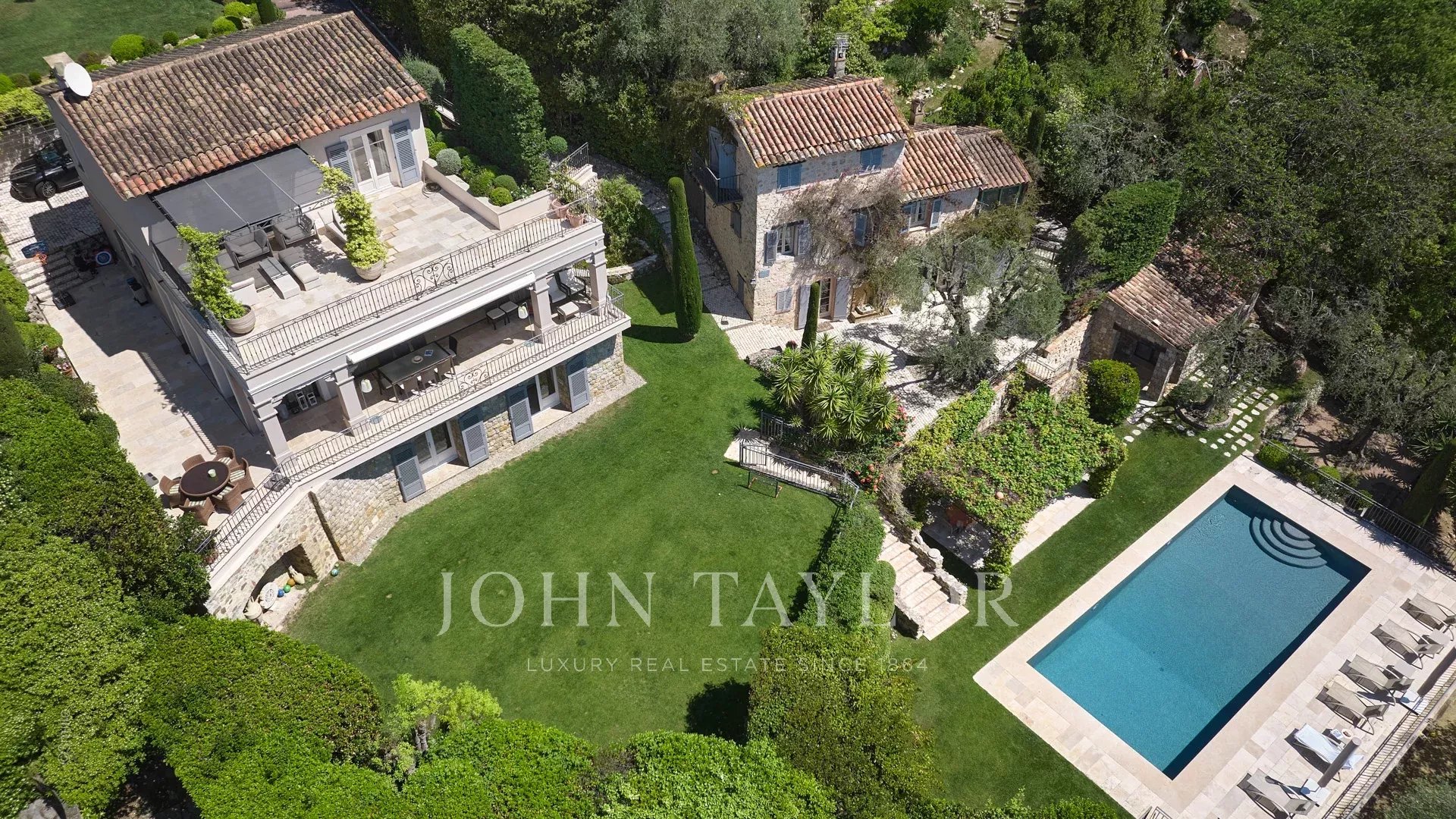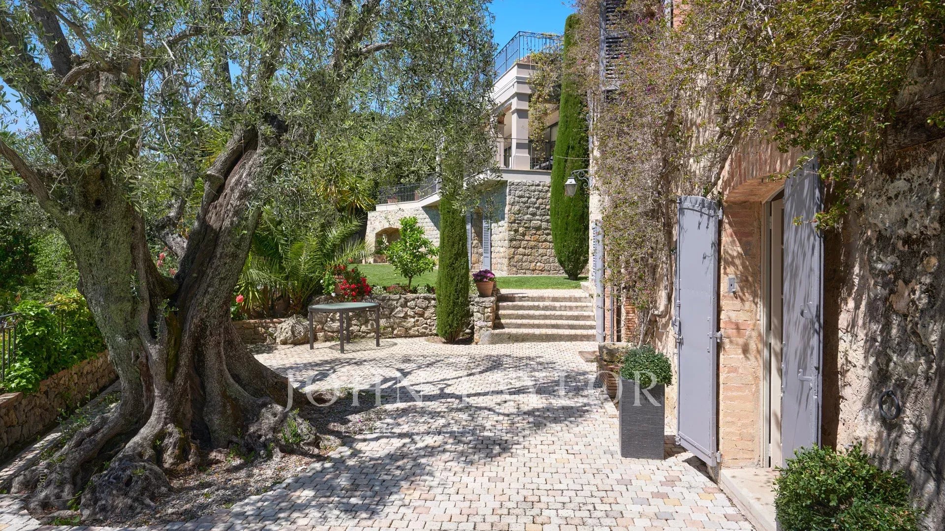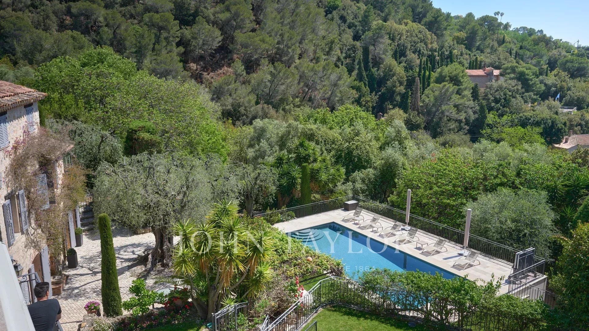 Недалеко от центра Канн, на территории площадью 2 500 м2 расположен великолепный особняк, состоящий из старинного загородного дома и гостевого домика.