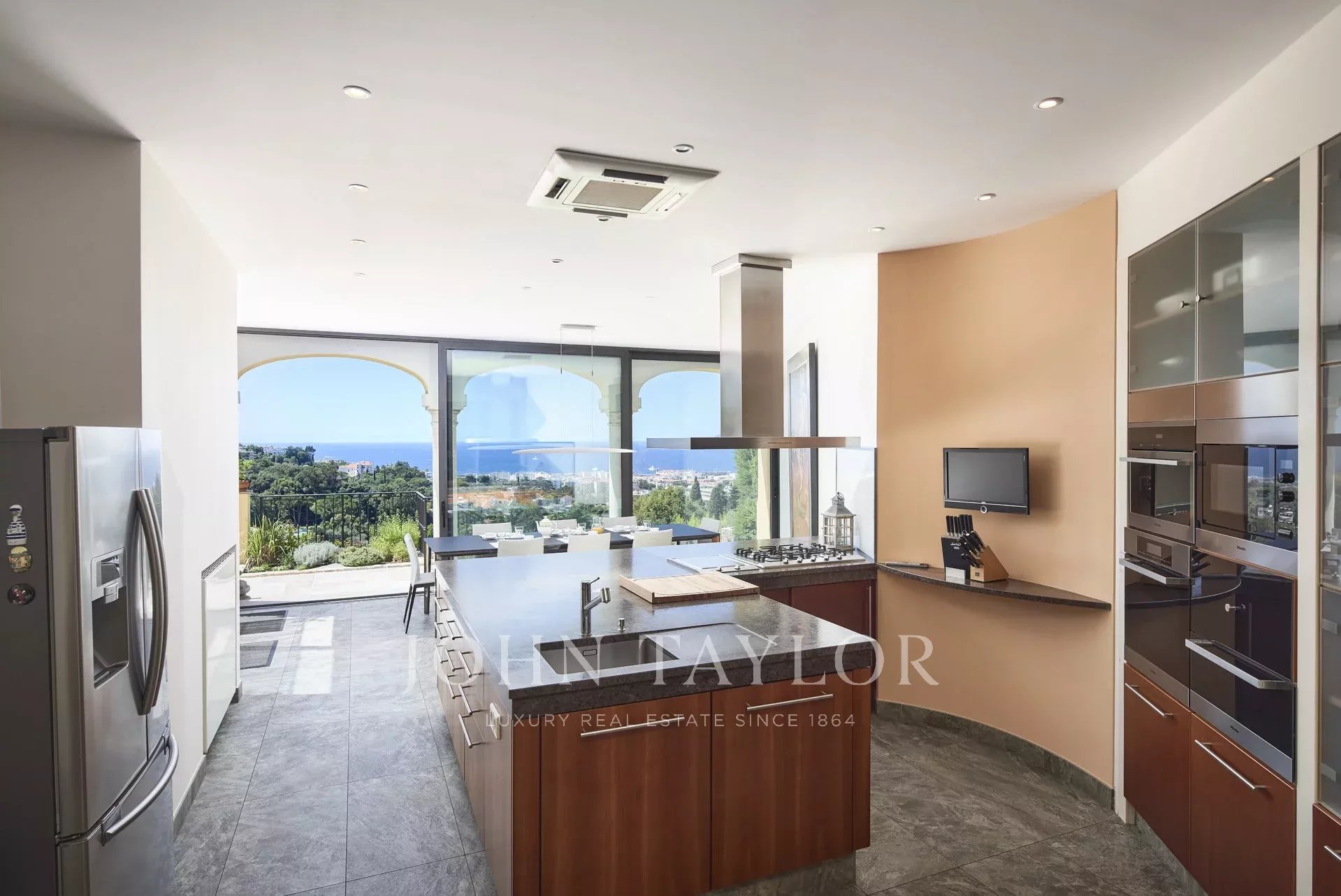 Большая кухня, столовая, также с выходом на террасу, кондиционер,