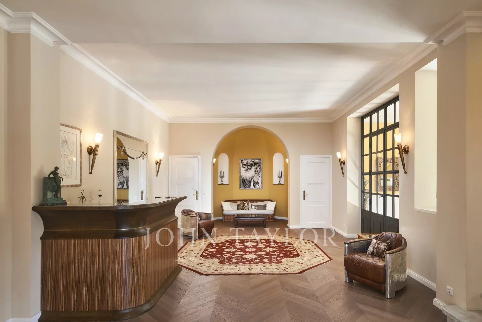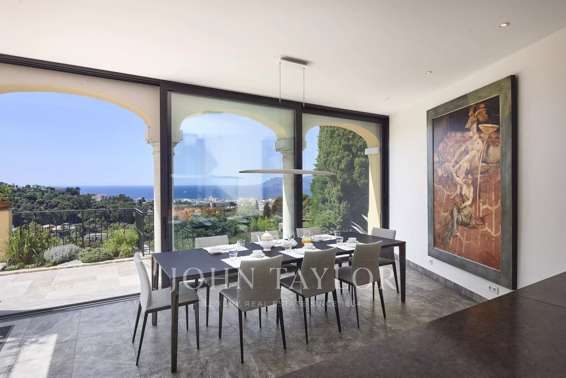 Красивый особняк 1900-х годов с великолепным панорамным видом на море, на каннский залив, расположен в центре красивого парка 4 500 кв.м, в нескольких минутах от центра города. Особняк ориентирован на южную сторону.