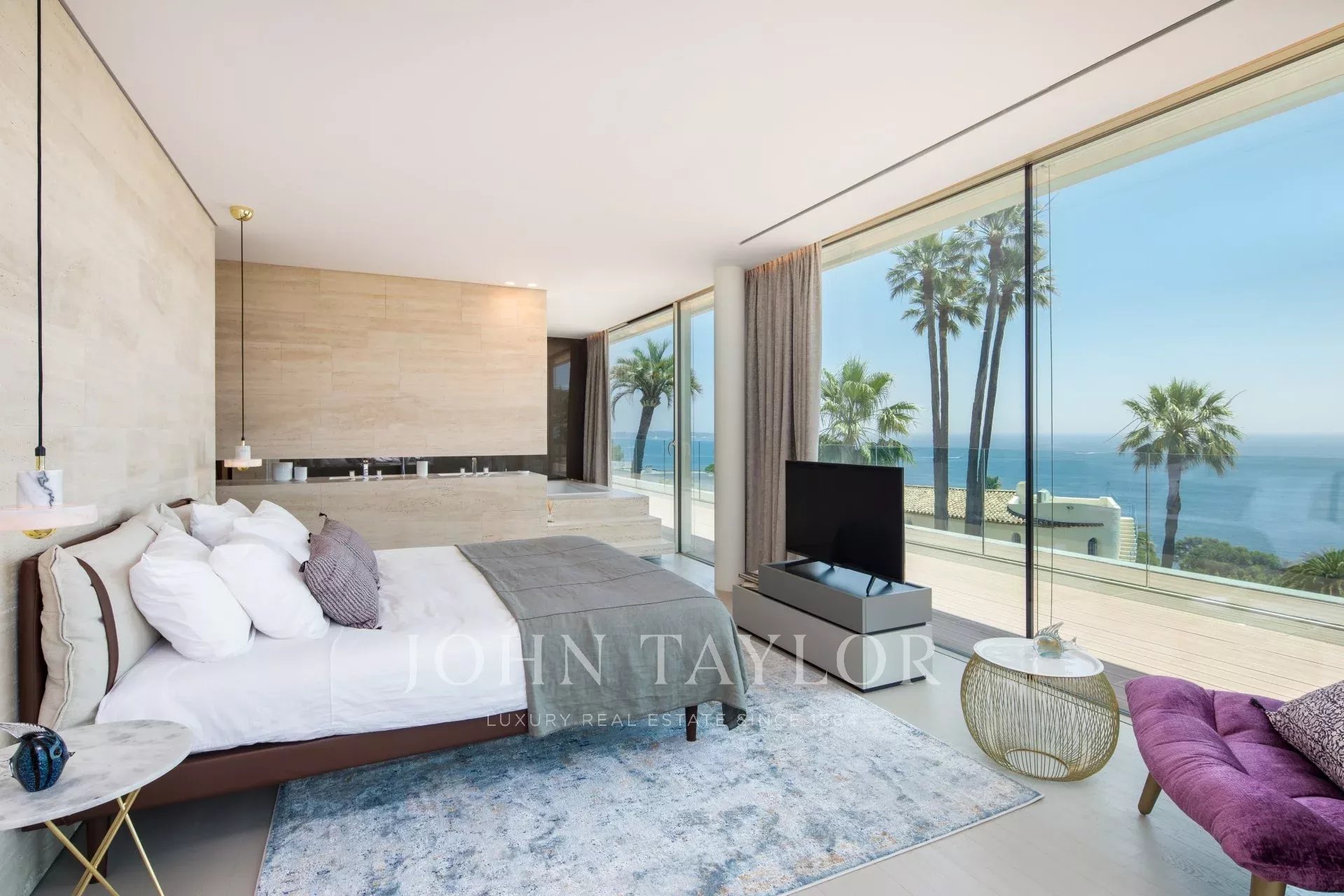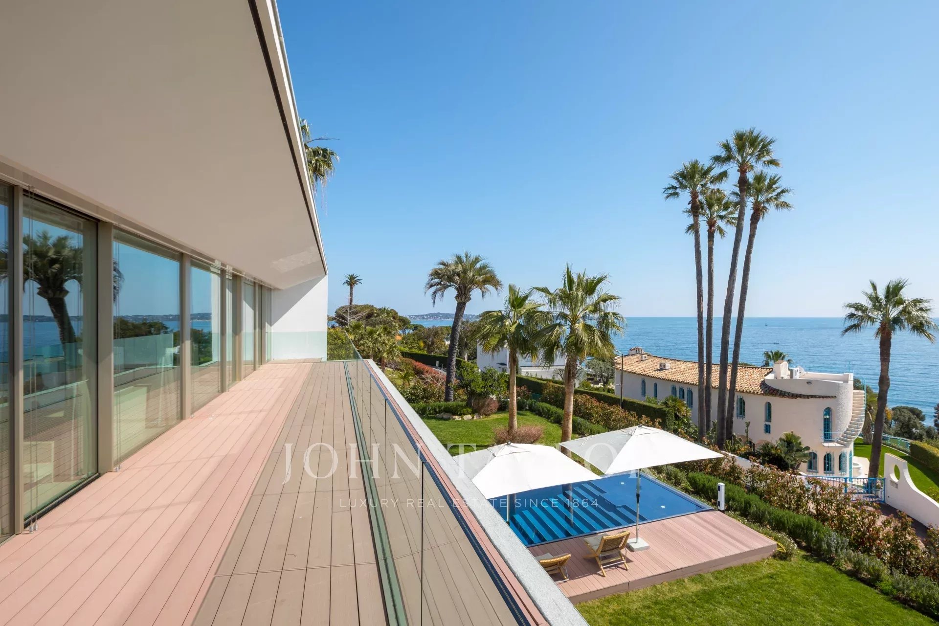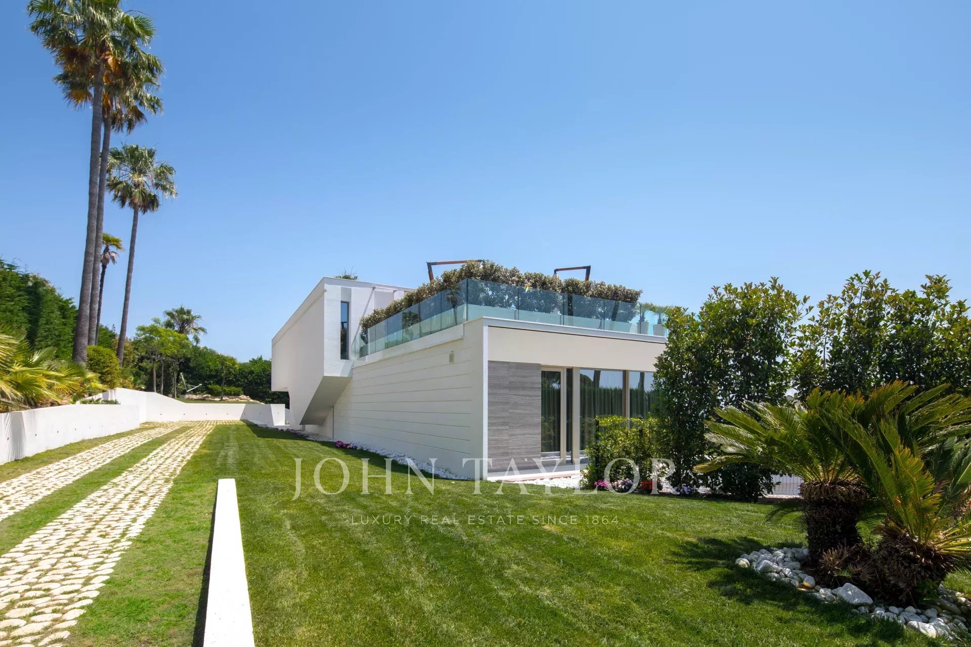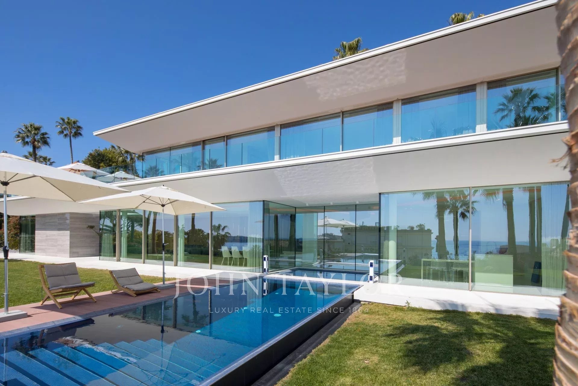 Эта новая современная вилла расположена в закрытом комплексе недалеко от моря и центра города. Из окон открывается великолепный вид на Каннский залив.