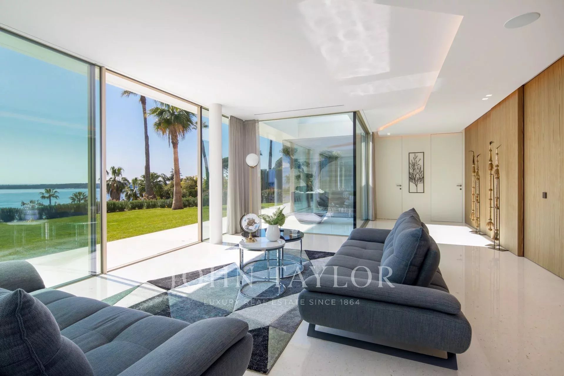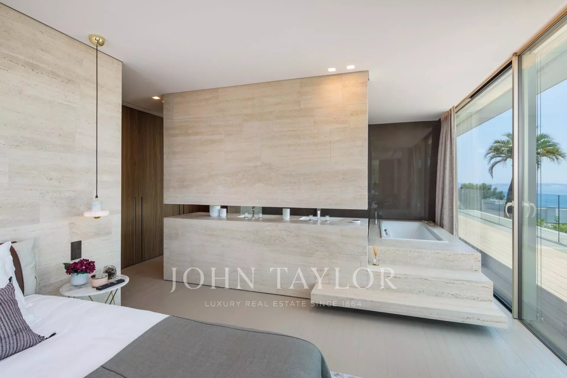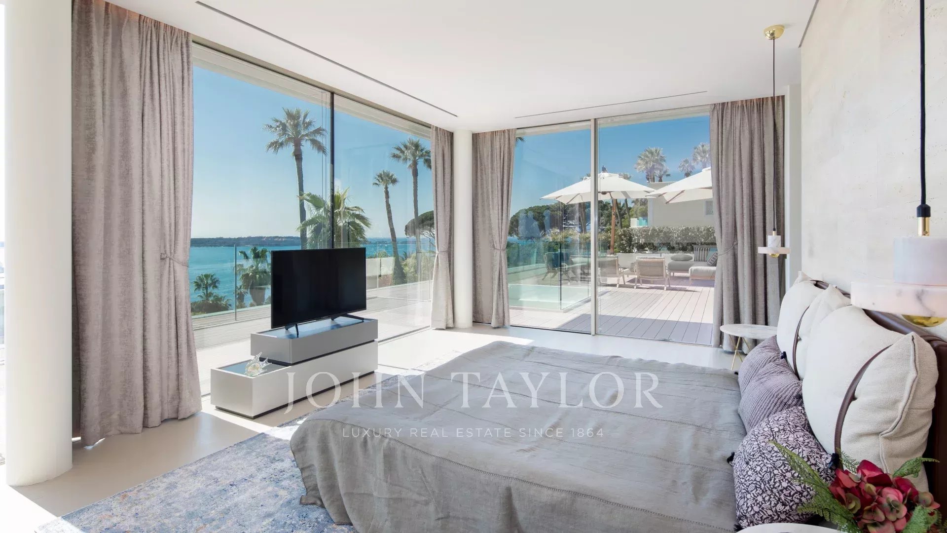 Эта новая современная вилла расположена в закрытом комплексе недалеко от моря и центра города. Из окон открывается великолепный вид на Каннский залив.