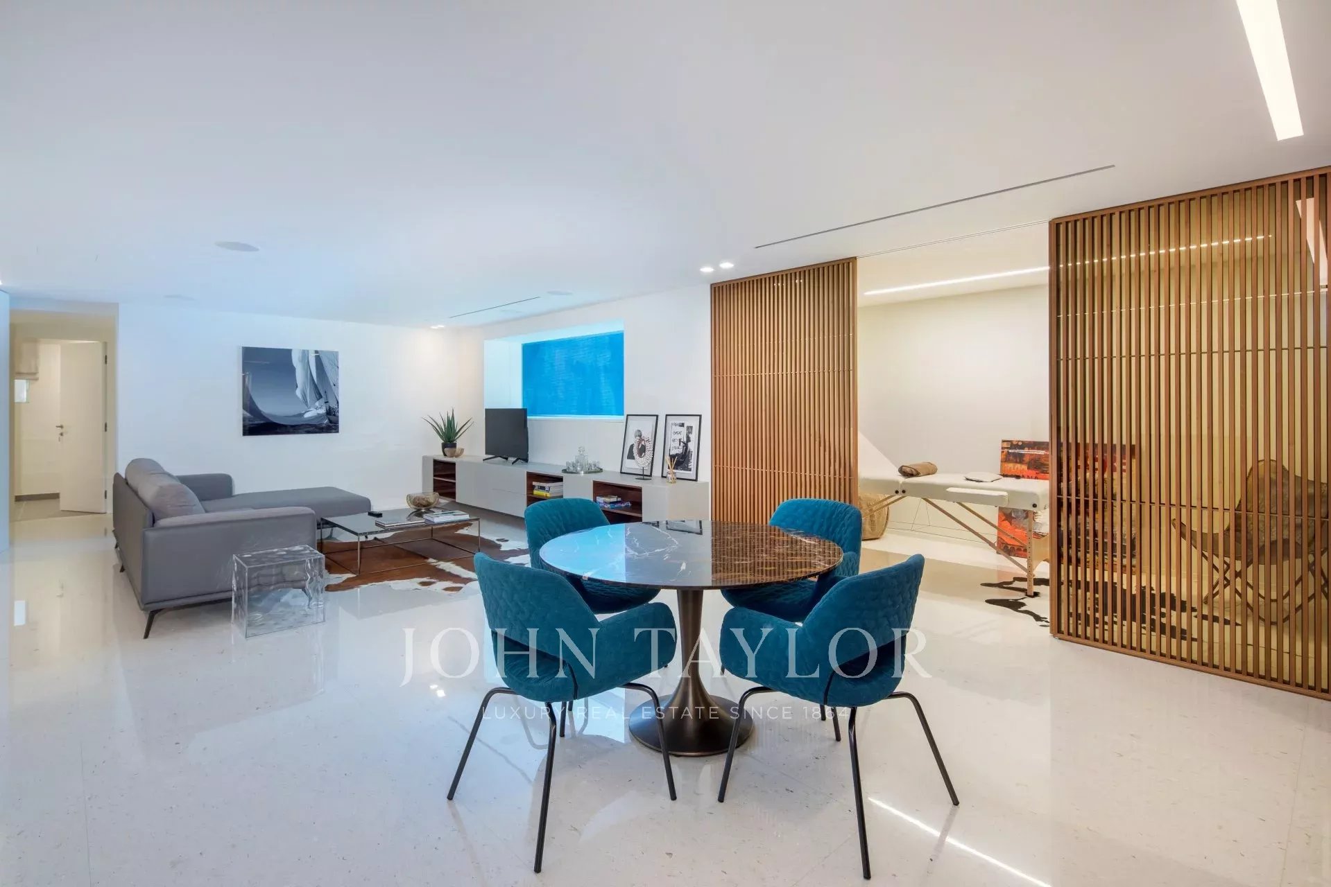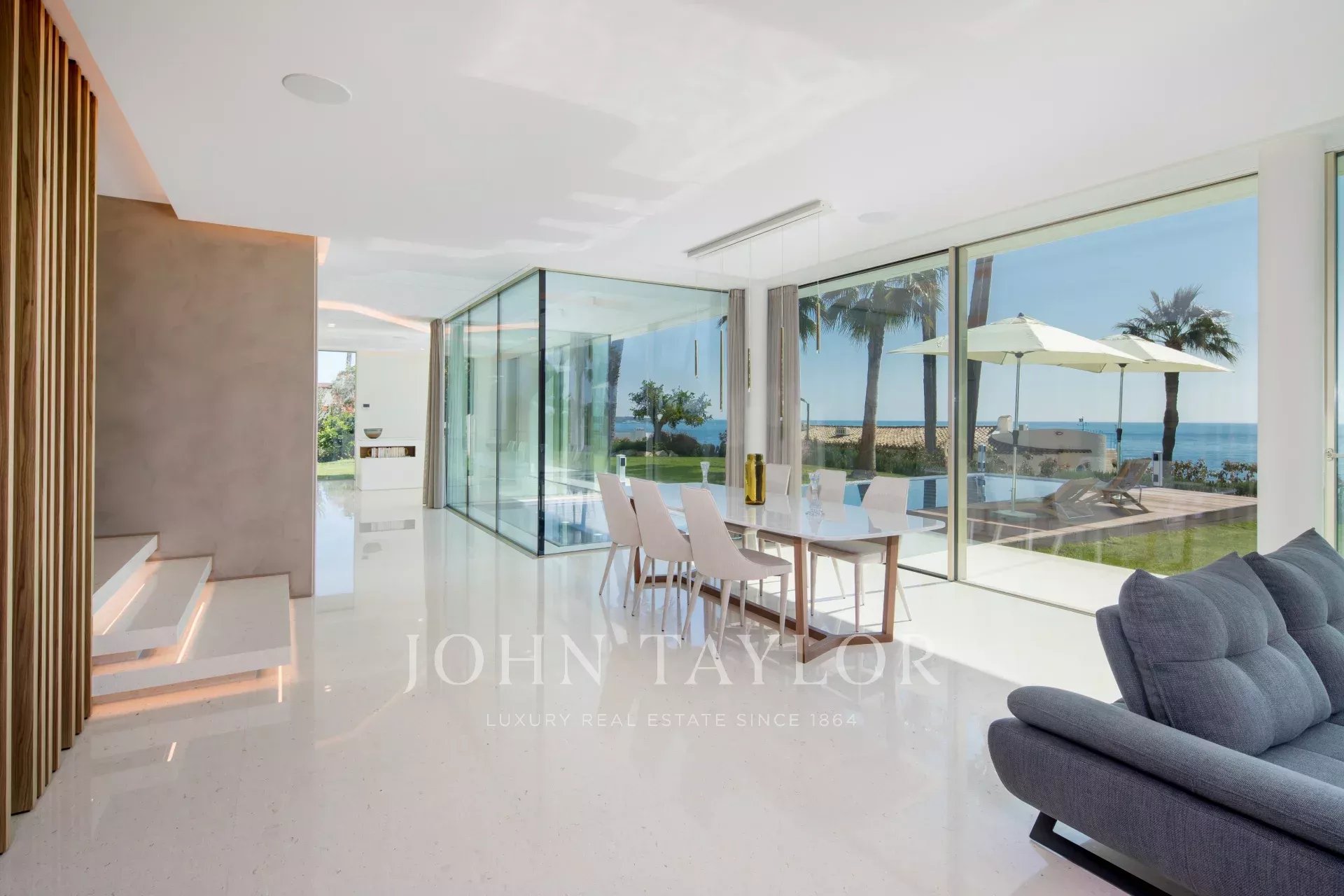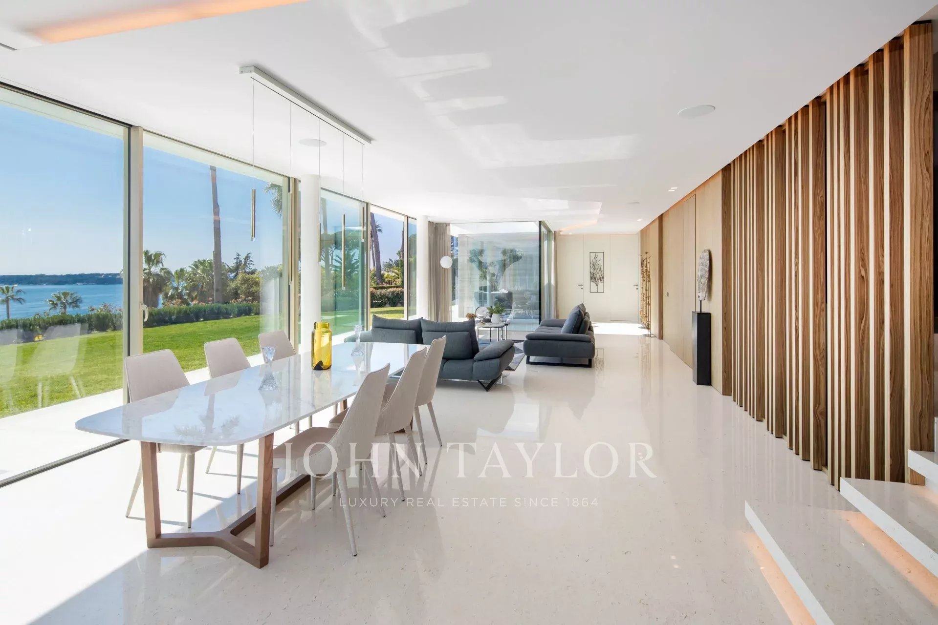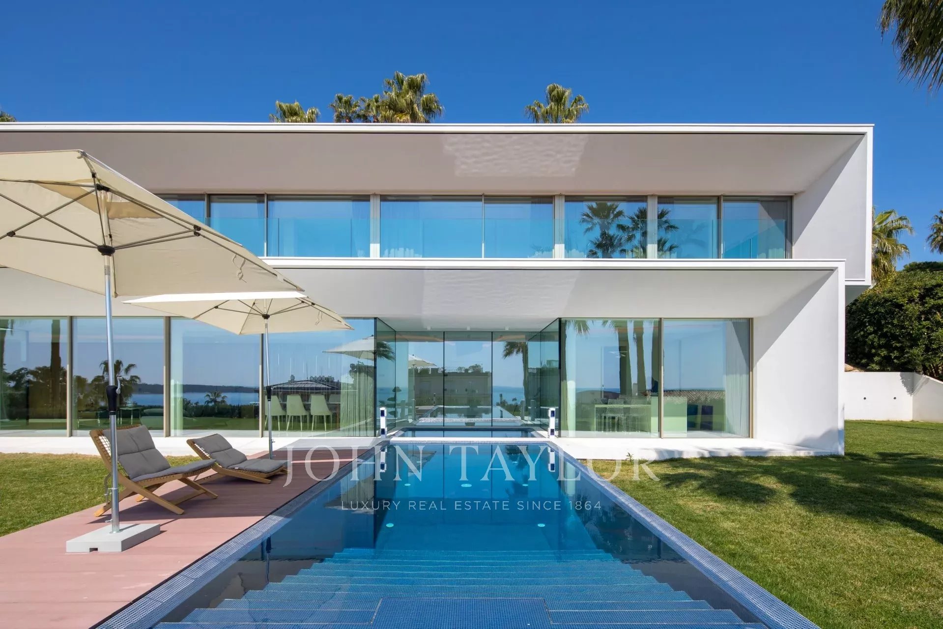 Эта новая современная вилла расположена в закрытом комплексе недалеко от моря и центра города. Из окон открывается великолепный вид на Каннский залив.