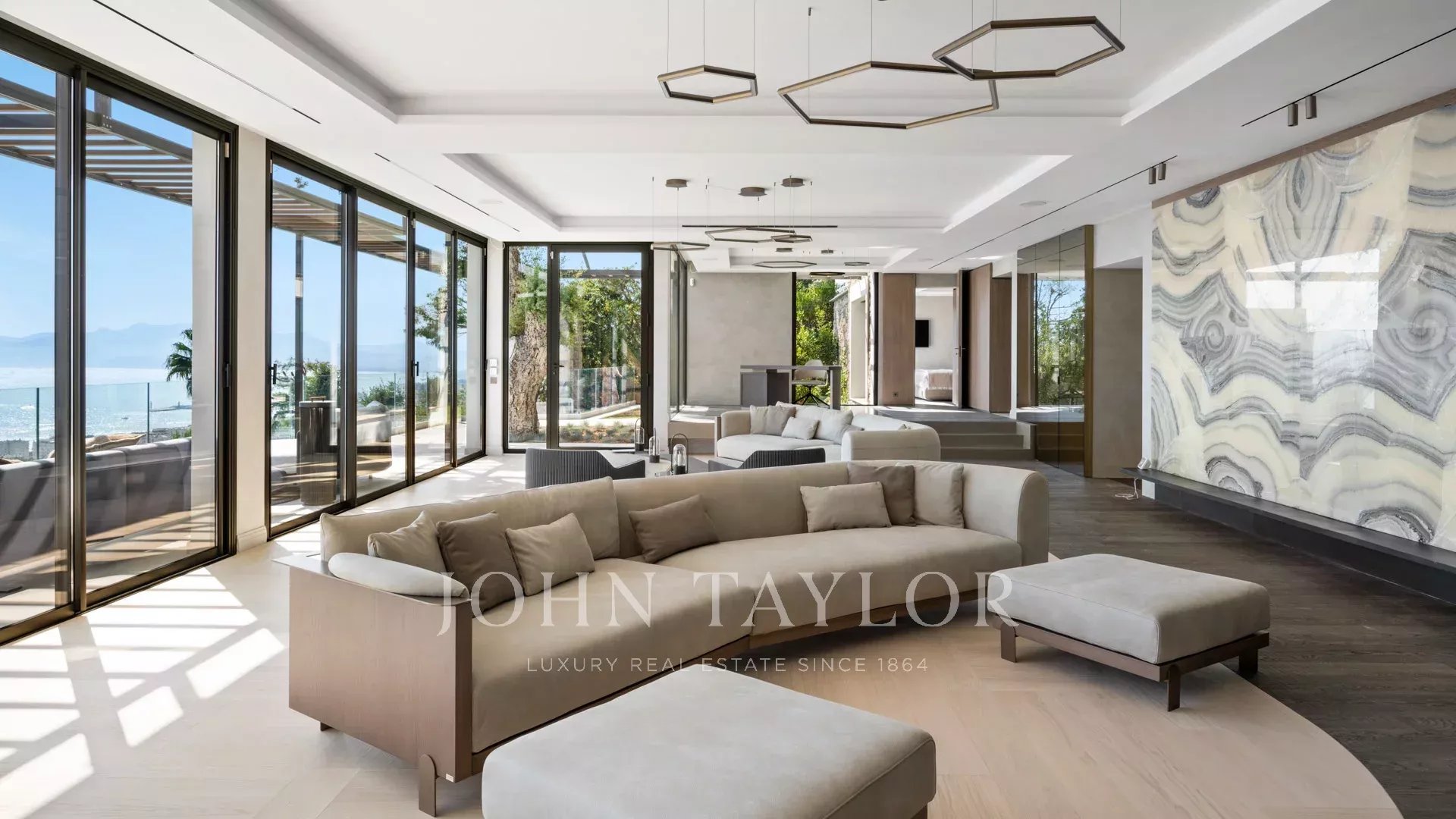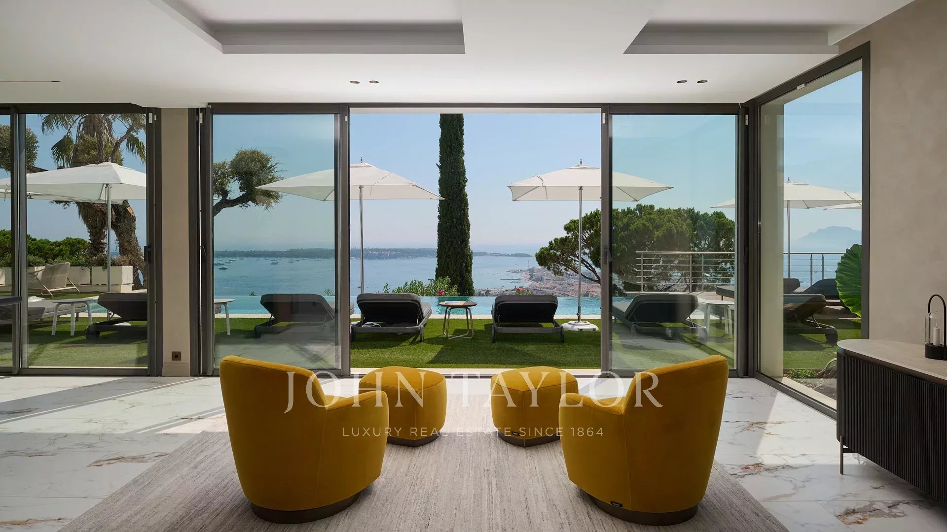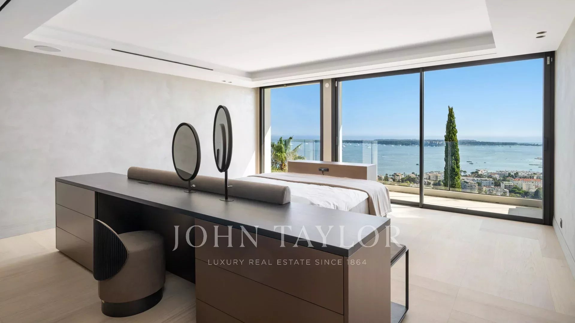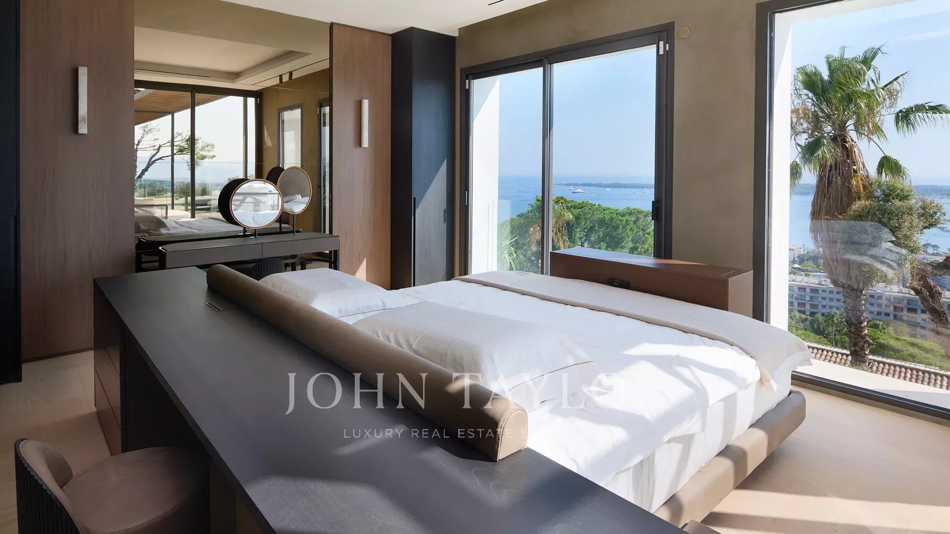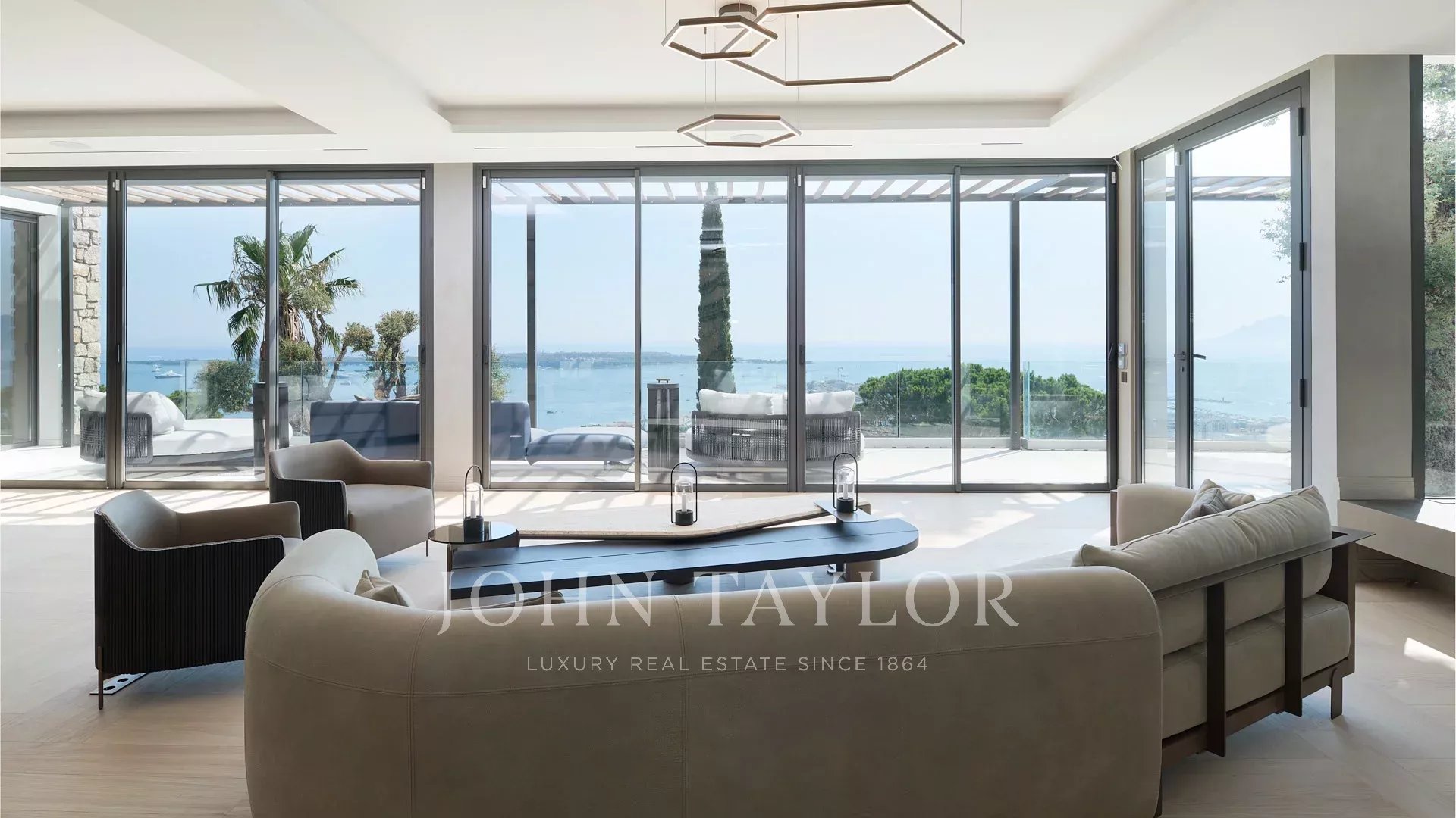 Жилая площадь виллы составляет 550 м², она оформлена в изысканном стиле, а из окон открываются захватывающие панорамы на Каннский залив и Леринские острова.