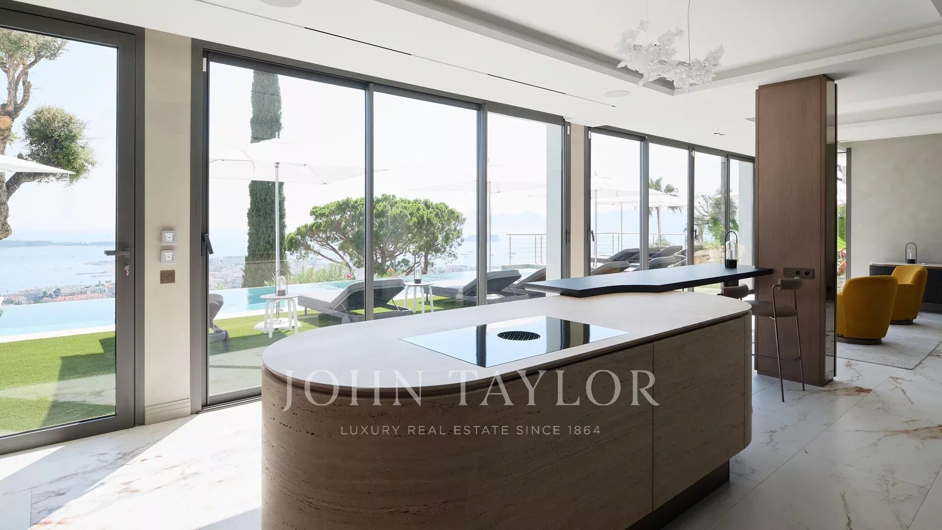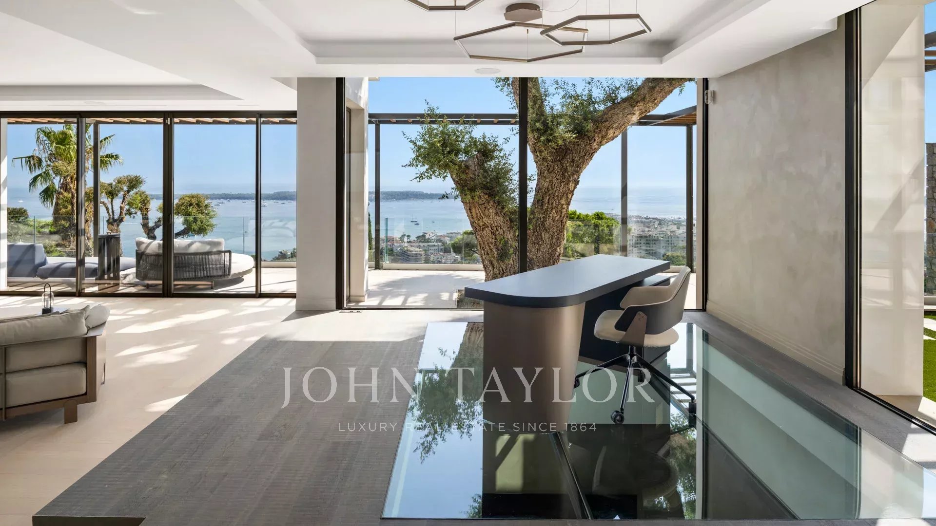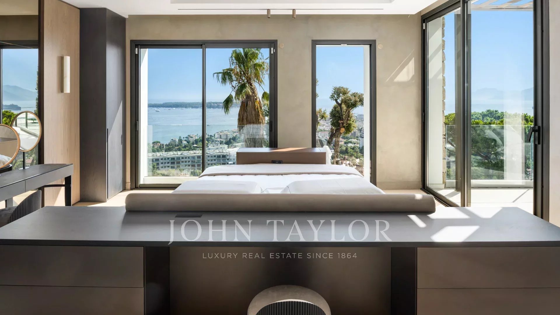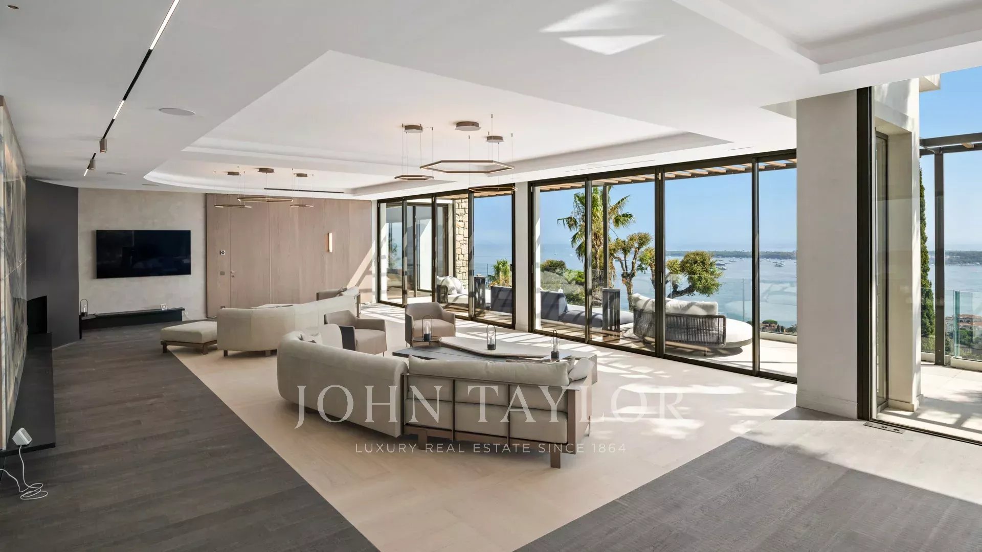 Жилая площадь виллы составляет 550 м², она оформлена в изысканном стиле, а из окон открываются захватывающие панорамы на Каннский залив и Леринские острова.