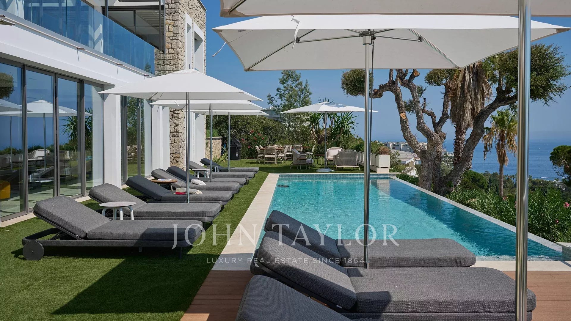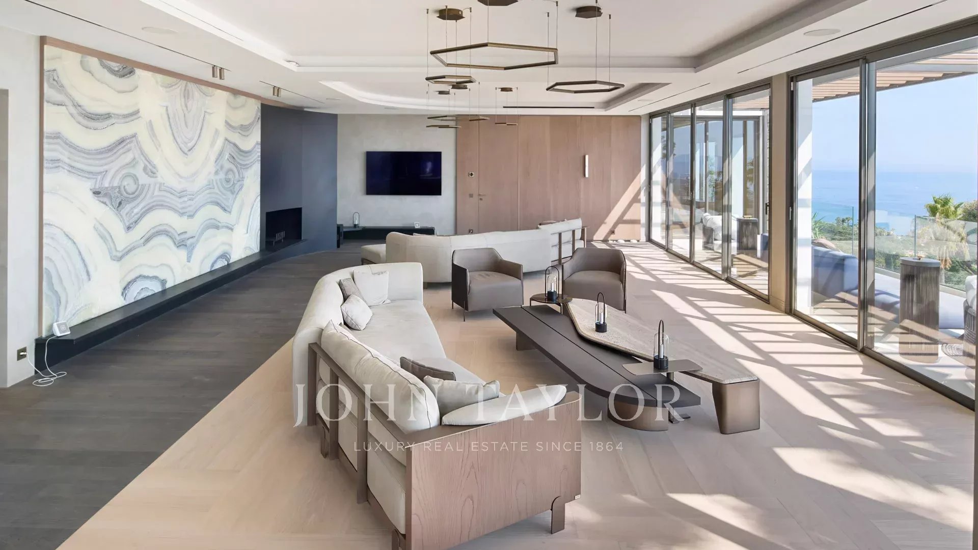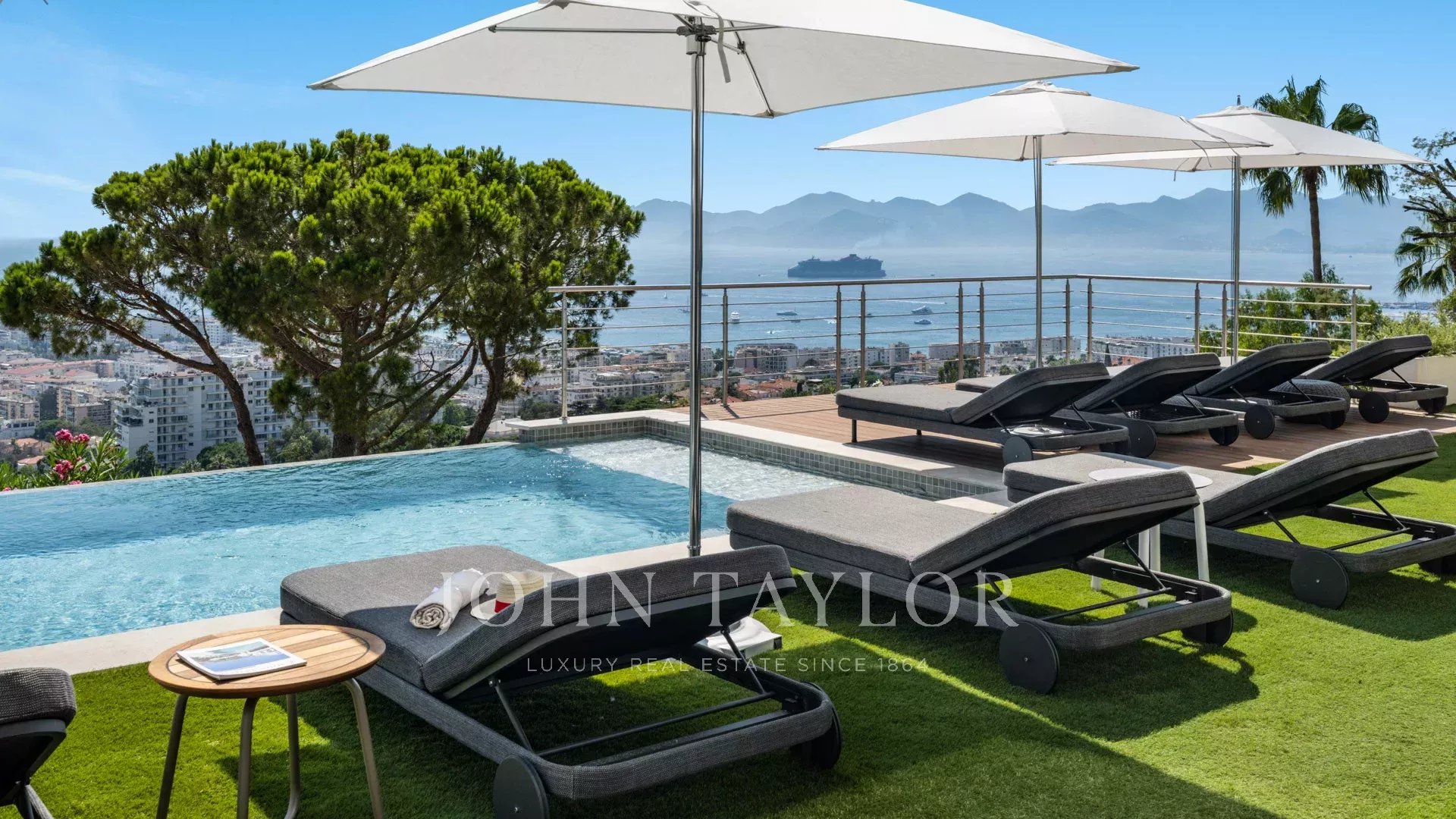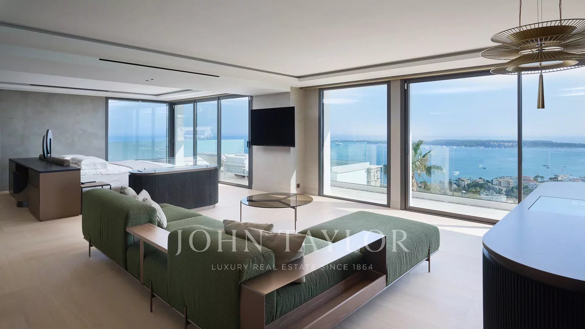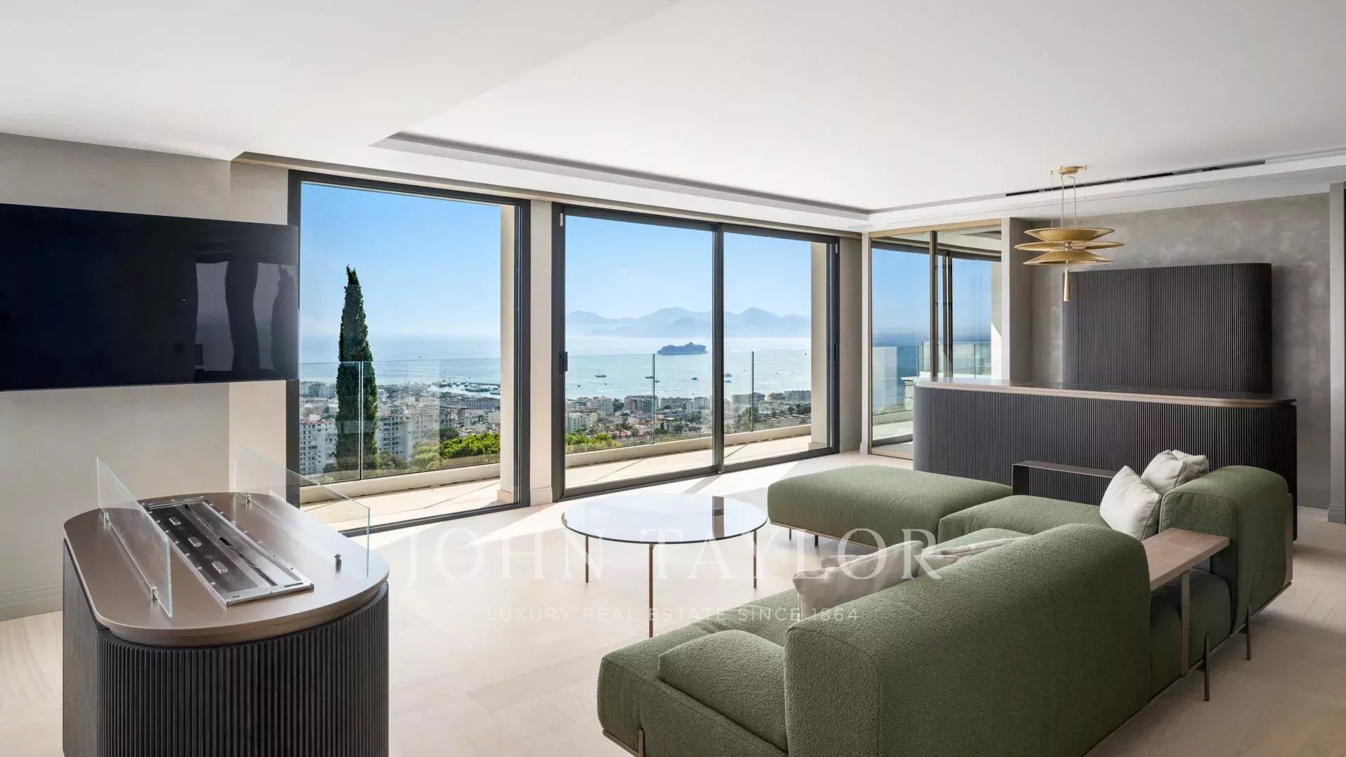 Жилая площадь виллы составляет 550 м², она оформлена в изысканном стиле, а из окон открываются захватывающие панорамы на Каннский залив и Леринские острова.
