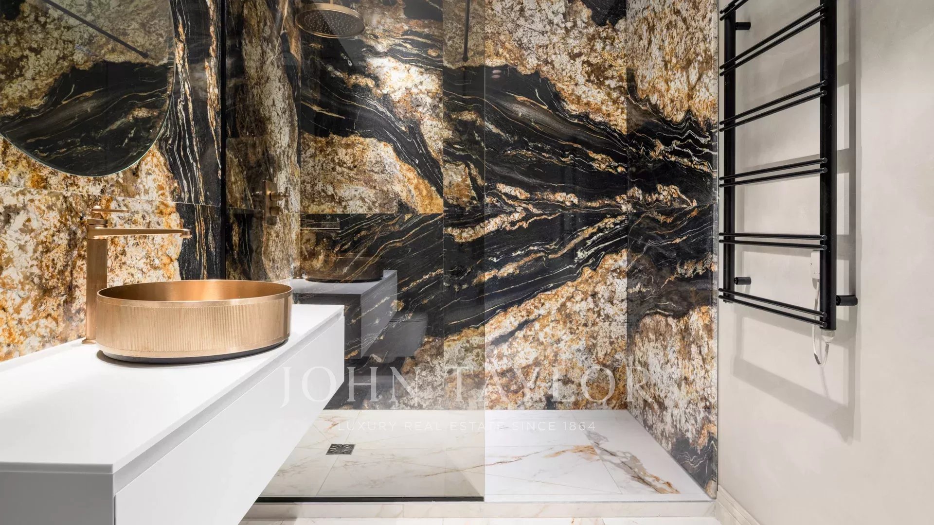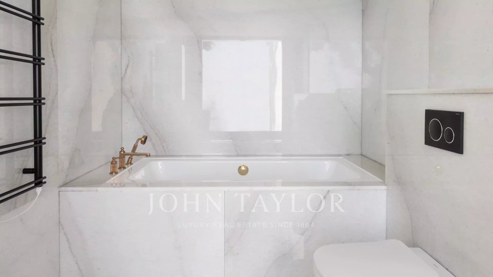 Главный сьют площадью около 85 м² (двуспальная кровать 200 см), состоящий из гостиной, бара, выходящего на террасу, гардеробной и душевой комнаты.