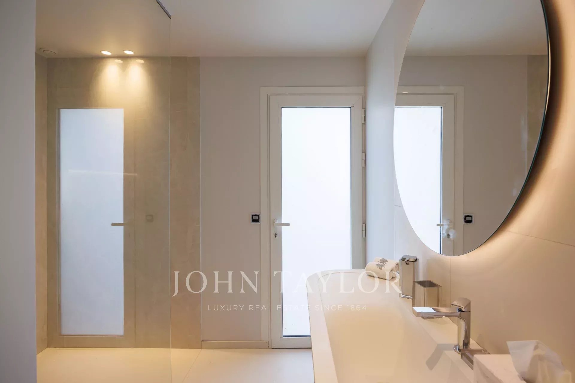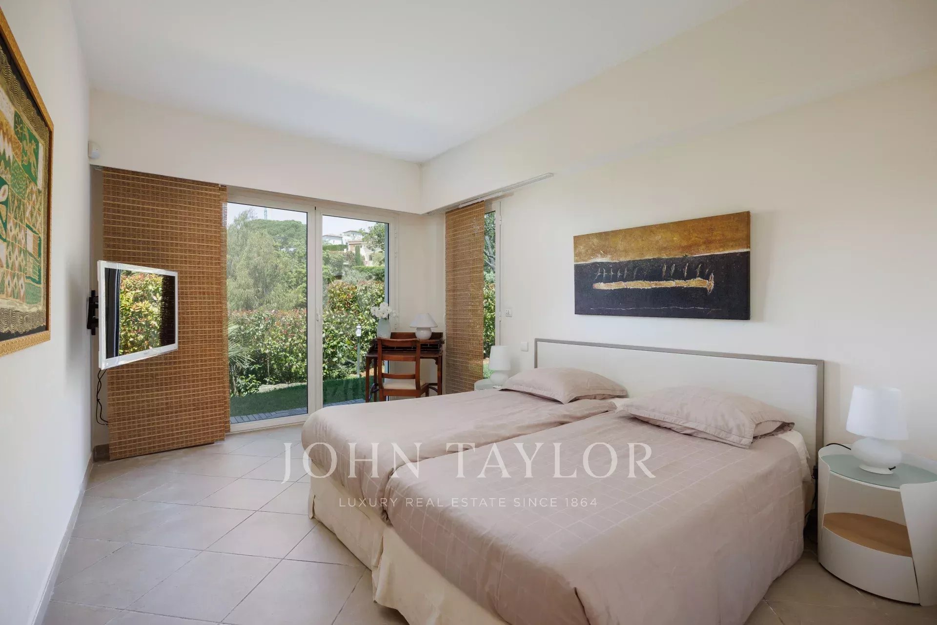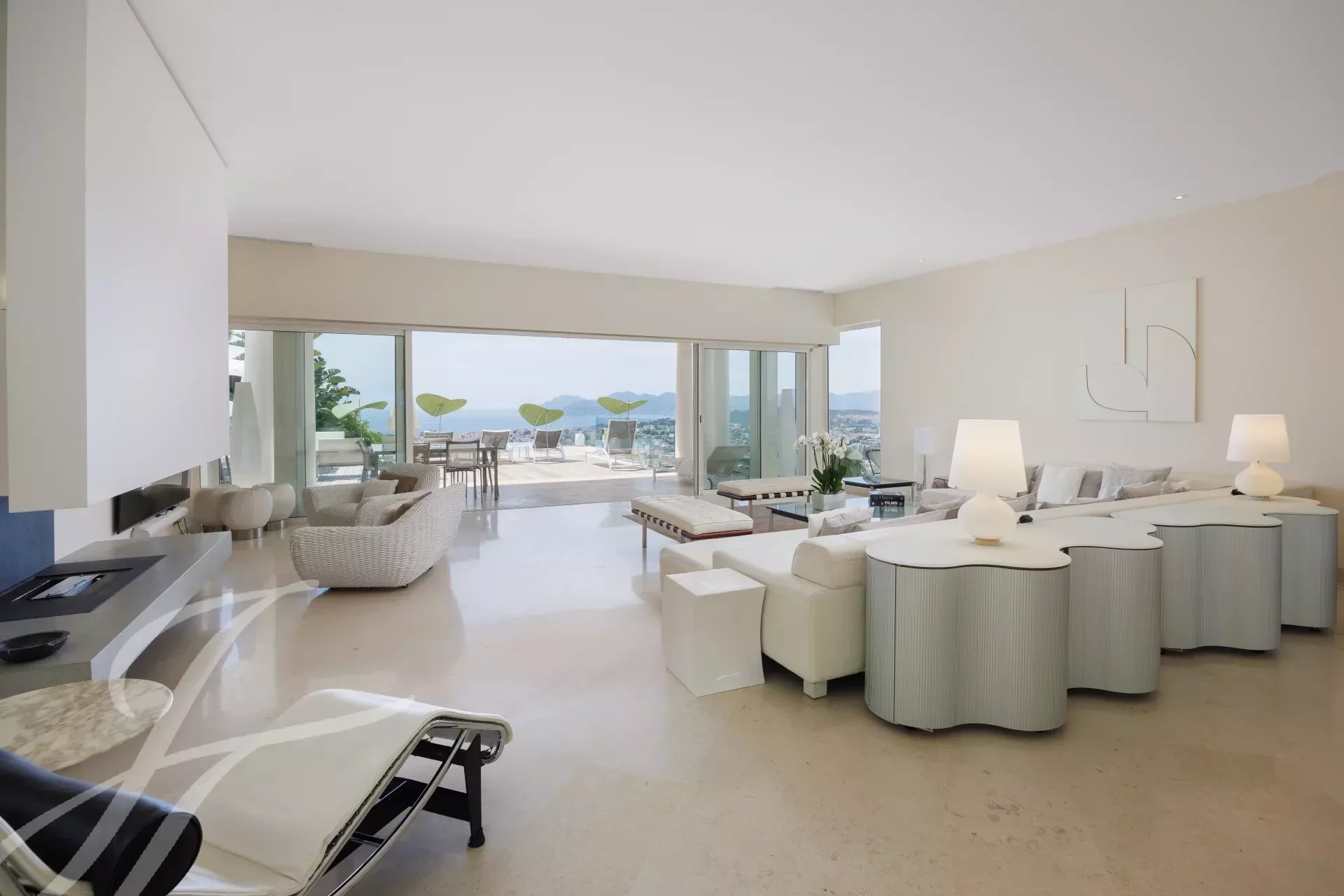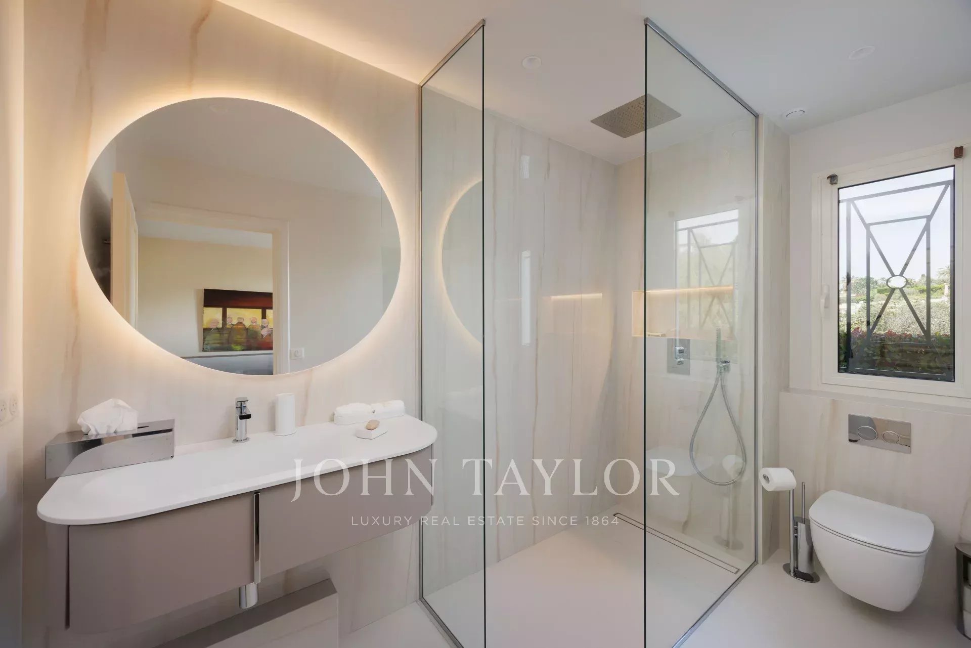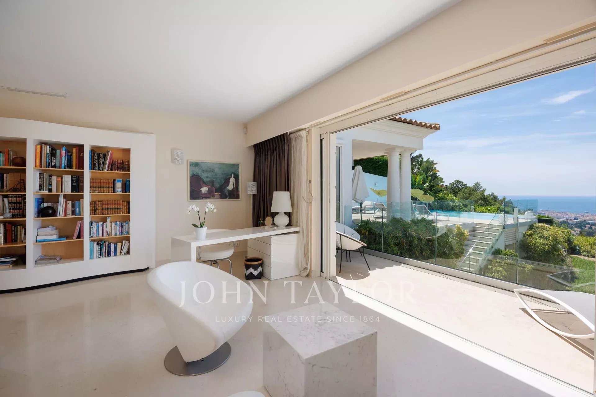 Расположенный на высотах Канн в частном домене, эта великолепная новая современная вилла, полностью оборудованная кондиционером, имеет прекрасный вид на море, на залив Канн и на горы Эстерель.