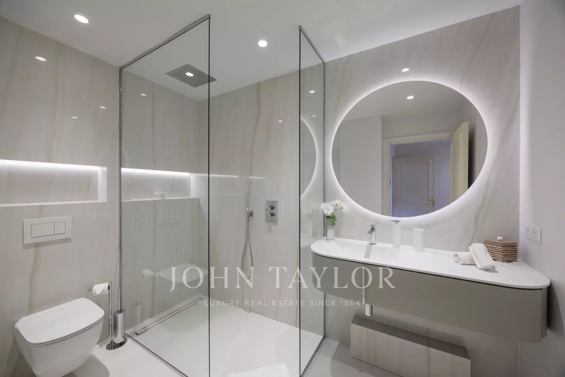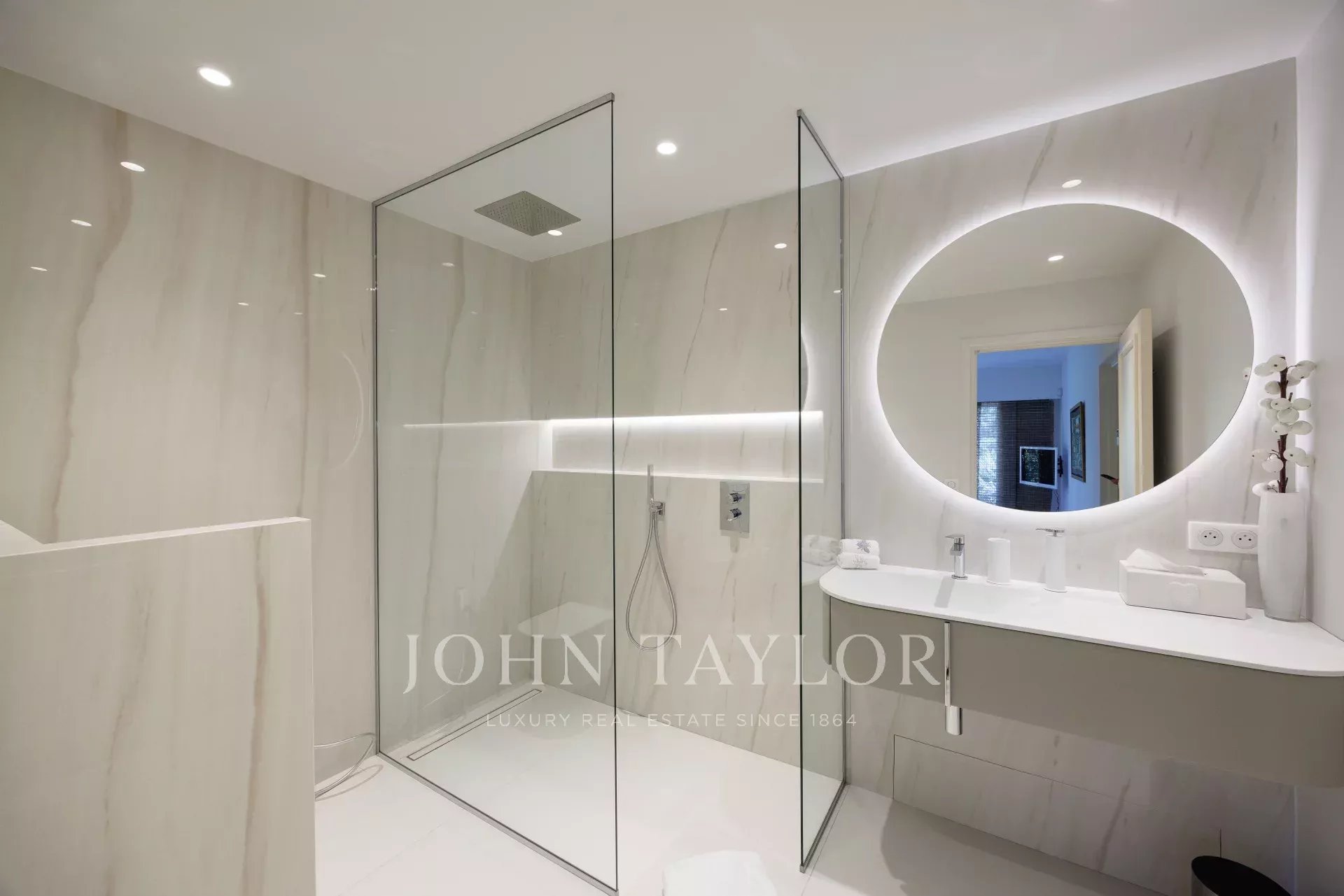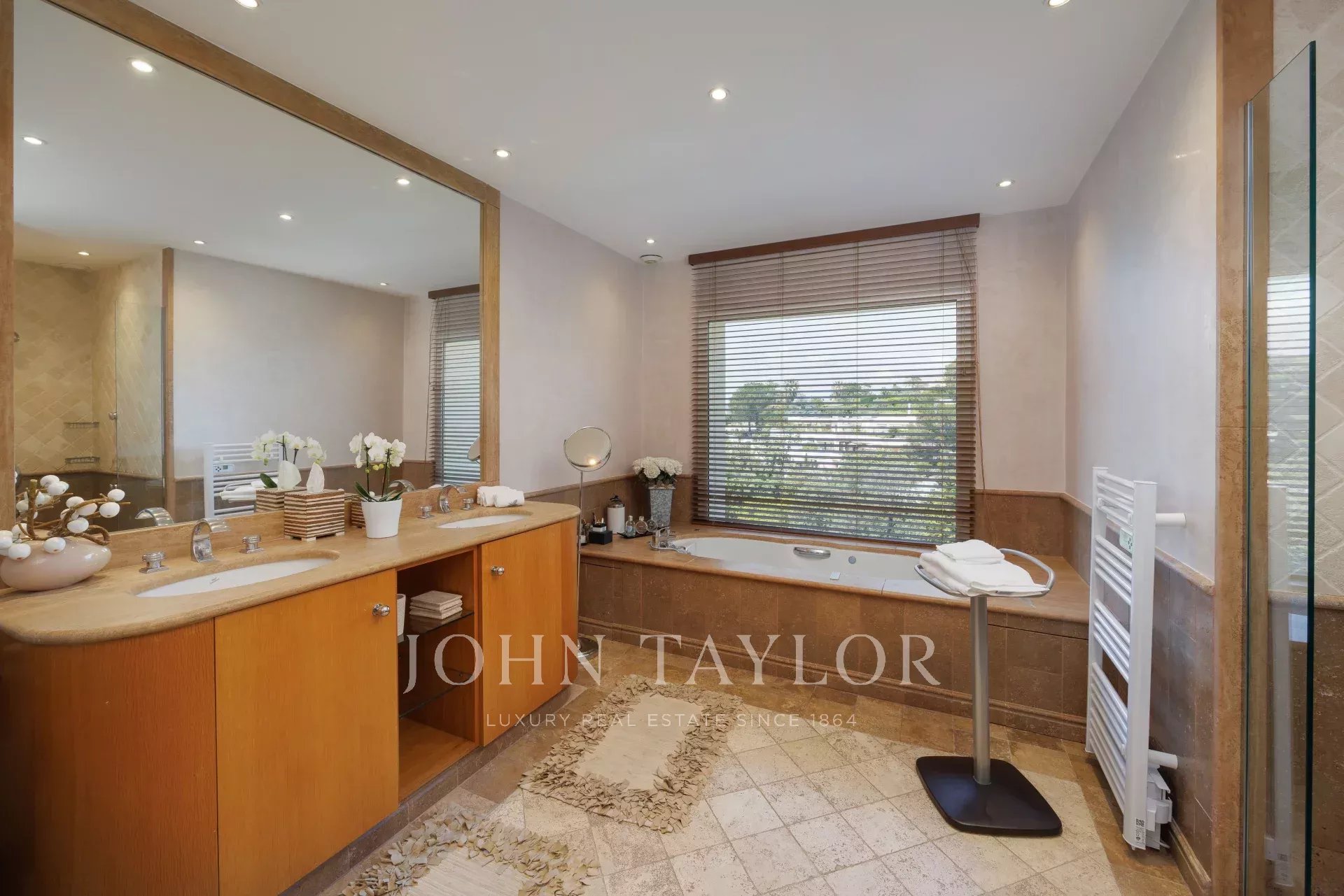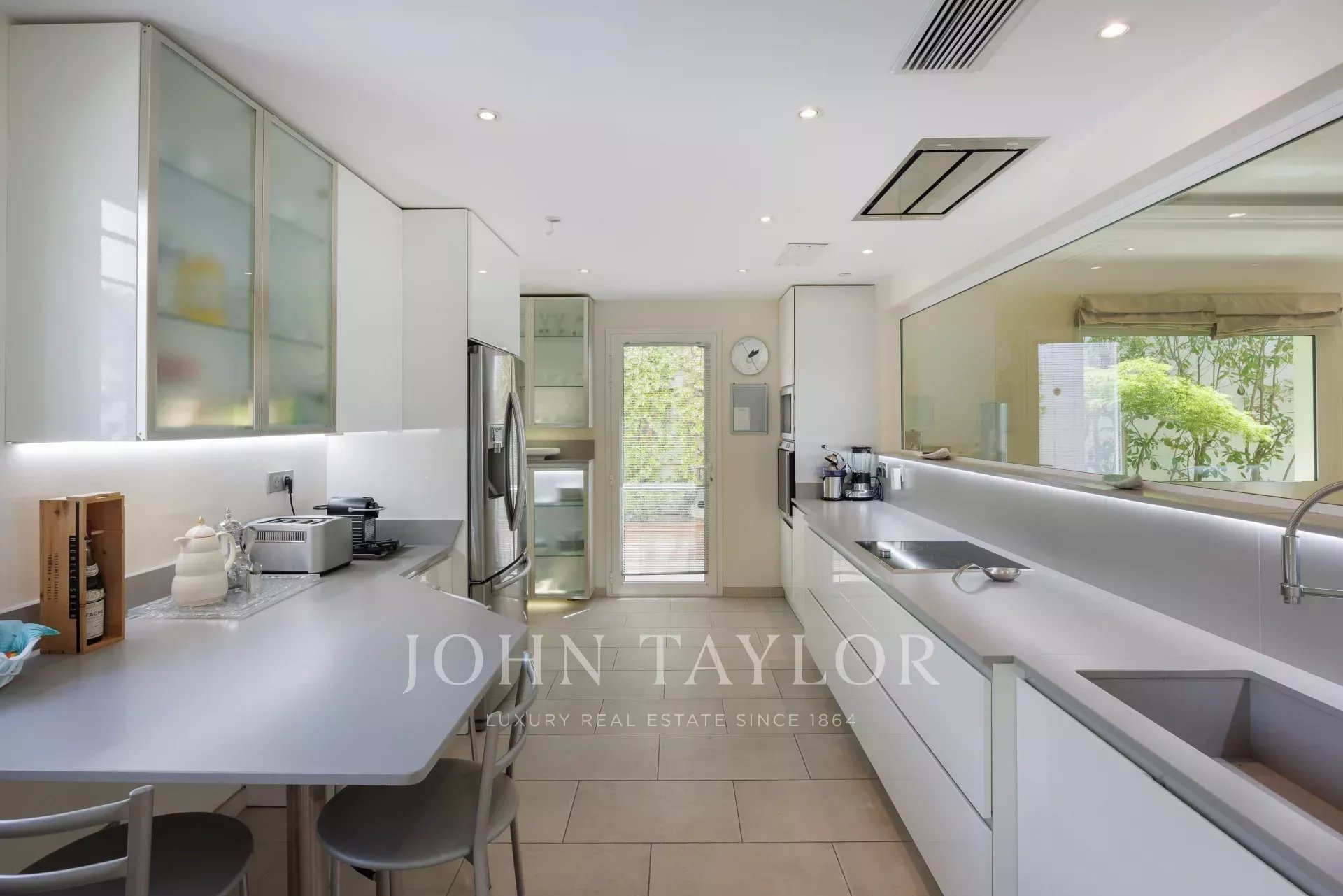 Расположенный на высотах Канн в частном домене, эта великолепная новая современная вилла, полностью оборудованная кондиционером, имеет прекрасный вид на море, на залив Канн и на горы Эстерель.