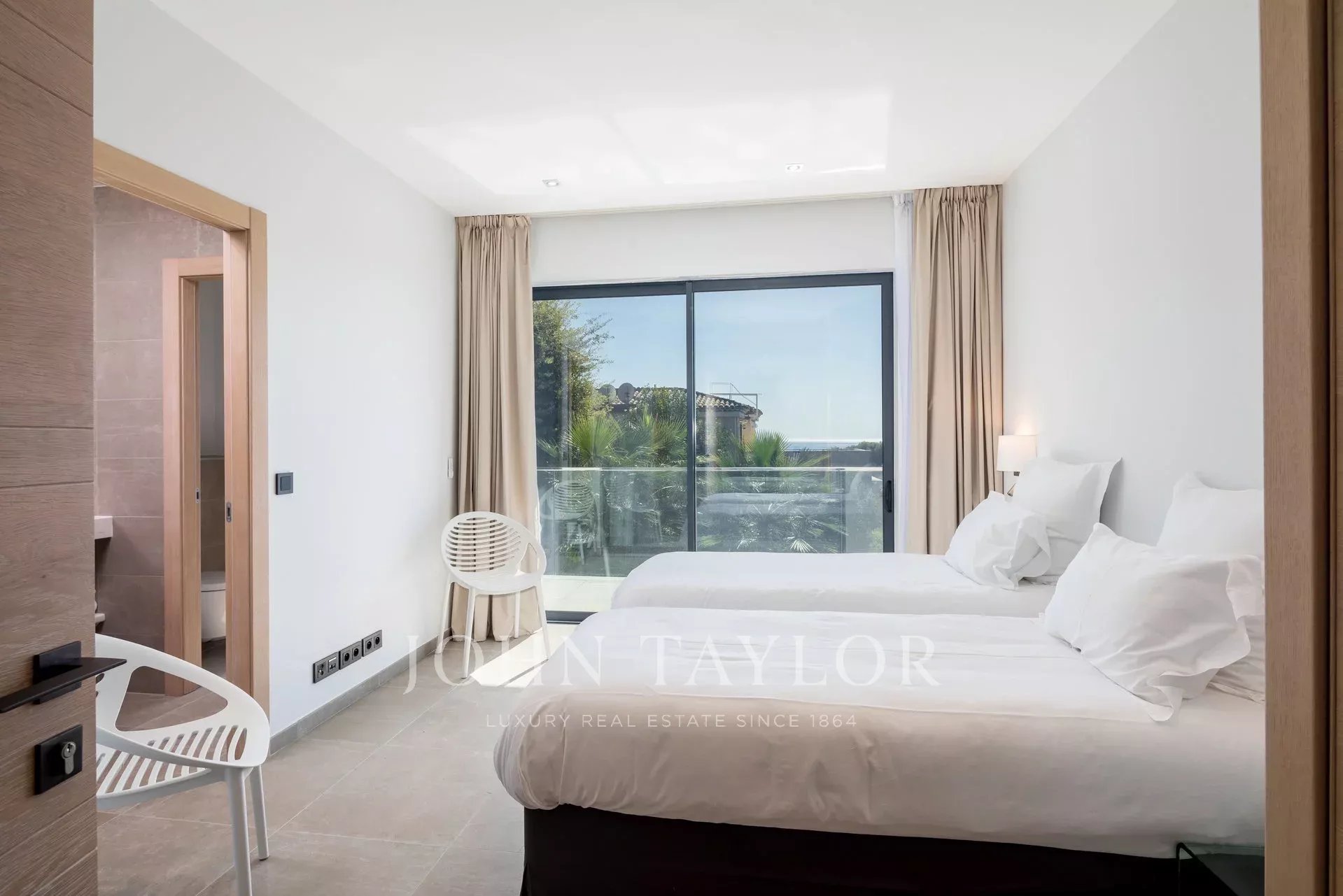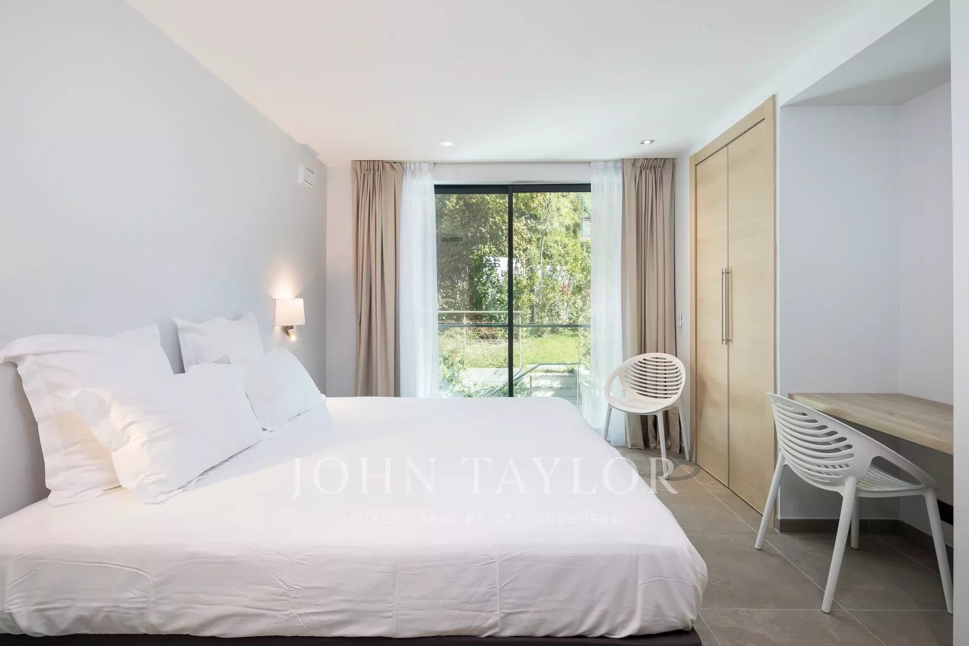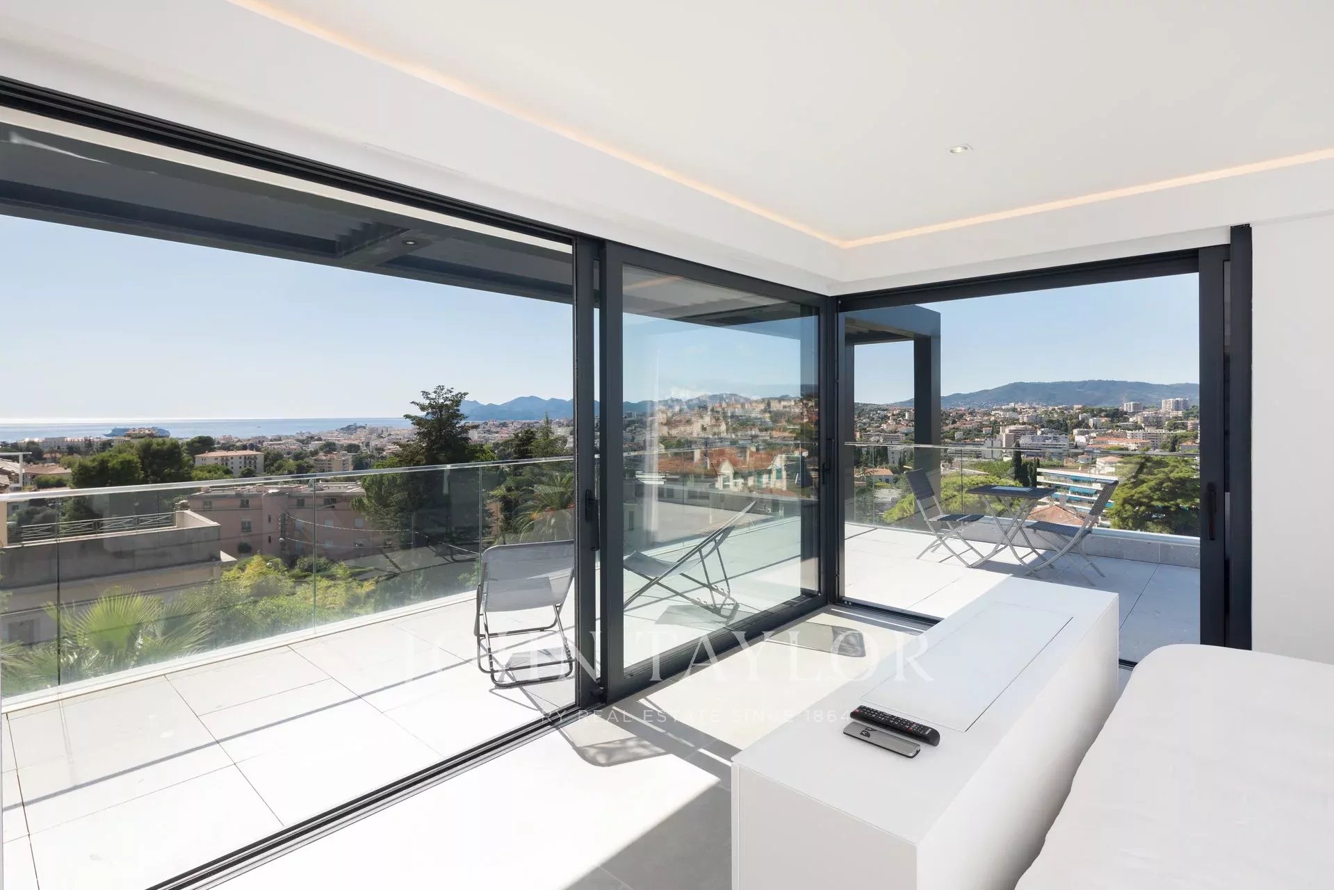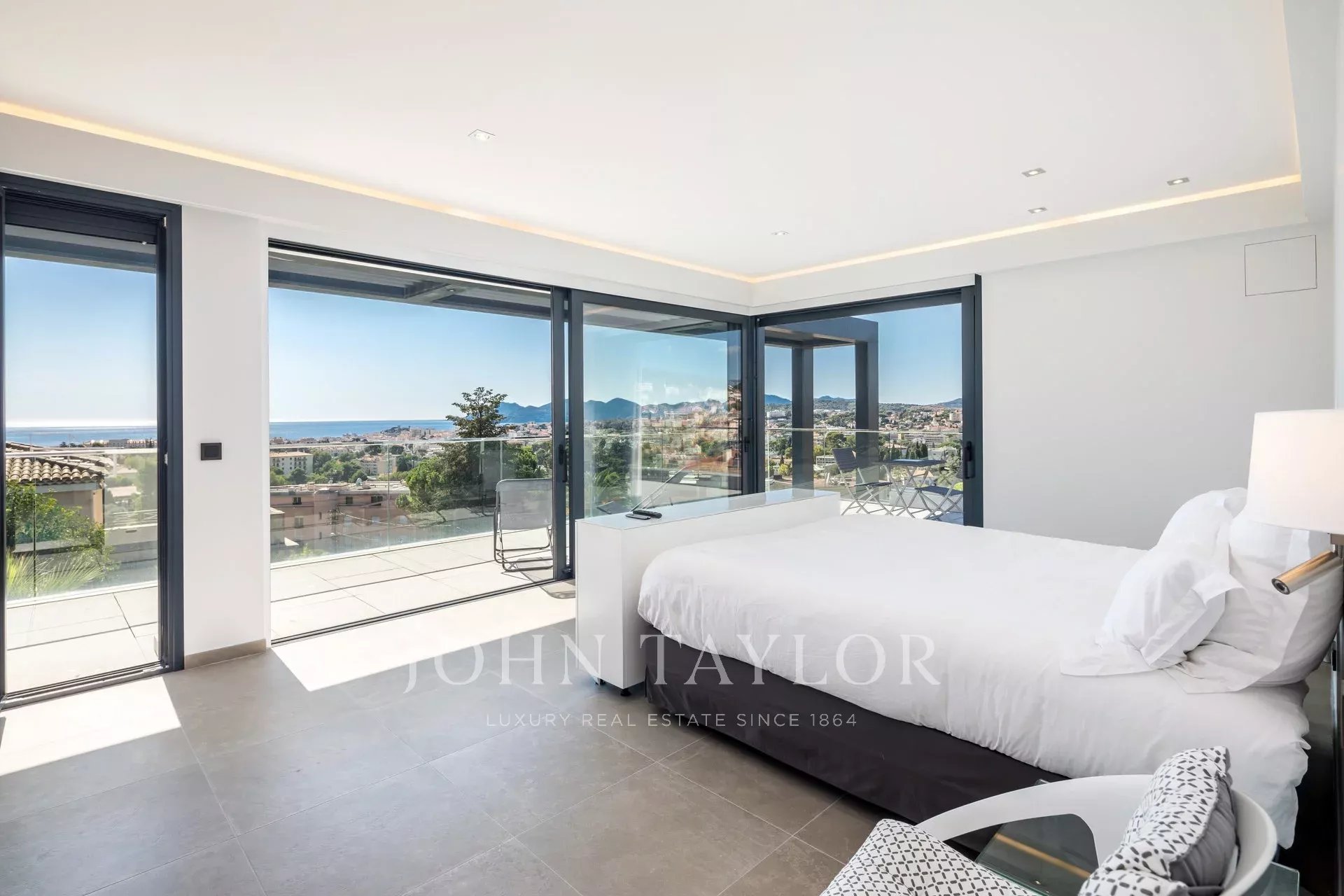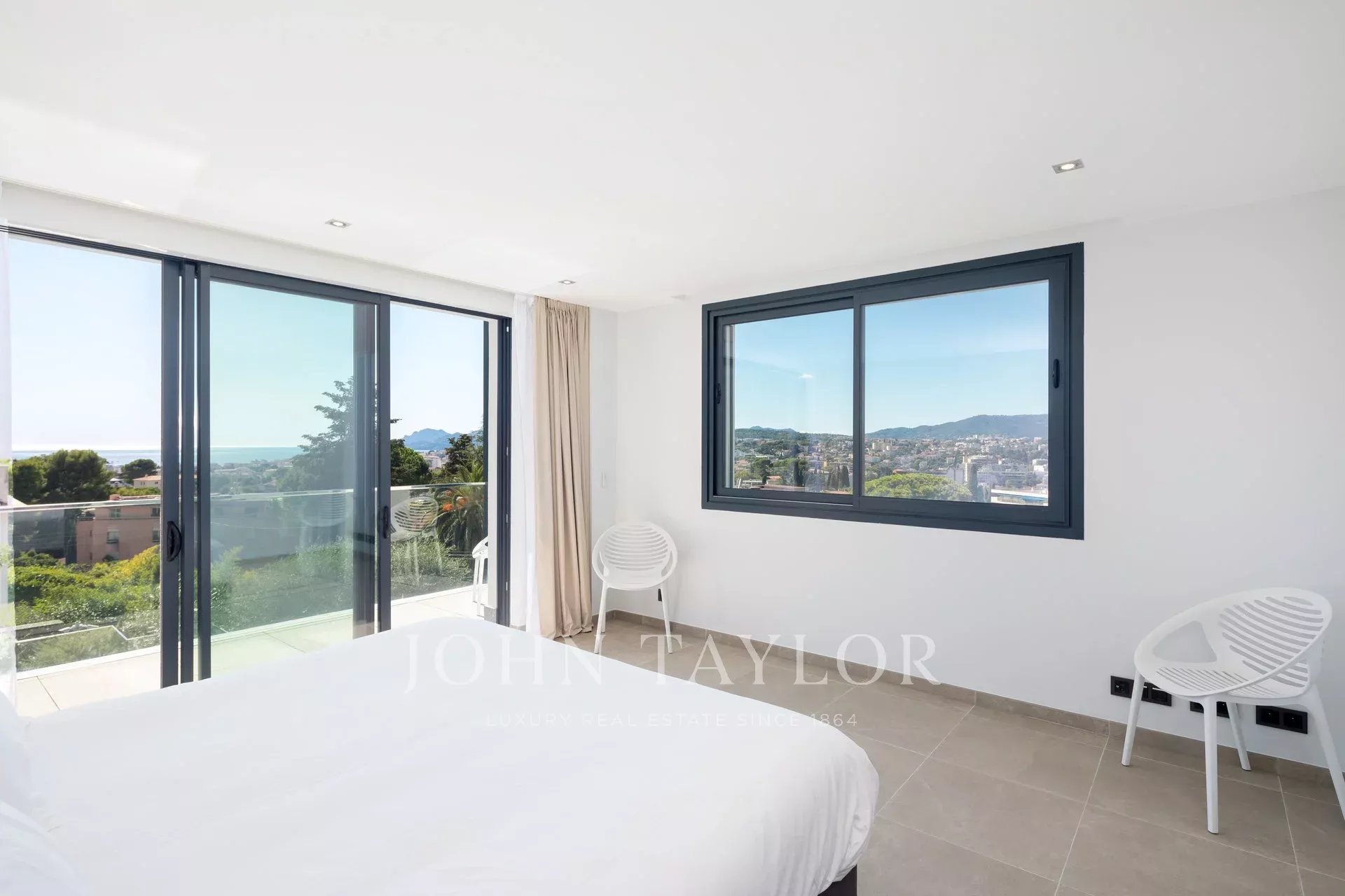 Спальня (кровать king size) с выходом на террасу, вид на Каннский залив и Эстерель - гардеробная - ванная комната, душ/туалет - мини-кухня - библиотека