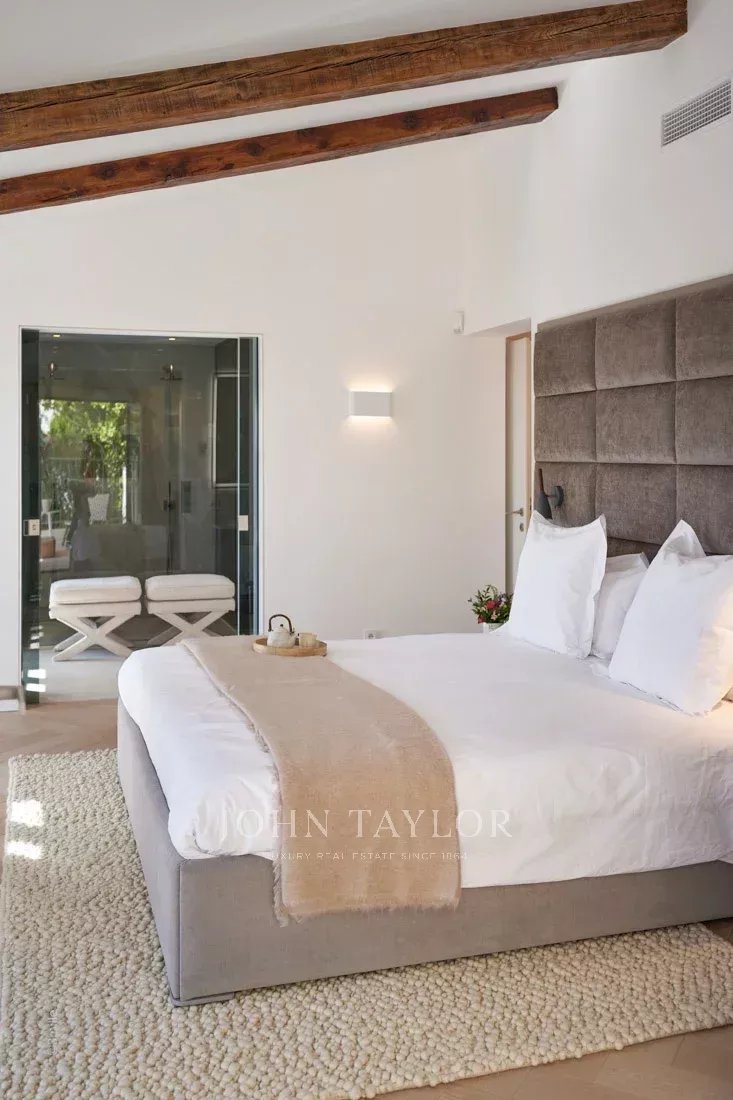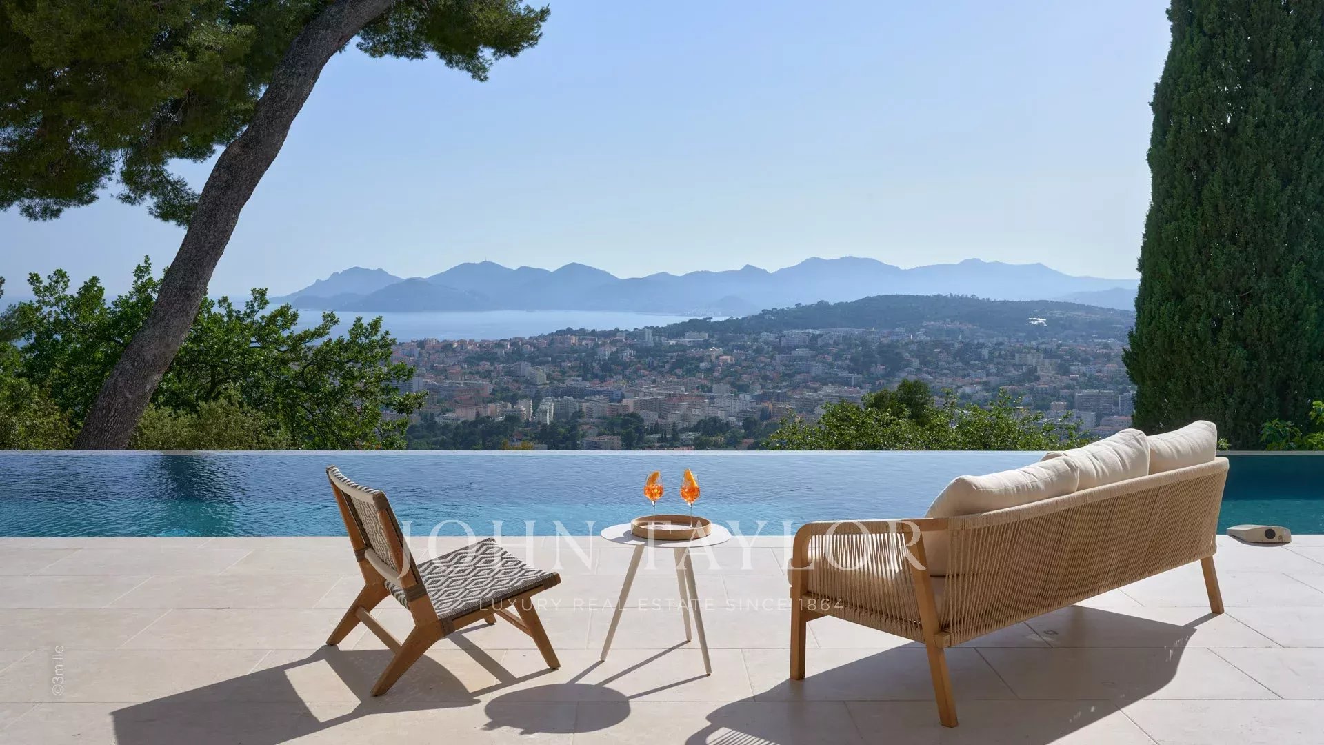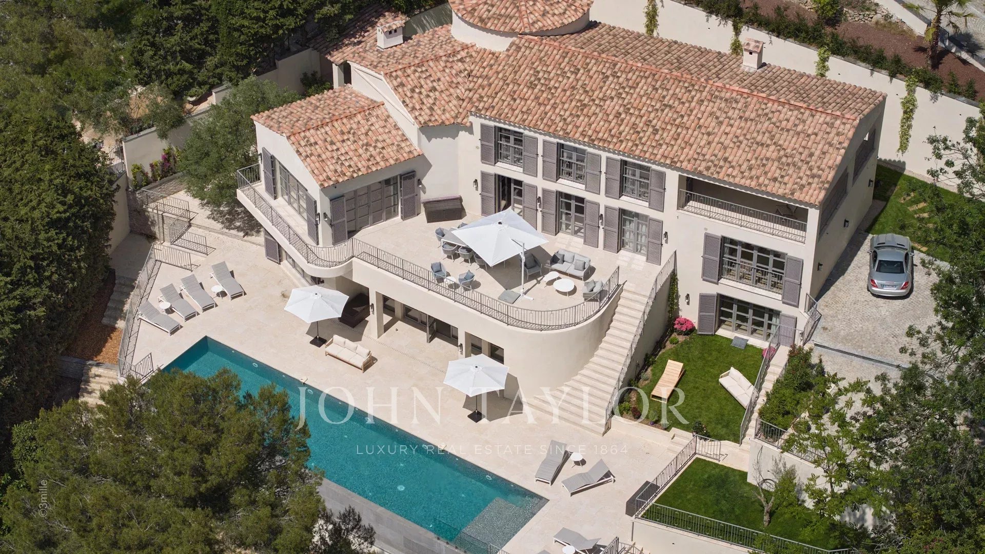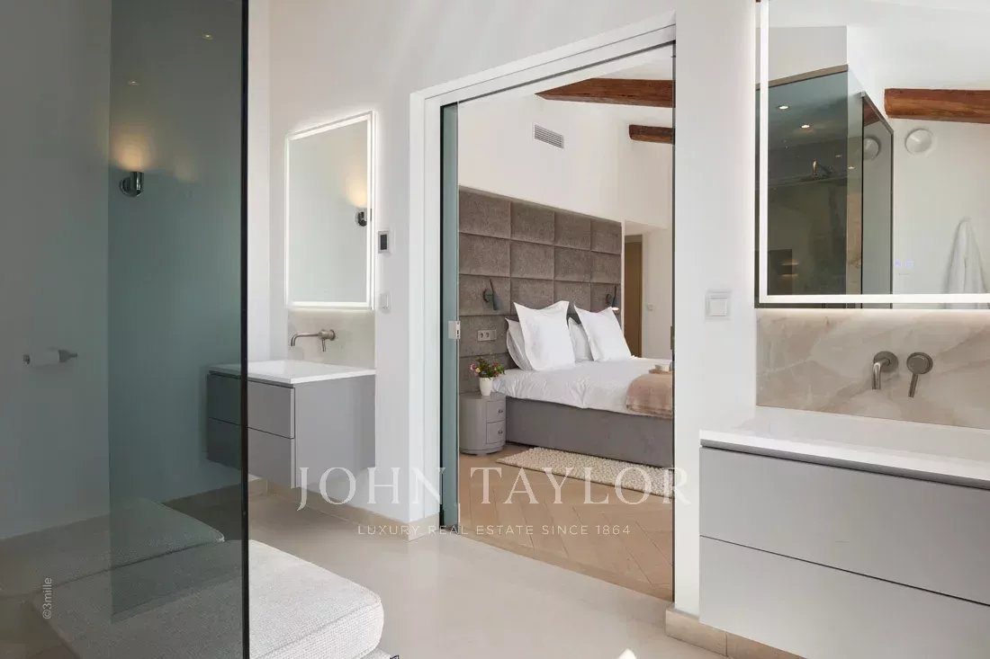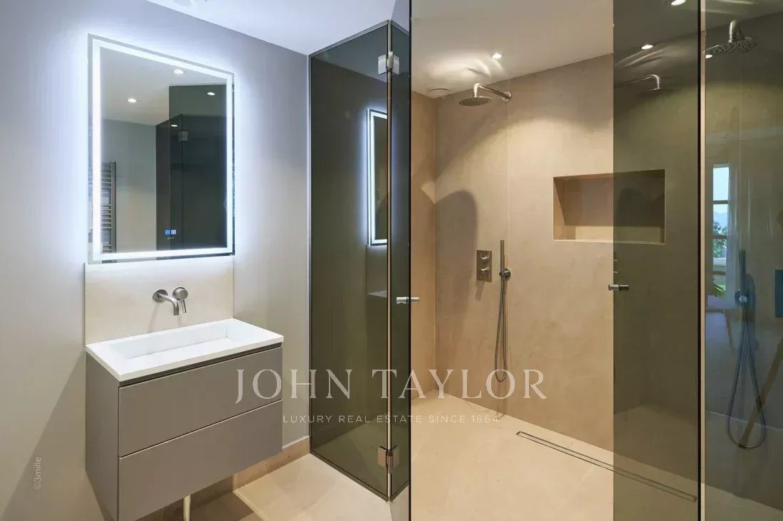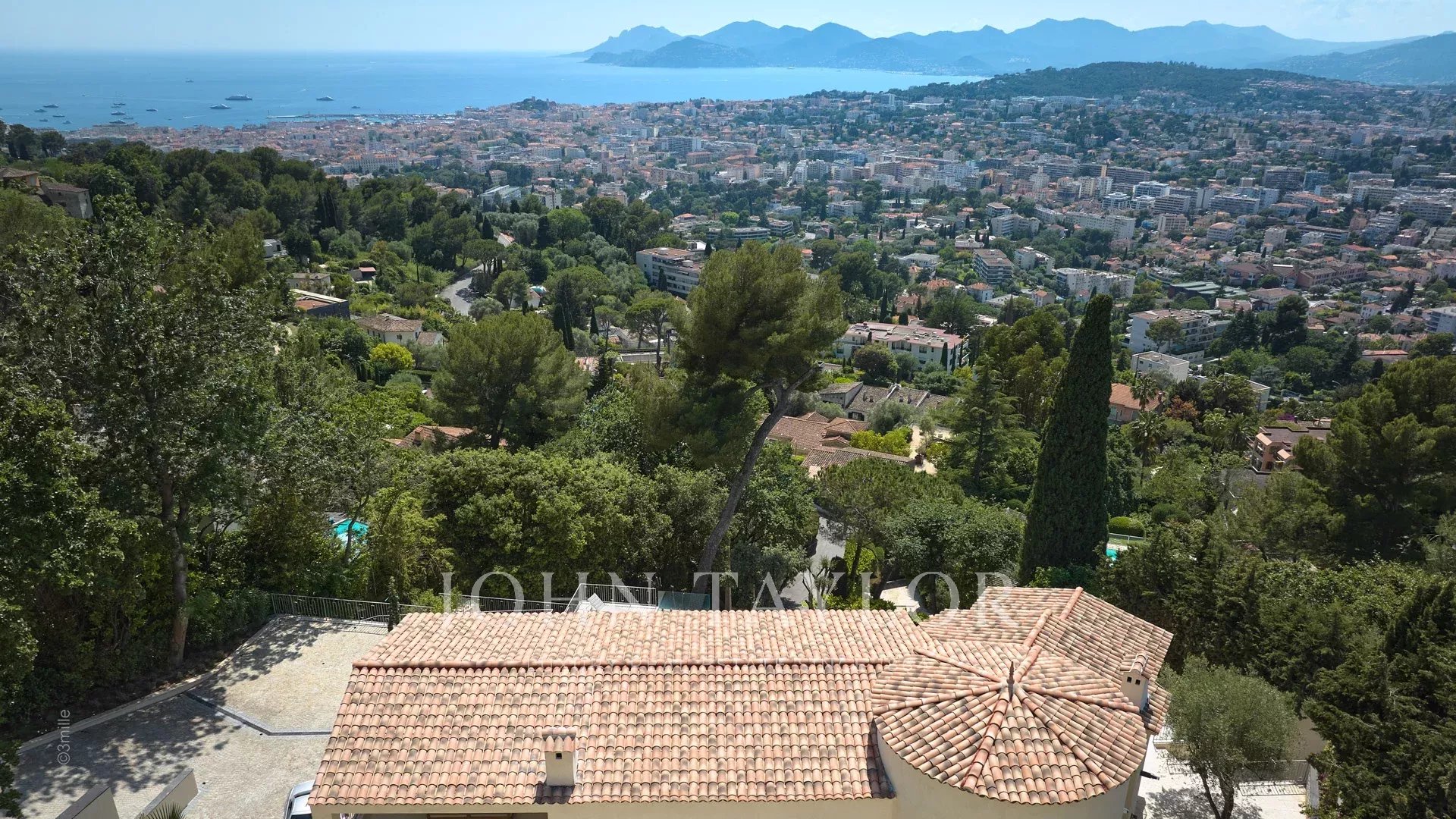 Эта красивая вилла, полностью отремонтированная по самым высоким стандартам, расположена на холмах над Каннами, занимает площадь около 340 м² и находится в ландшафтном саду площадью около 2 300 м² с бассейном. Из просторных гостиных открывается панорамный вид на Каннский залив, горы Эстерель и море.