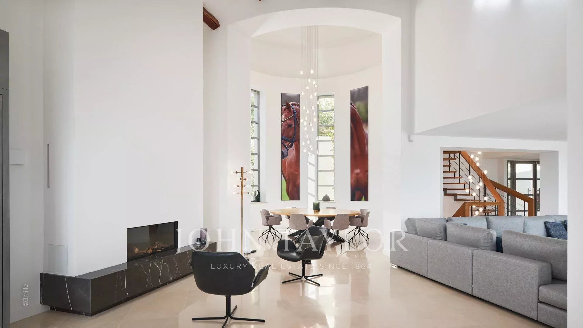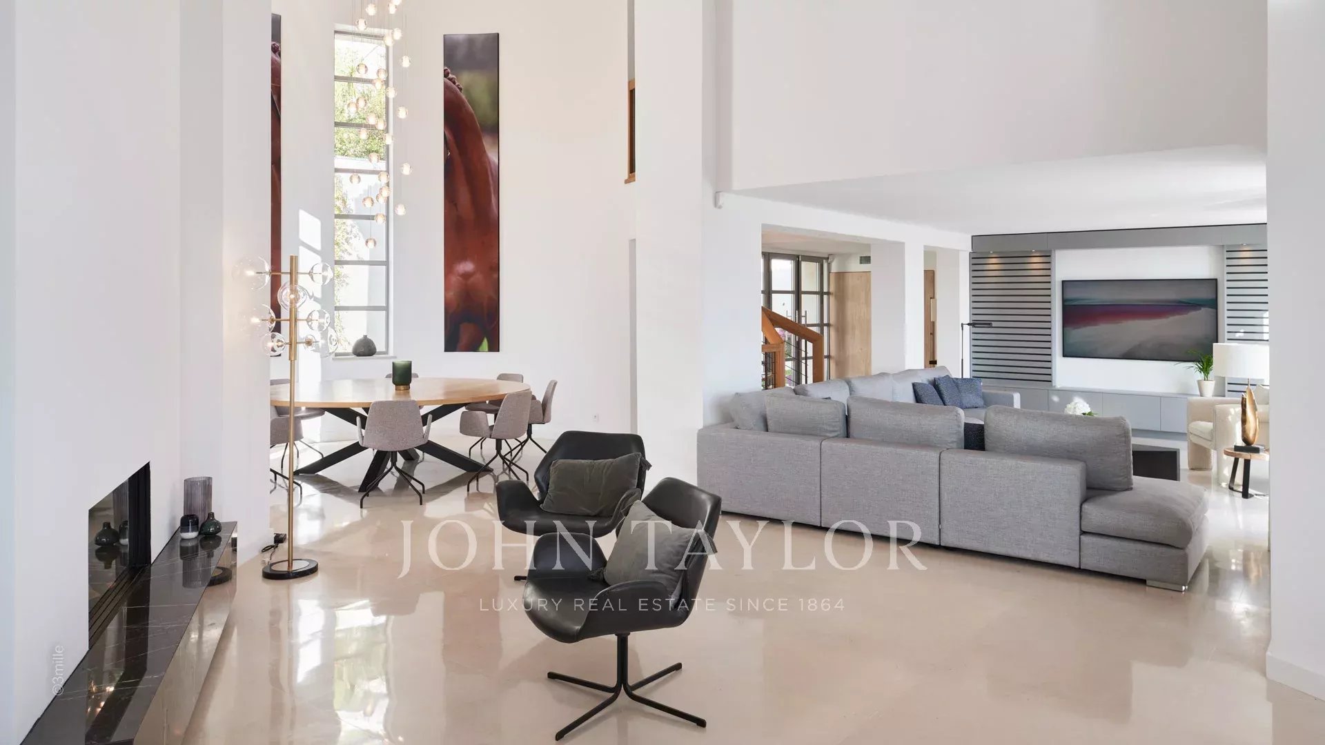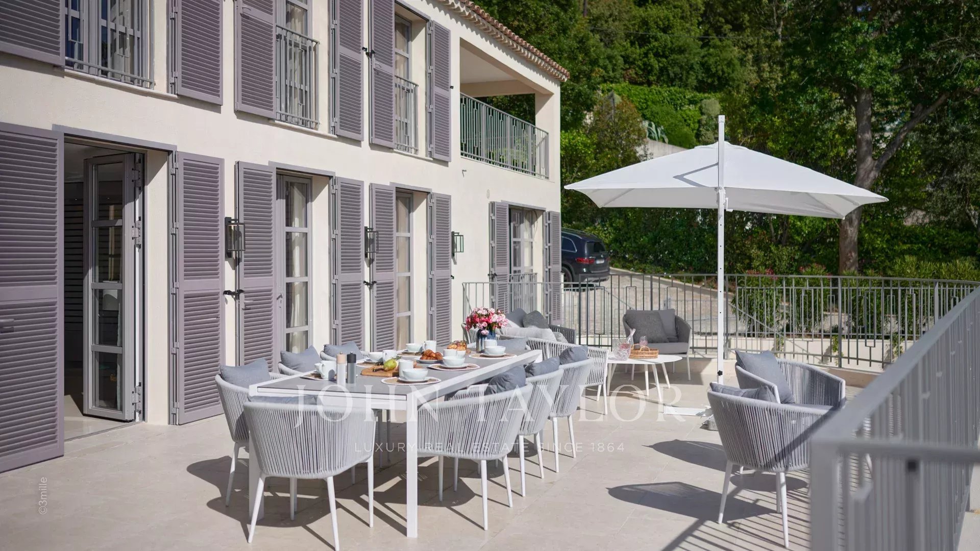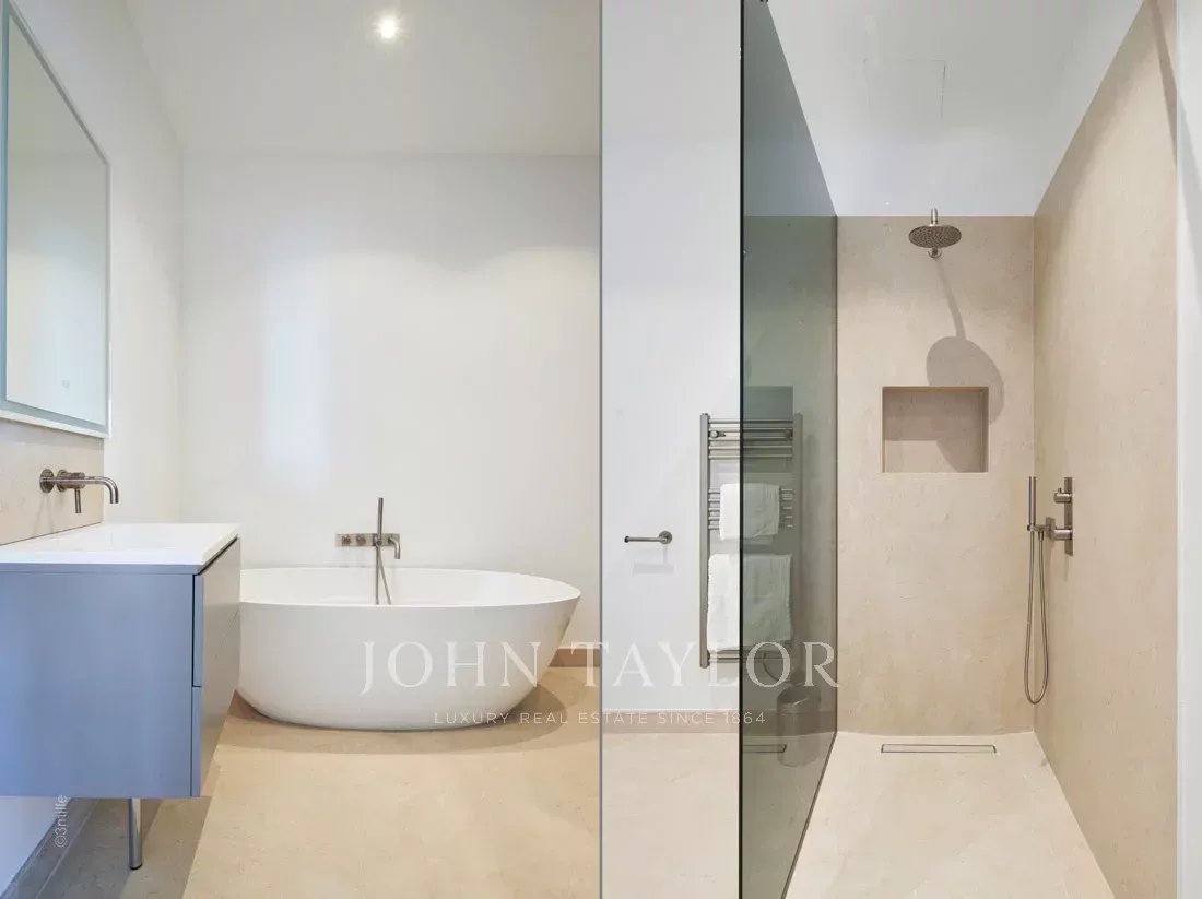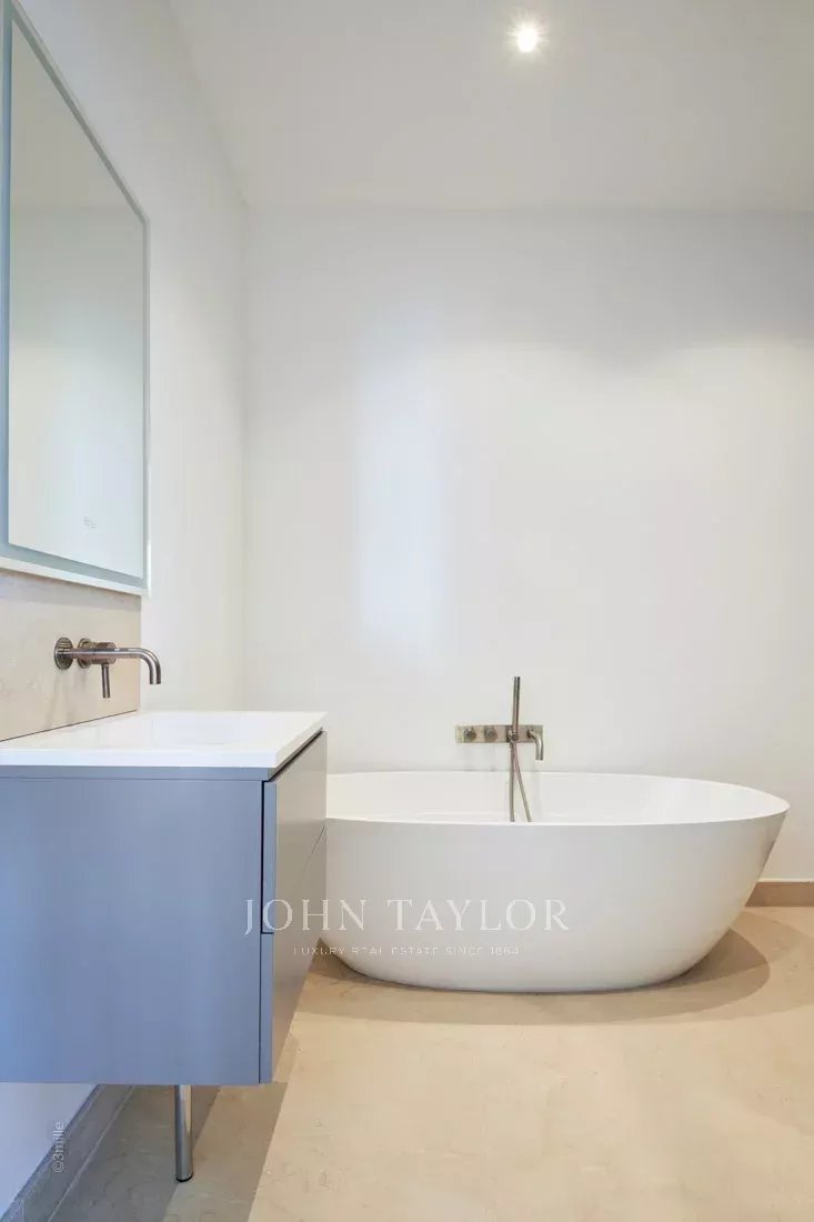 Эта красивая вилла, полностью отремонтированная по самым высоким стандартам, расположена на холмах над Каннами, занимает площадь около 340 м² и находится в ландшафтном саду площадью около 2 300 м² с бассейном. Из просторных гостиных открывается панорамный вид на Каннский залив, горы Эстерель и море.